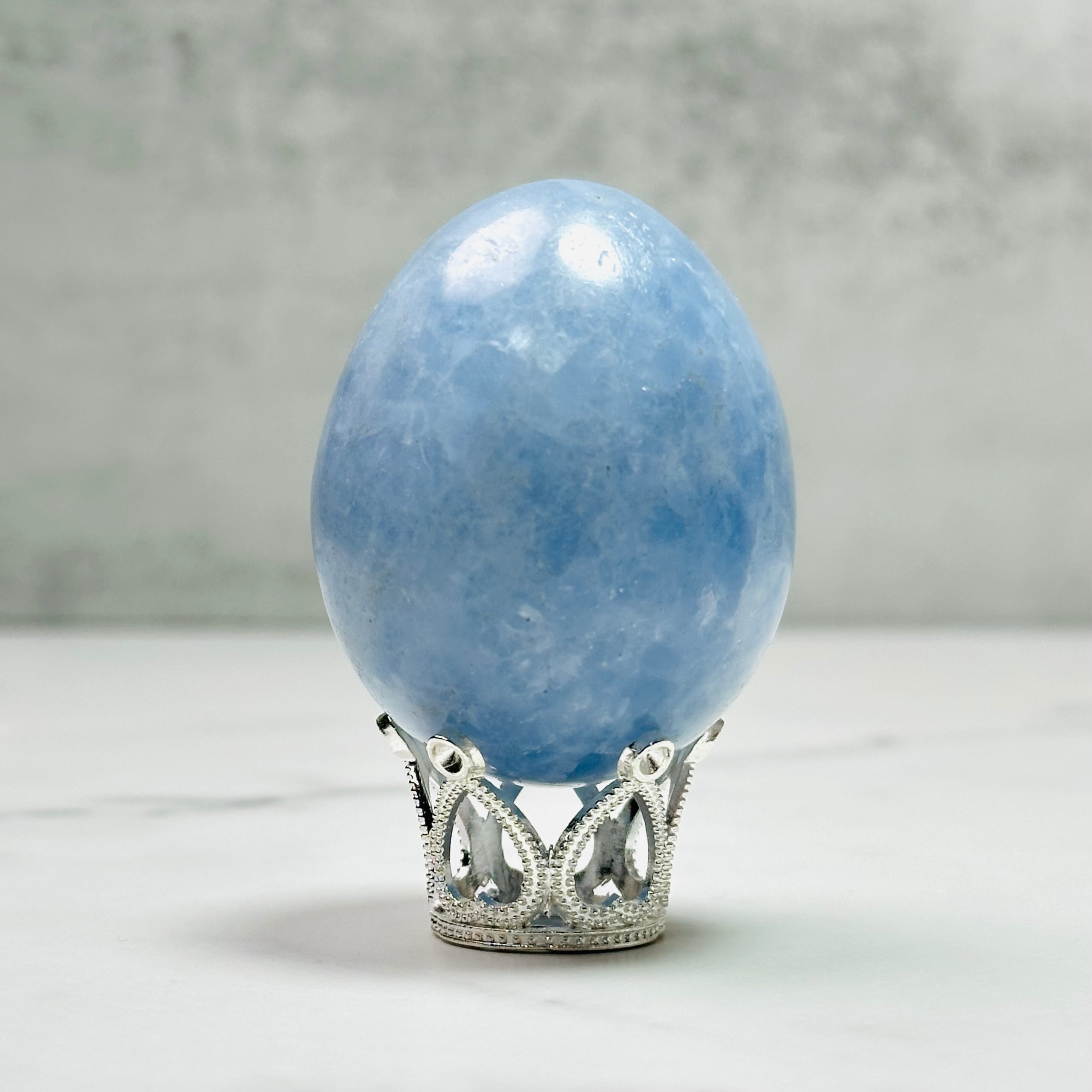 淡い空色が美しいセレスタイトエッグ。爽やかな水色の石で、手に取ると優しい雰囲気に包まれるような癒しを感じます。丸みのある卵型は女性らしい柔らかさを感じられます。リビングや書斎、寝室にそっと置けば清らかで穏やかな空間を演出してくれます。