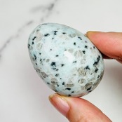 ミントグリーンとグレーの模様が美しいキウイジャスパーのエッグ。心を落ち着かせてくれるような優しい存在感があります。可愛らしさと個性を併せ持つ不思議な魅力のある石で、書斎やリビングに置くだけでおしゃれなアクセントになります。
