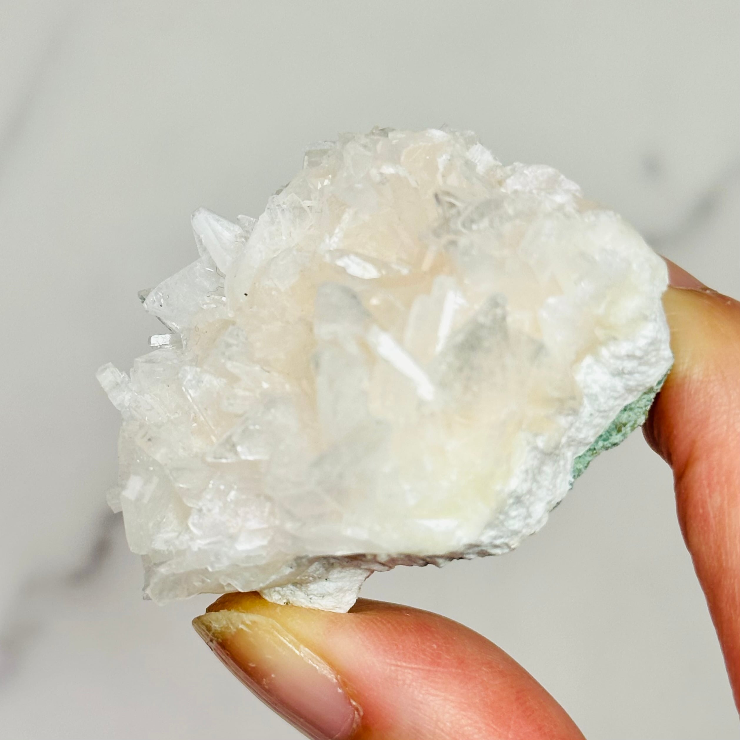 繊細な結晶が幾重にも重なり、花のように広がるアメリカアイダホ州産のヒューランダイトの原石。淡いホワイトやピンクベージュの色合いがやさしく、光を受けるとしっとりとした輝きを放ちます。自然が長い年月をかけて生み出した造形美は、まさに小さなアートピース。お部屋に飾ると空間を穏やかで清らかな印象にしてくれる、癒しの天然石です。