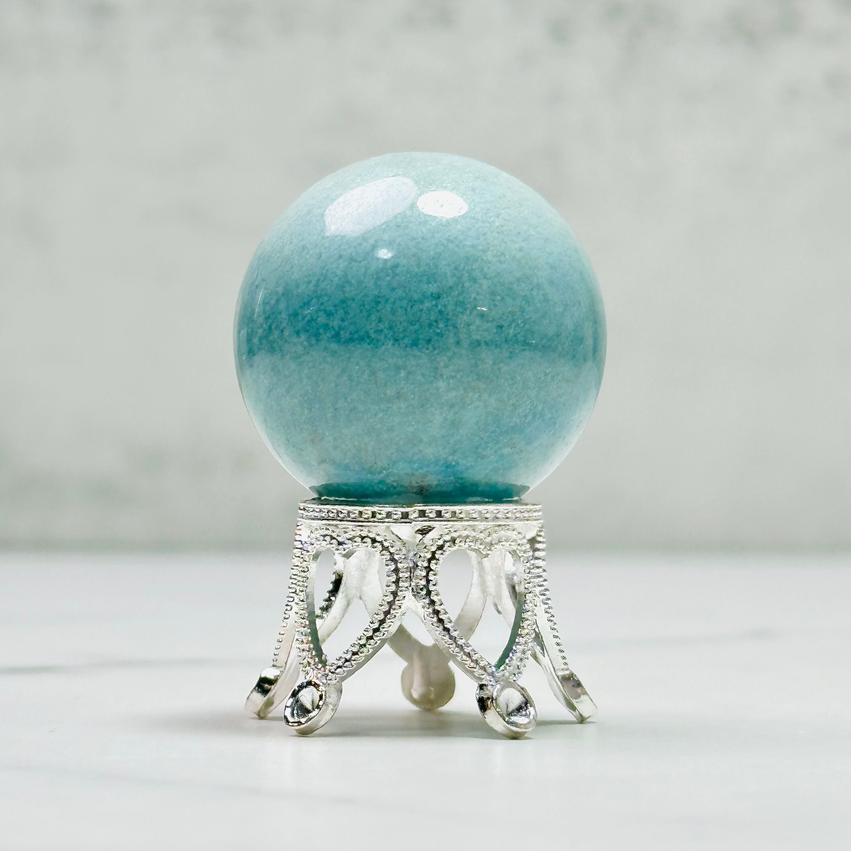 柔らかな水色とグレーが混ざり合ったトロレアイトスフィア。抽象的な印象のあるトロレアイトはまるで絵本の中の世界のように優しくどこか懐かしい気持ちにさせてくれます。不思議と見る人の心を落ち着かせてくれる美しいスフィアです。