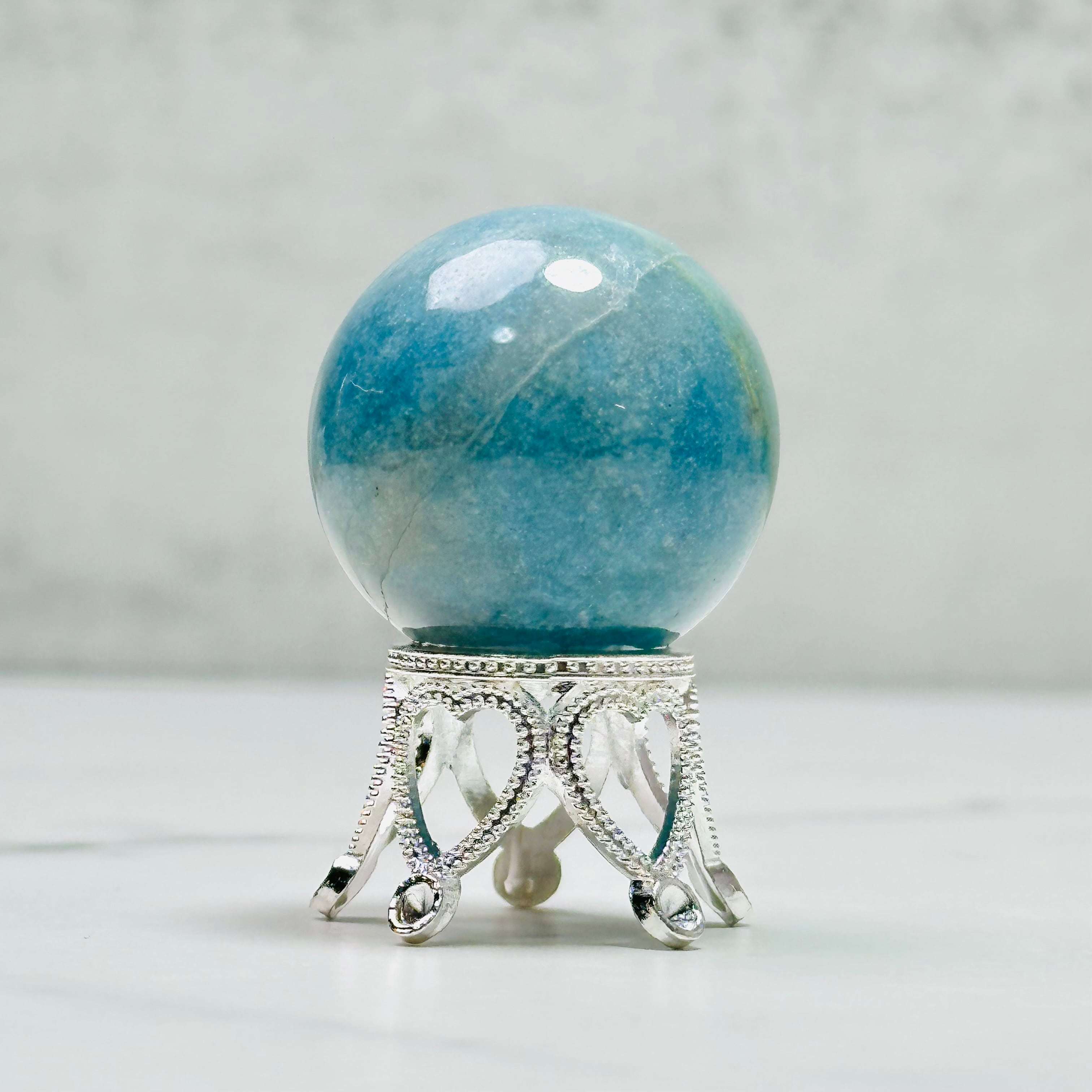 柔らかな水色とグレーが混ざり合ったトロレアイトスフィア。抽象的な印象のあるトロレアイトはまるで絵本の中の世界のように優しくどこか懐かしい気持ちにさせてくれます。不思議と見る人の心を落ち着かせてくれる美しいスフィアです。