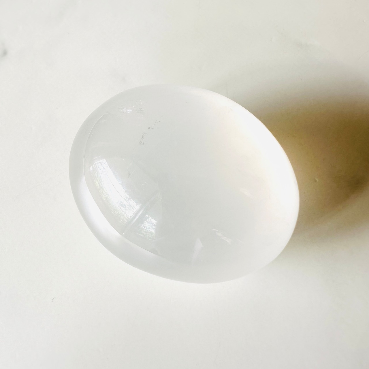マダガスカル産ジラソルのパームストーンです。透明感のある乳白色の優しいパームストーンで、ぷるんとした質感と丸みを帯びたフォルム、ミルキーな色合いが優しい印象のアイテムです。