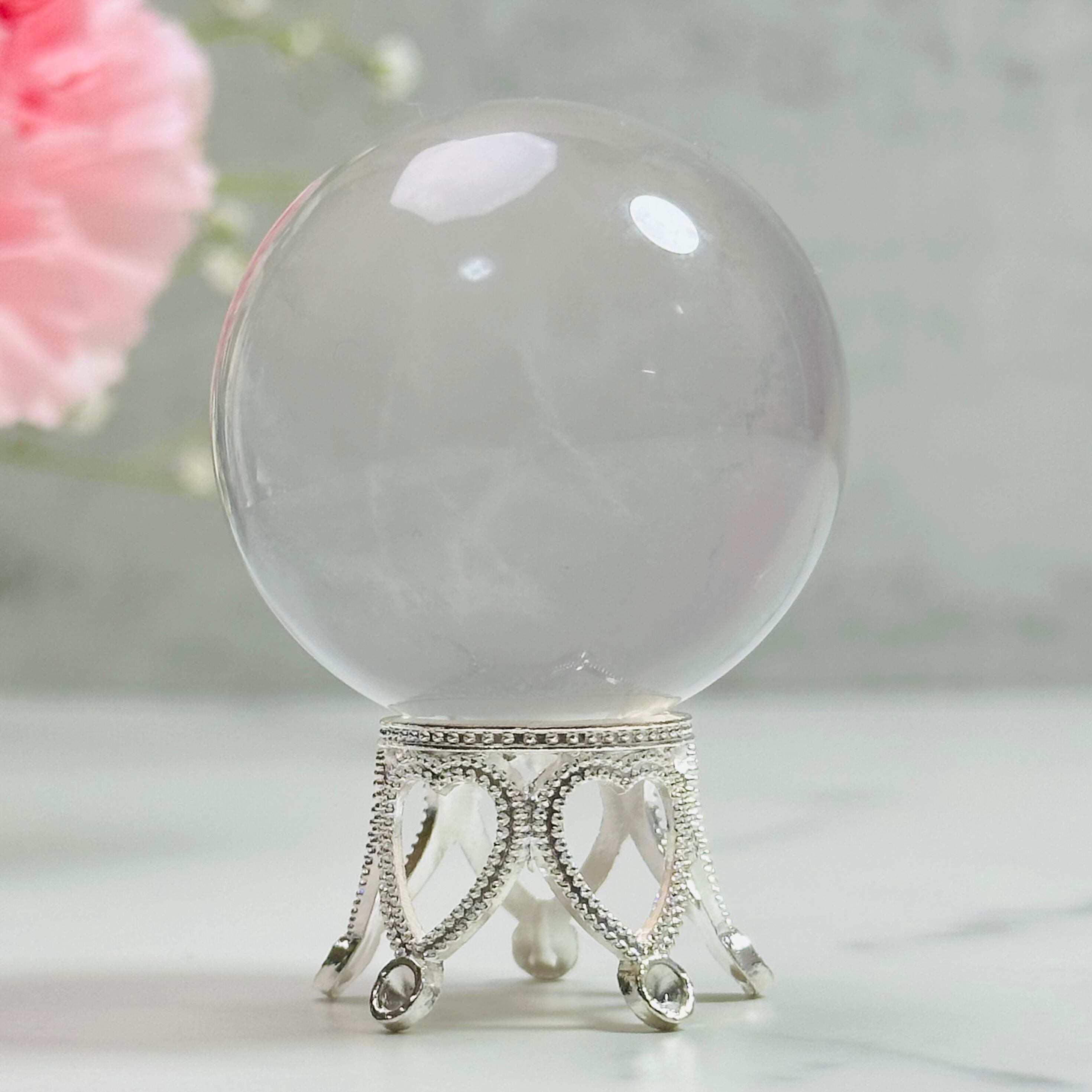 パステルカラーの柔和な色合いが可愛いイットリウムフローライトのスフィア。光を受けて淡く優しく輝きます。目に入るたびに癒しを与えてくれるナチュラルで大人可愛いインテリアストーンです。