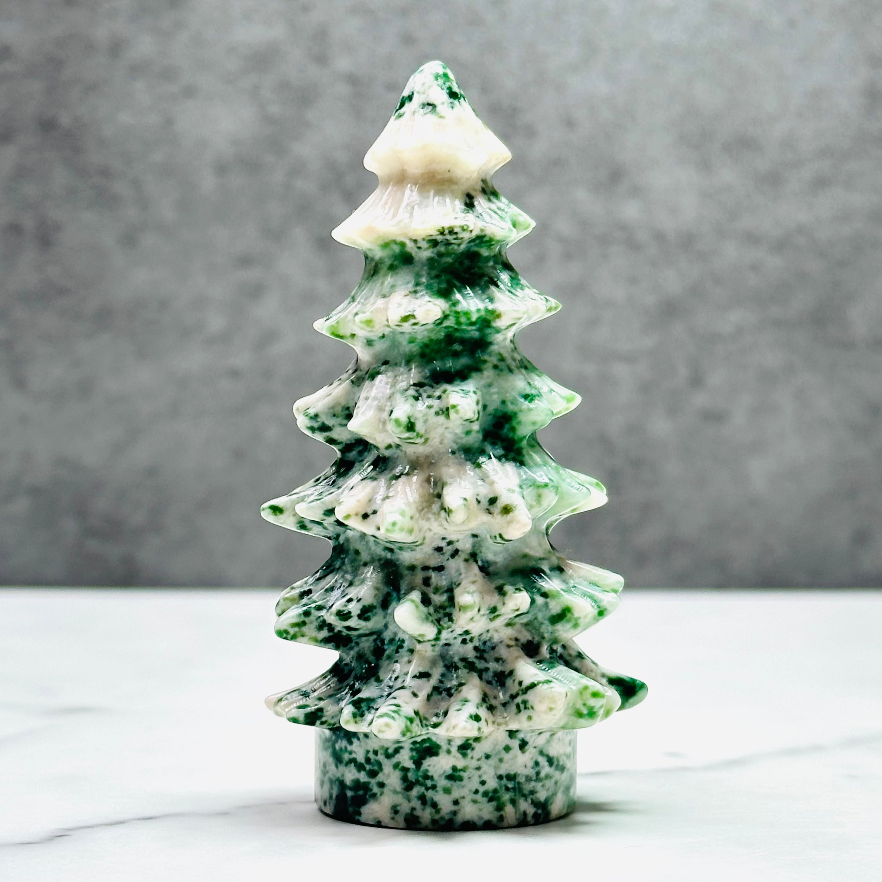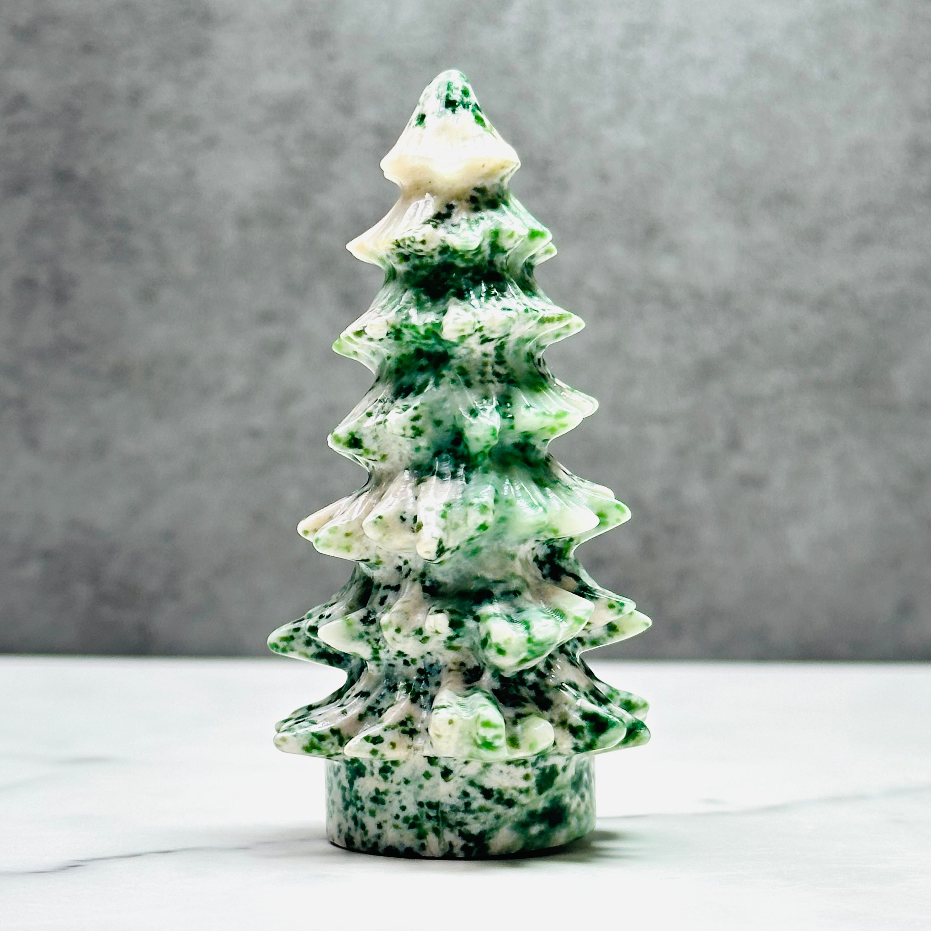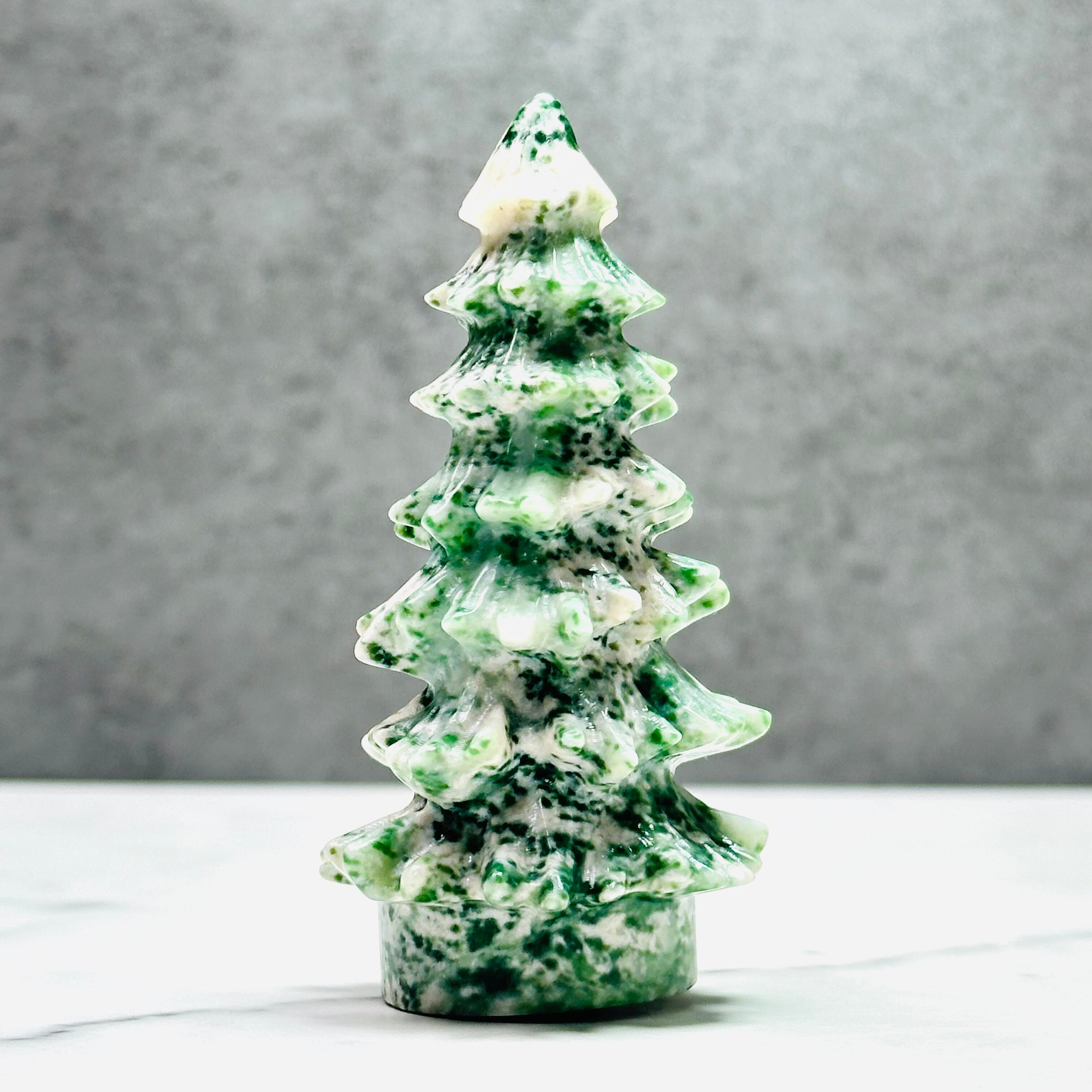 ツリーアゲートのツリーです。冬の森に生息する樹木が雪を被ったかのように凛とした佇まいが美しいツリーアゲート。インテリアとしても大変優秀で、他の天然石ともよく馴染み調和してくれます。カービングやタンブルなどと一緒にお部屋を素敵に飾ってください。