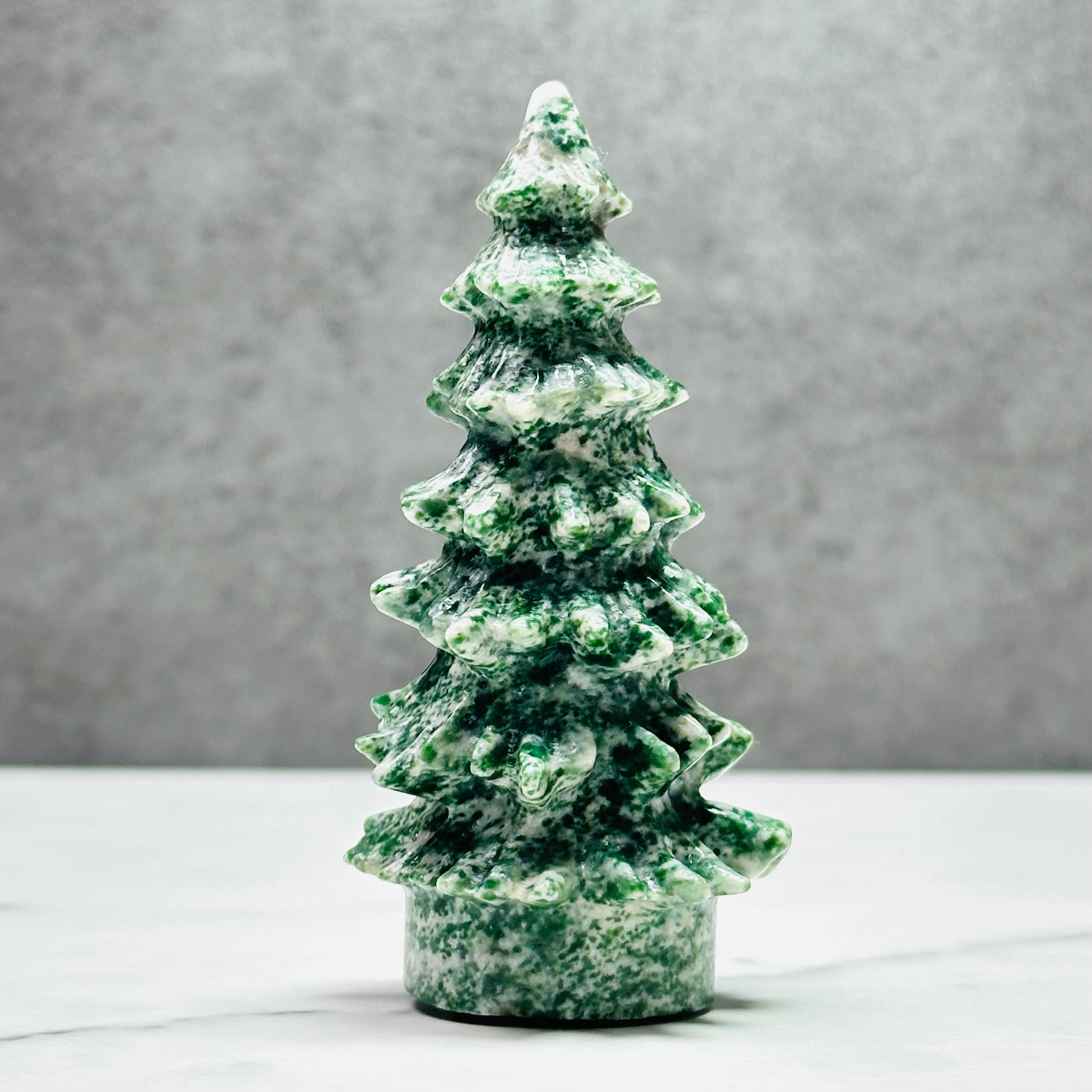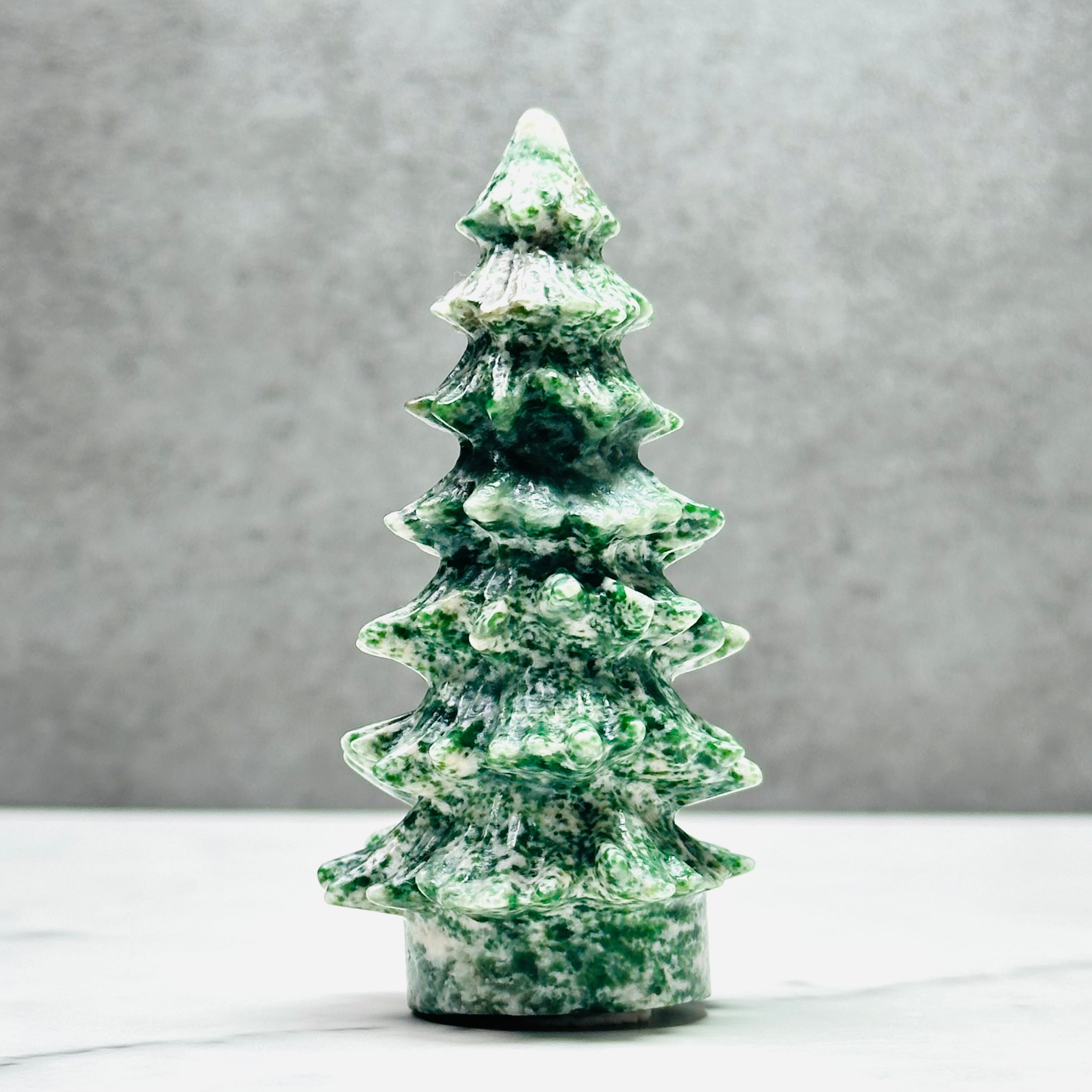 ツリーアゲートのツリーです。冬の森に生息する樹木が雪を被ったかのように凛とした佇まいが美しいツリーアゲート。インテリアとしても大変優秀で、他の天然石ともよく馴染み調和してくれます。カービングやタンブルなどと一緒にお部屋を素敵に飾ってください。