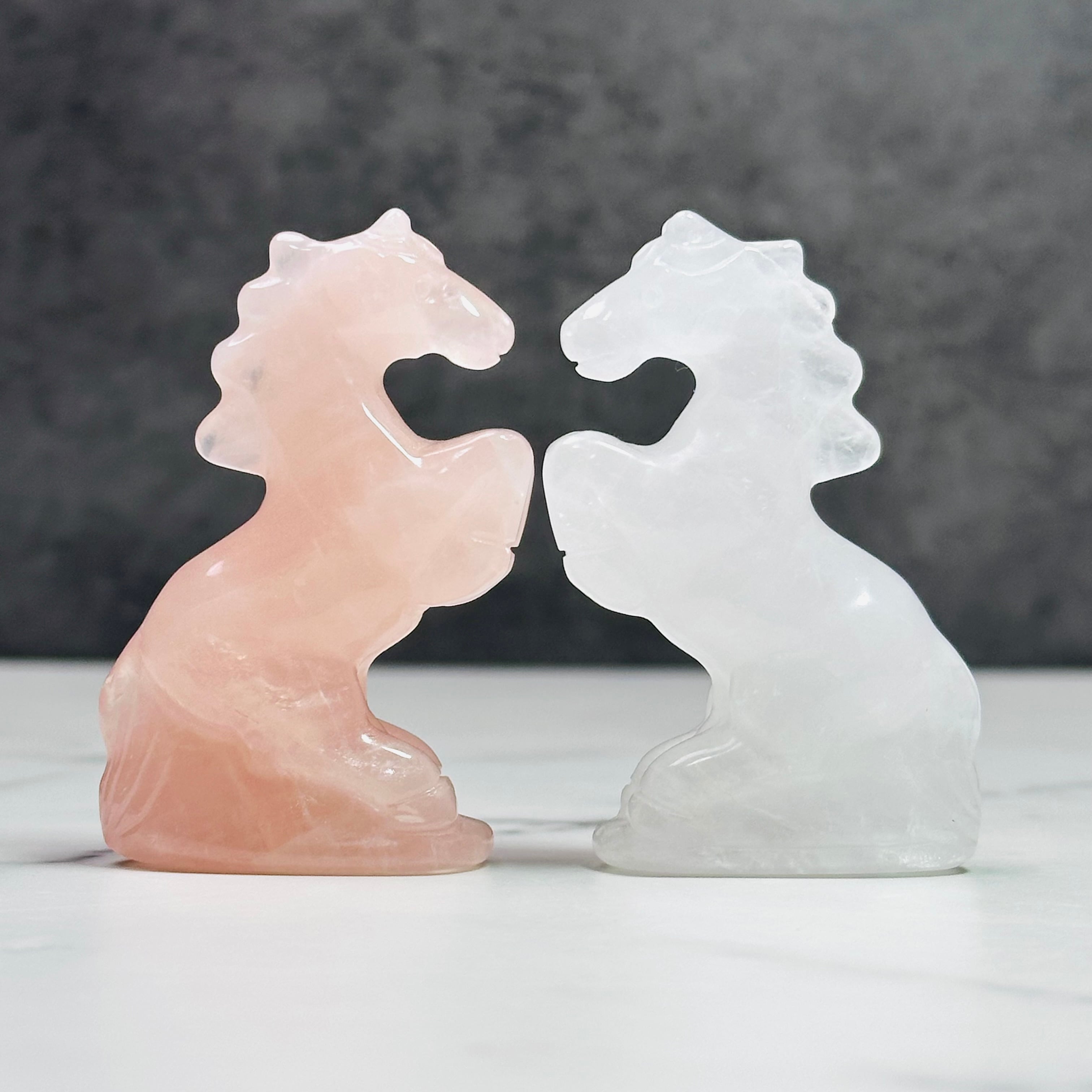 水晶・ローズクォーツを丁寧に彫刻した馬のオブジェ。前足を高く掲げた姿が印象的で、お部屋に凛とした清らかさをもたらします。来年の干支「午」は前向きなエネルギーを感じさせ、頑張る人の背中を押ししてくれることでしょう。やさしく光を受け止め、お部屋に穏やかな明るさをもたらします。希望に満ちた新しい一年の象徴としてお迎えください。
