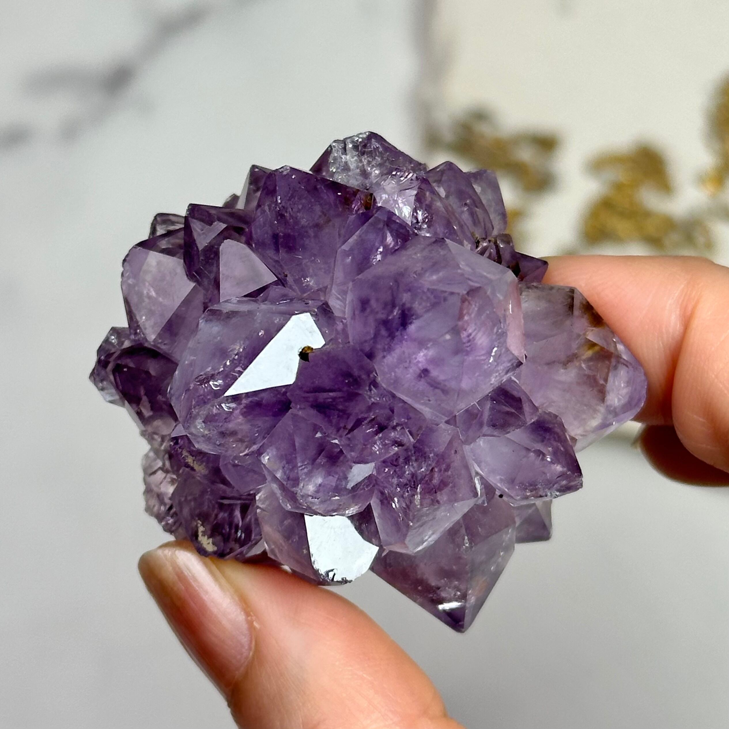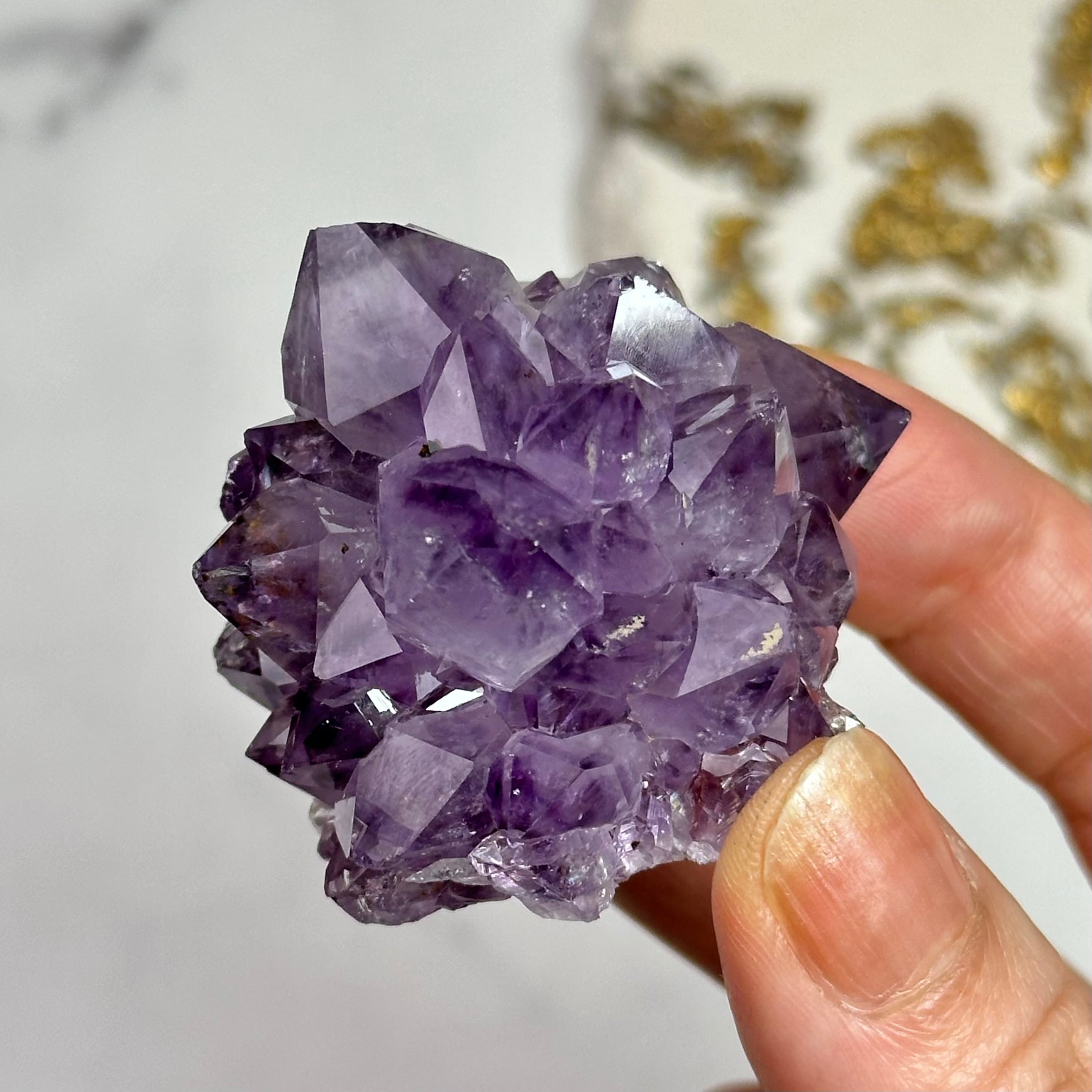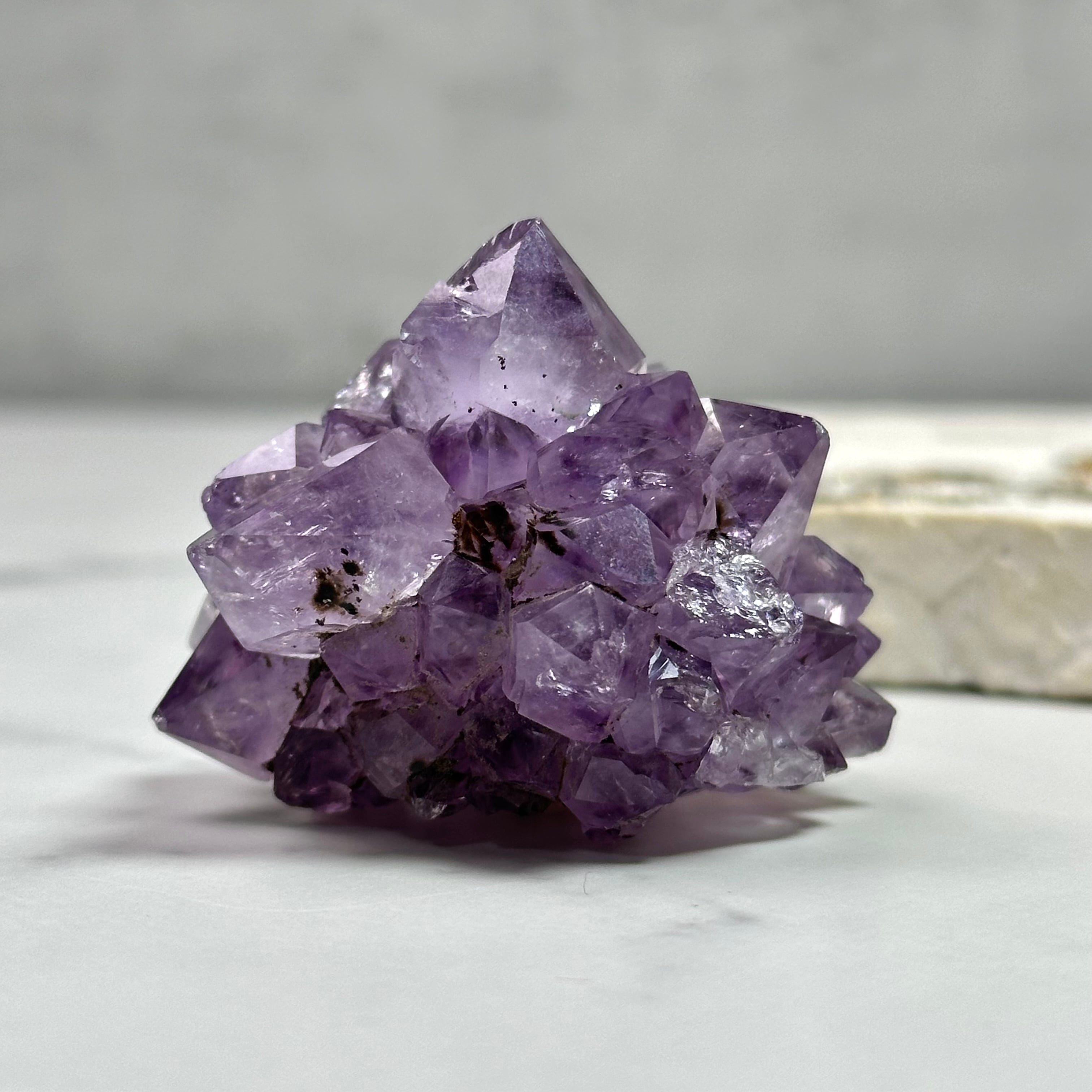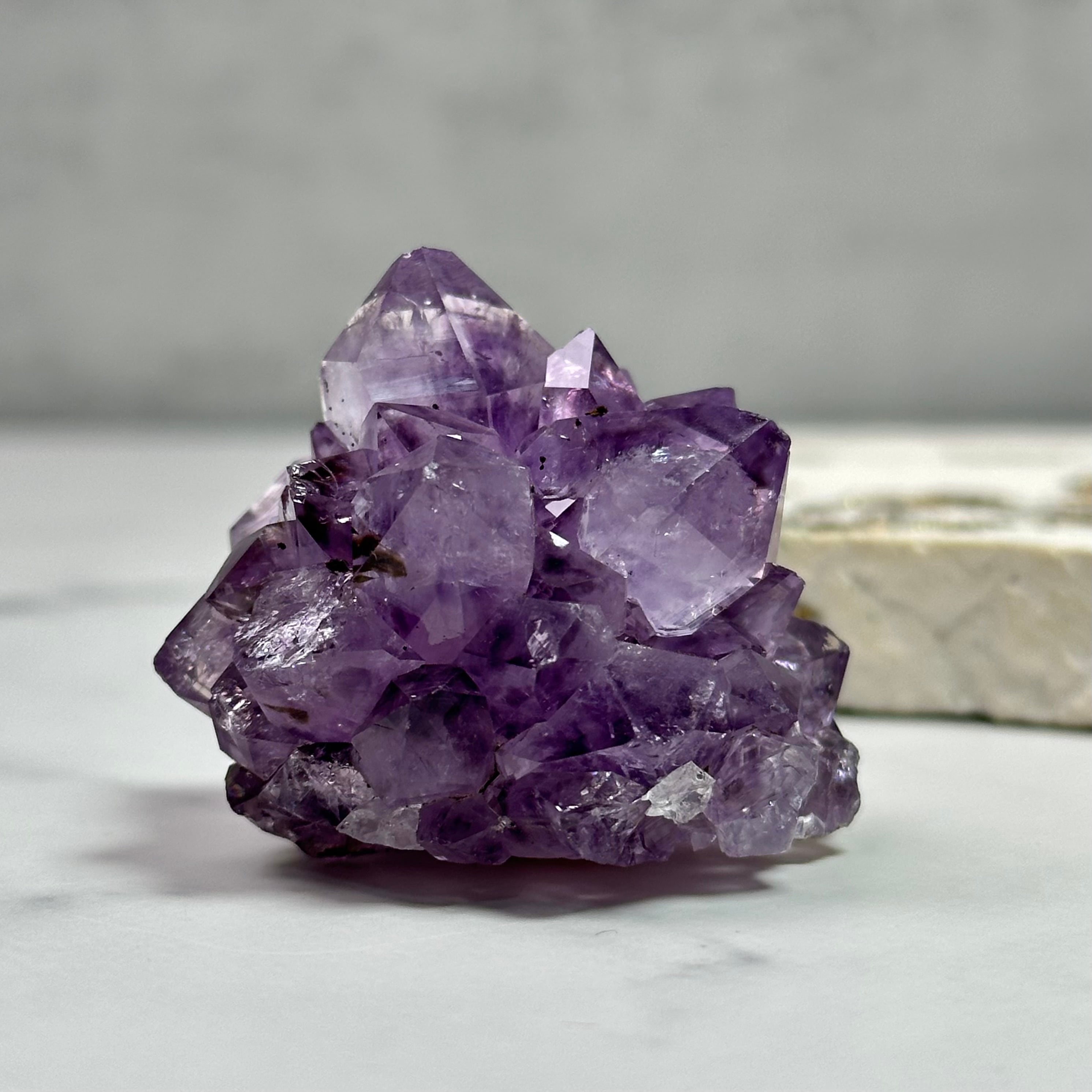 地球からの贈り物、美しいアメジストが届きました。透き通ったクォーツは凛として、表めには自然の艶照りが光を柔らかく反射します。茶色い内包物はゲーサイトでしょうか、神秘的で自然の産物であることを証明しています。本格的な冬の訪れを感じる今日この頃。アメジストがより一層美しく輝き愛おしくなる季節がやってきます。