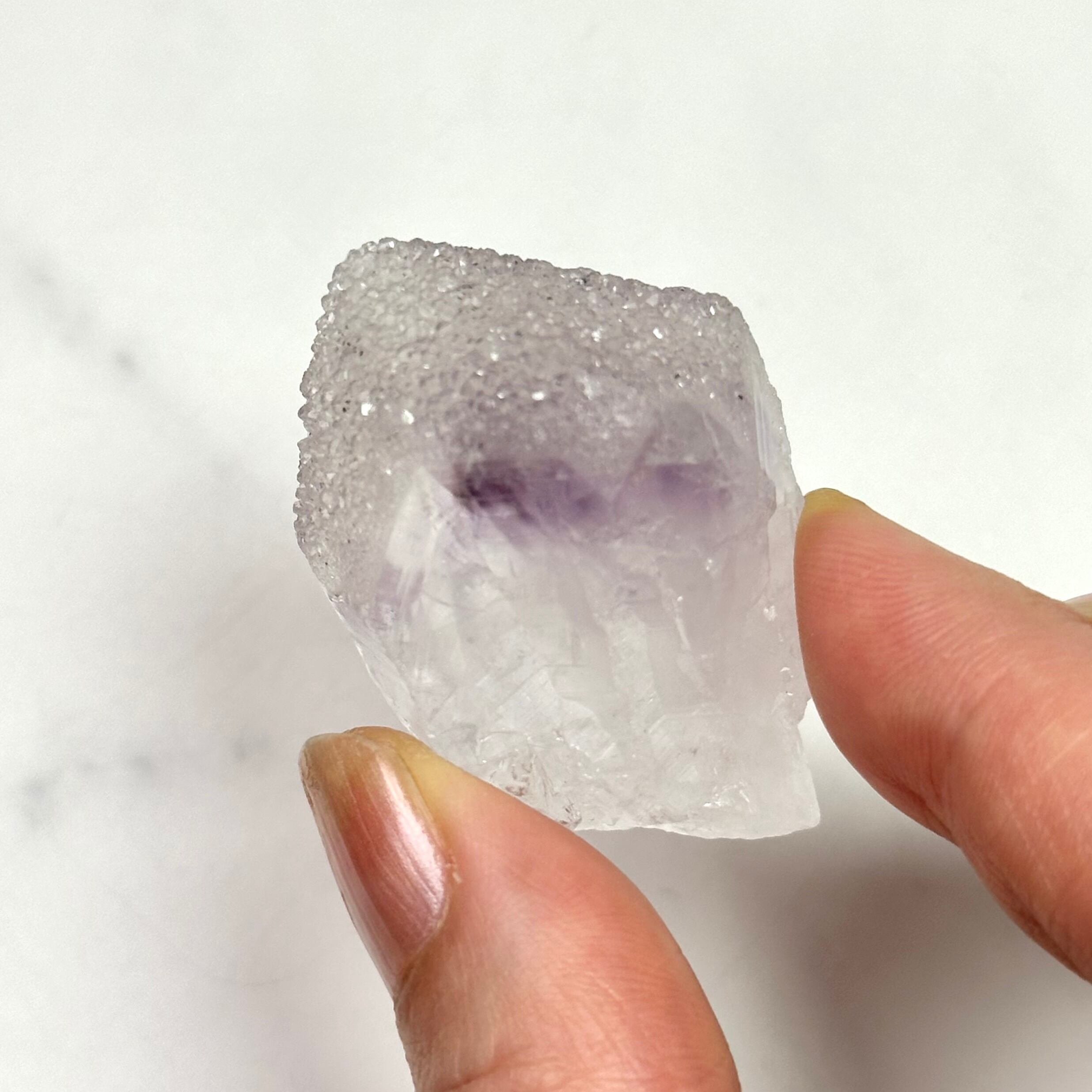 Minas Gerais Brazil より、ドゥルージーアメジストスノーホワイトが入荷しました。キラキラ上品に輝く白く美しいドゥルージーアメジストの原石。氷柱のような結晶のカケラに、グラニュー糖をまぶしたような繊細で甘く可愛らしいアイテムです。