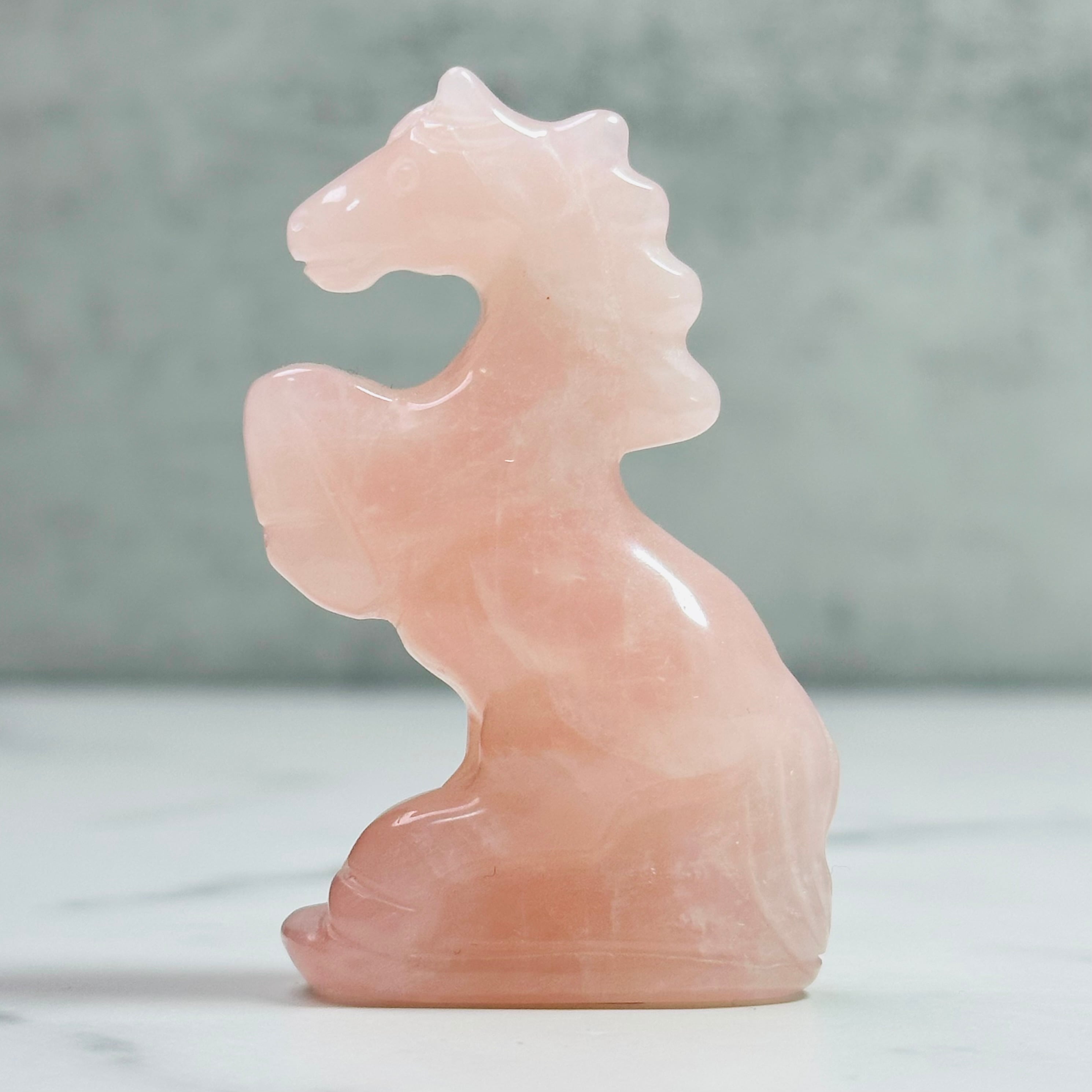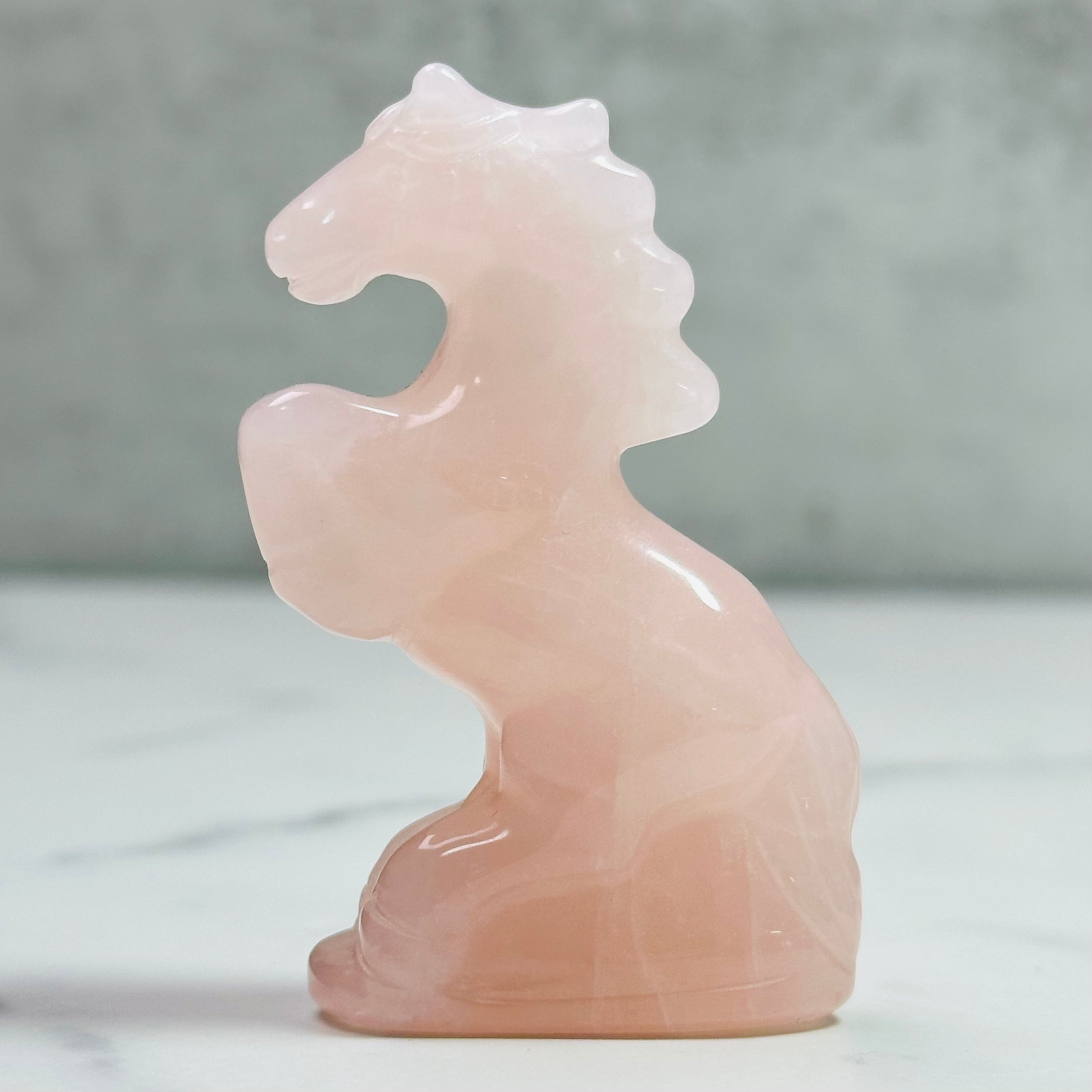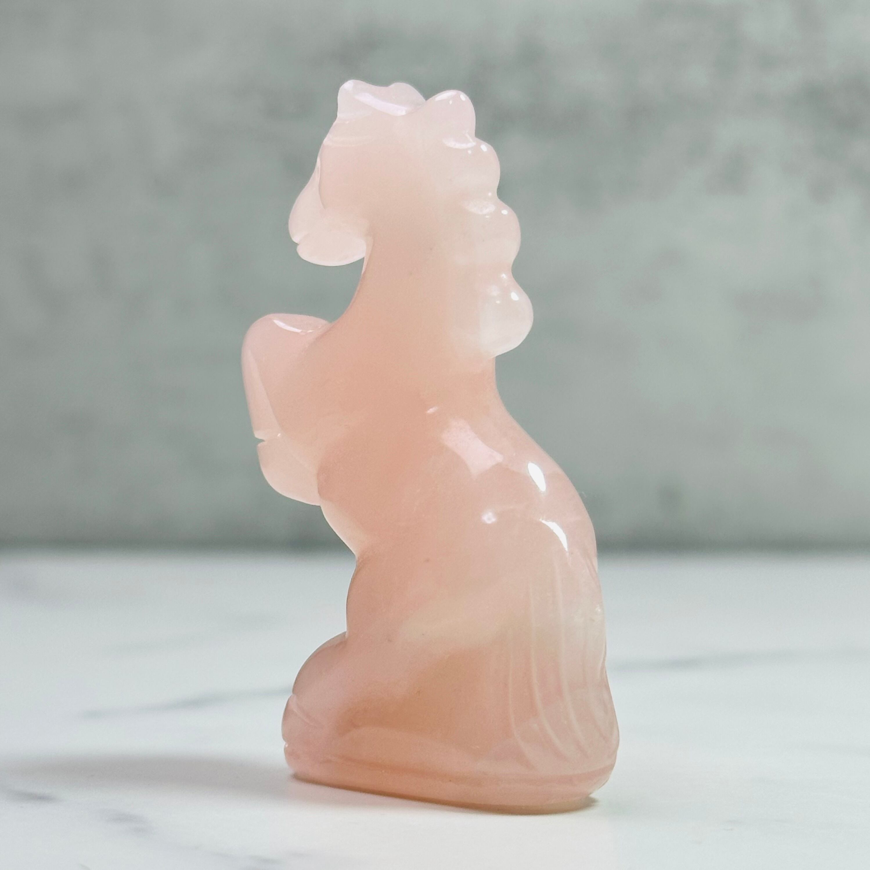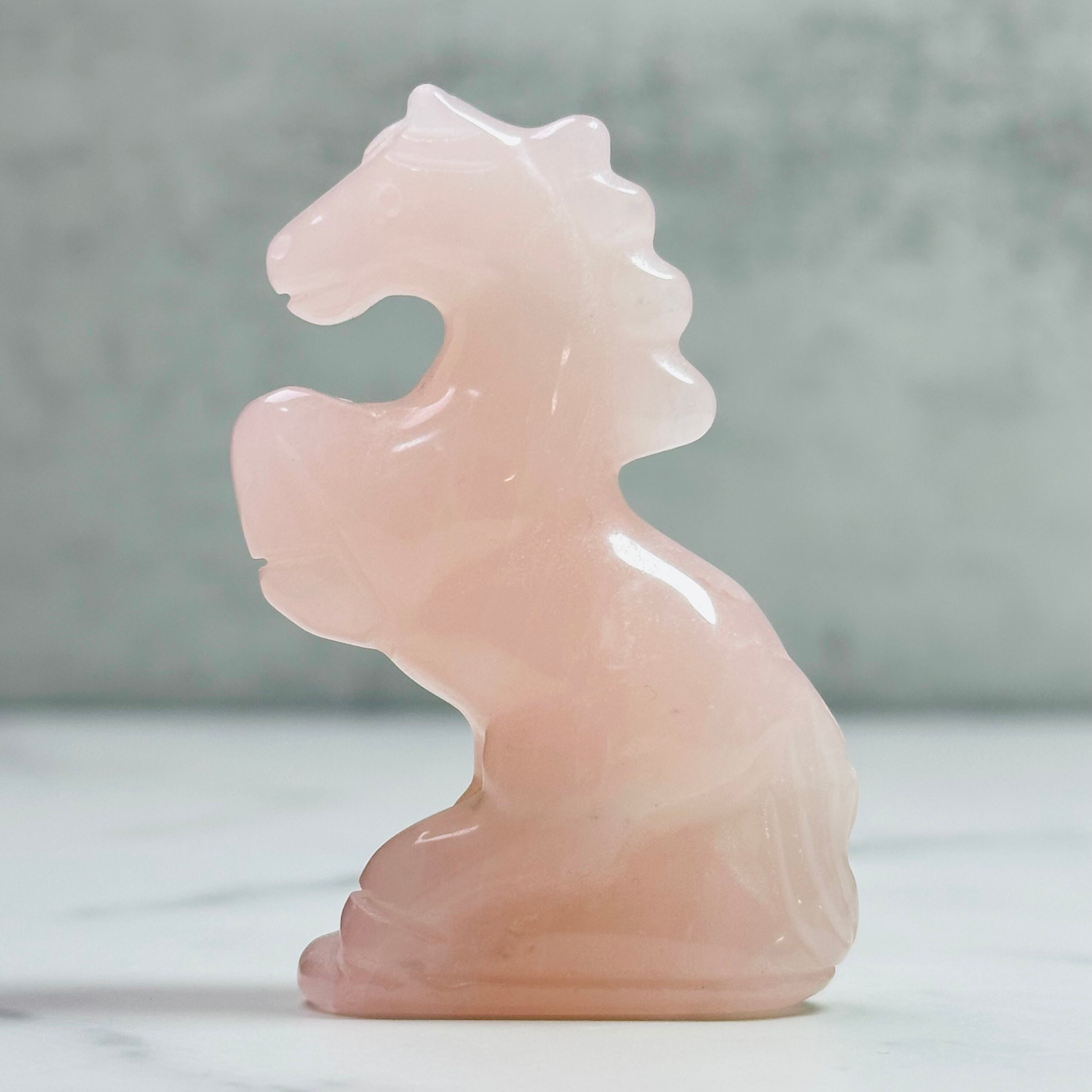 ローズクォーツを丁寧に彫刻した馬のオブジェ。前足を高く掲げた姿が印象的で、お部屋に凛とした清らかさをもたらします。来年の干支「午」は前向きなエネルギーを感じさせ、頑張る人の背中を押ししてくれることでしょう。やさしく光を受け止め、お部屋に穏やかな明るさをもたらします。希望に満ちた新しい一年の象徴としてお迎えください。
