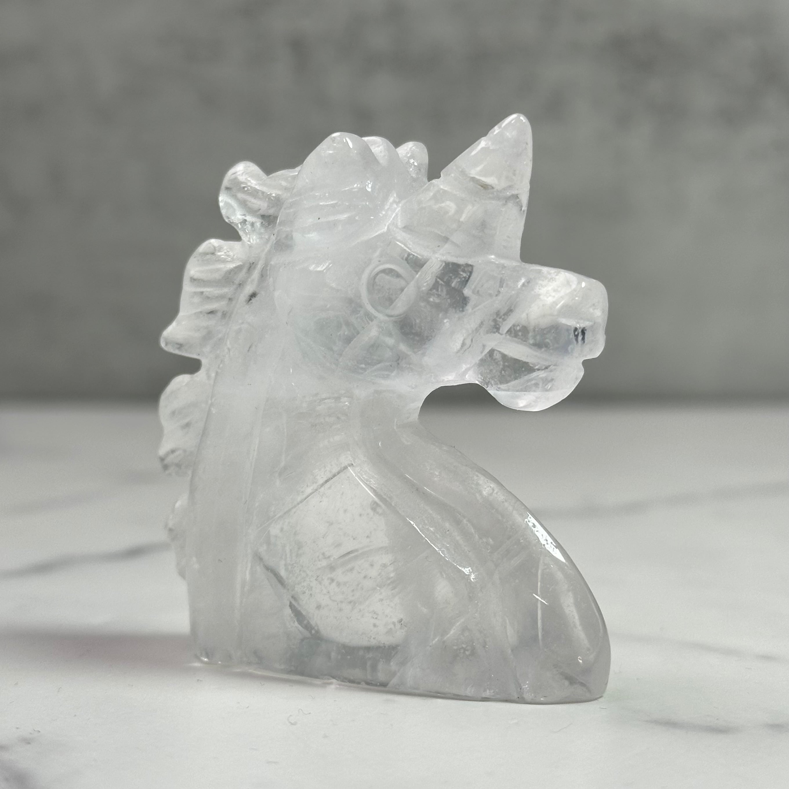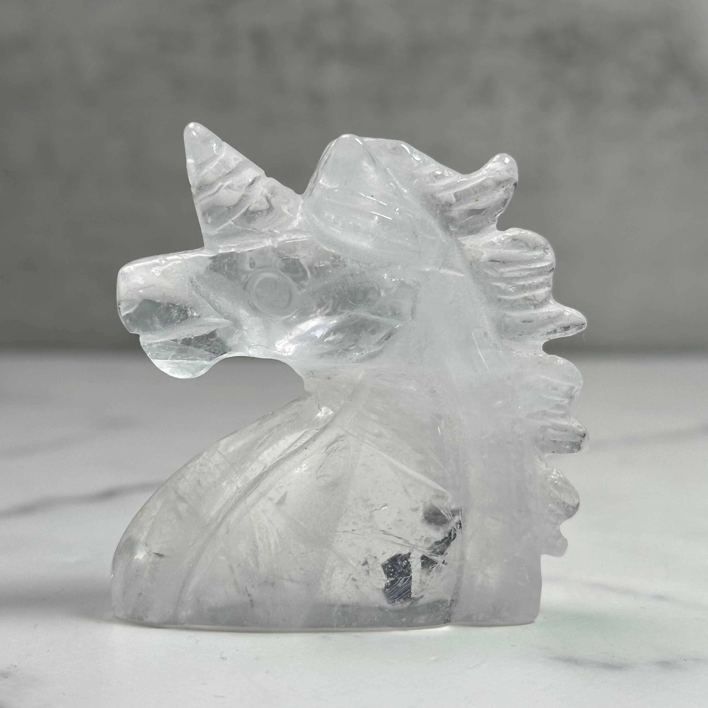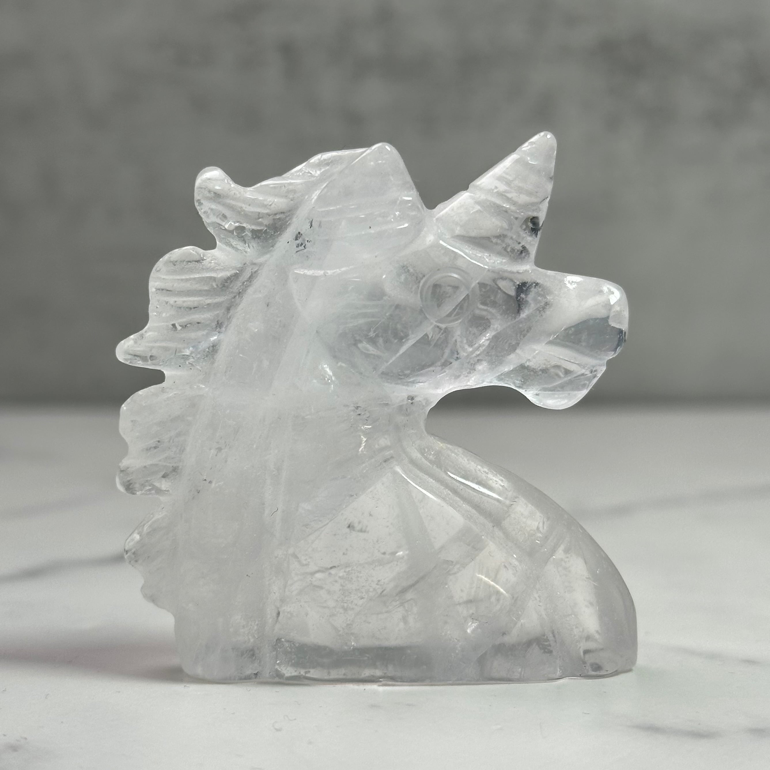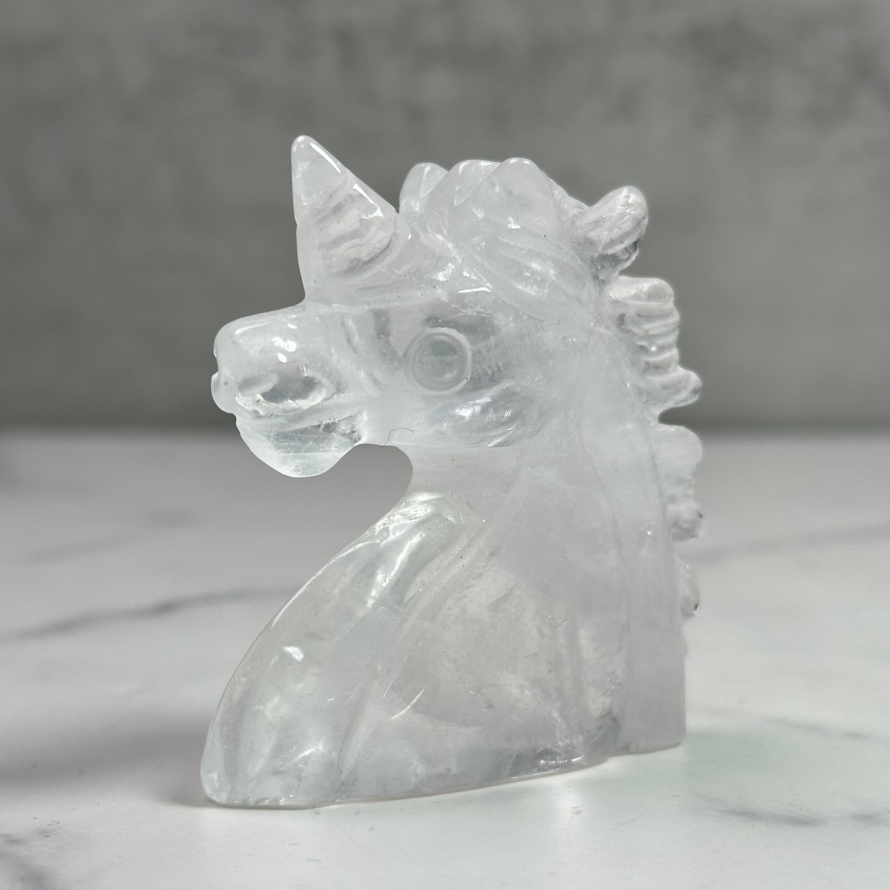 透き通ったクリアな水晶が美しいクリアクォーツのユニコーン。聡明な印象の大きな瞳と強い意志を表す太い角が凛々しく、新しい年の決意を込めるのに相応しい佇まいです。みずみずしい質感と幻想的なフォルムは日常に癒しを与えながら、空間浄化にも役立つ頼れるインテリアアイテムです。贈り物にもおすすめです。