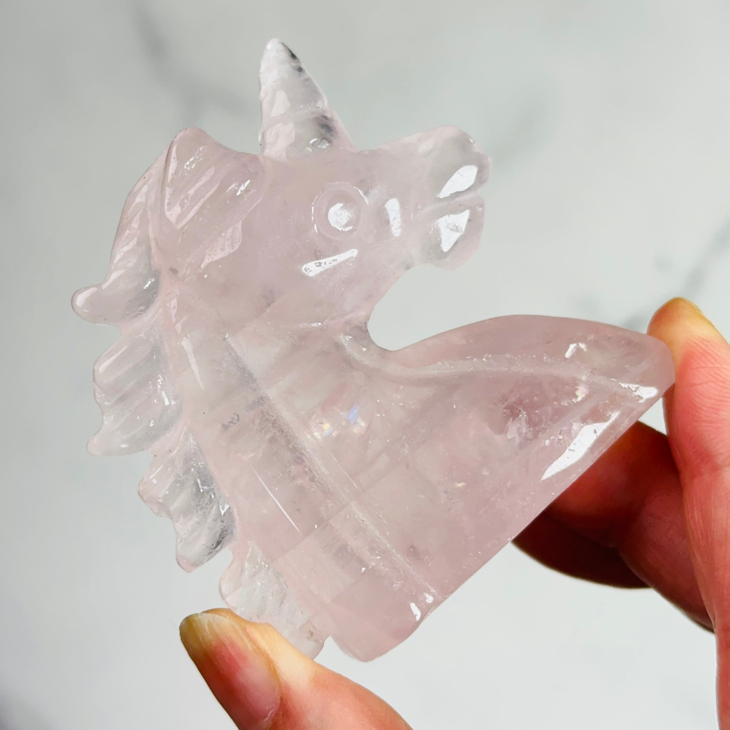 浄化と癒しの天然石|虹たっぷりのローズクォーツユニコーン