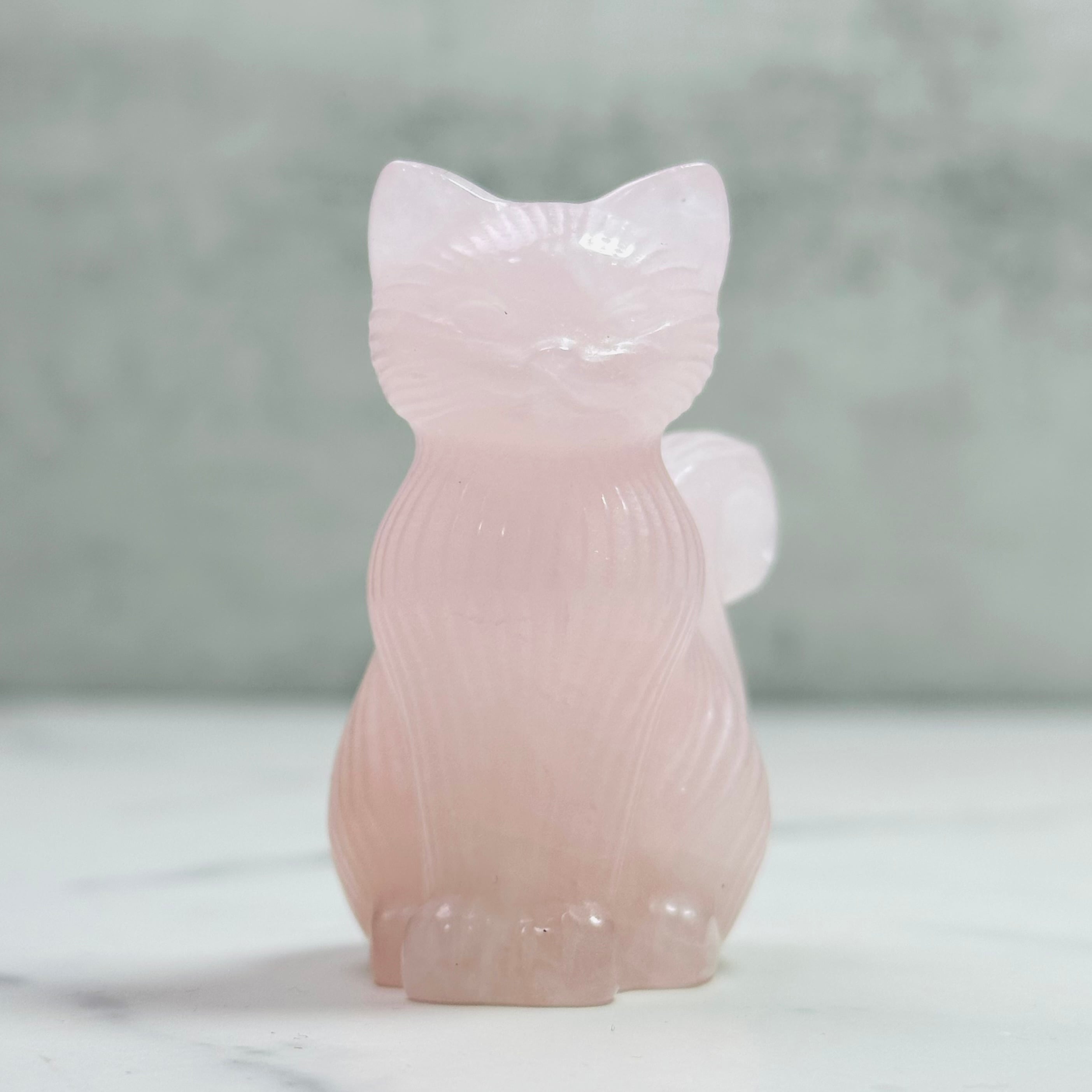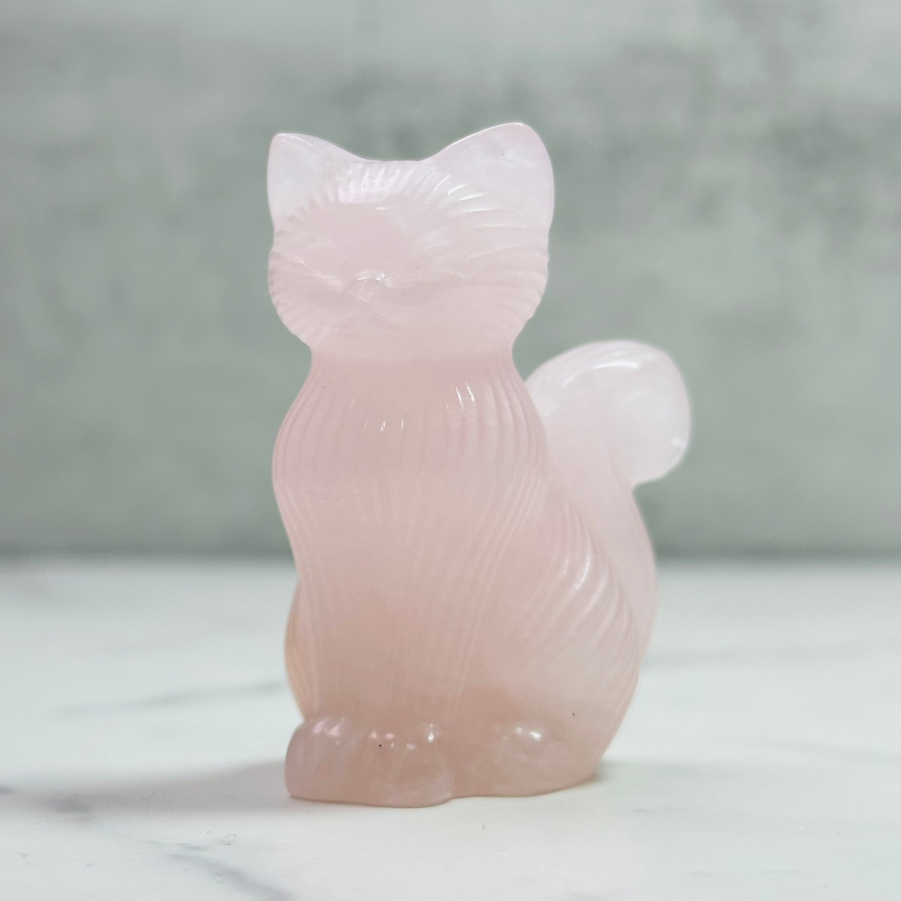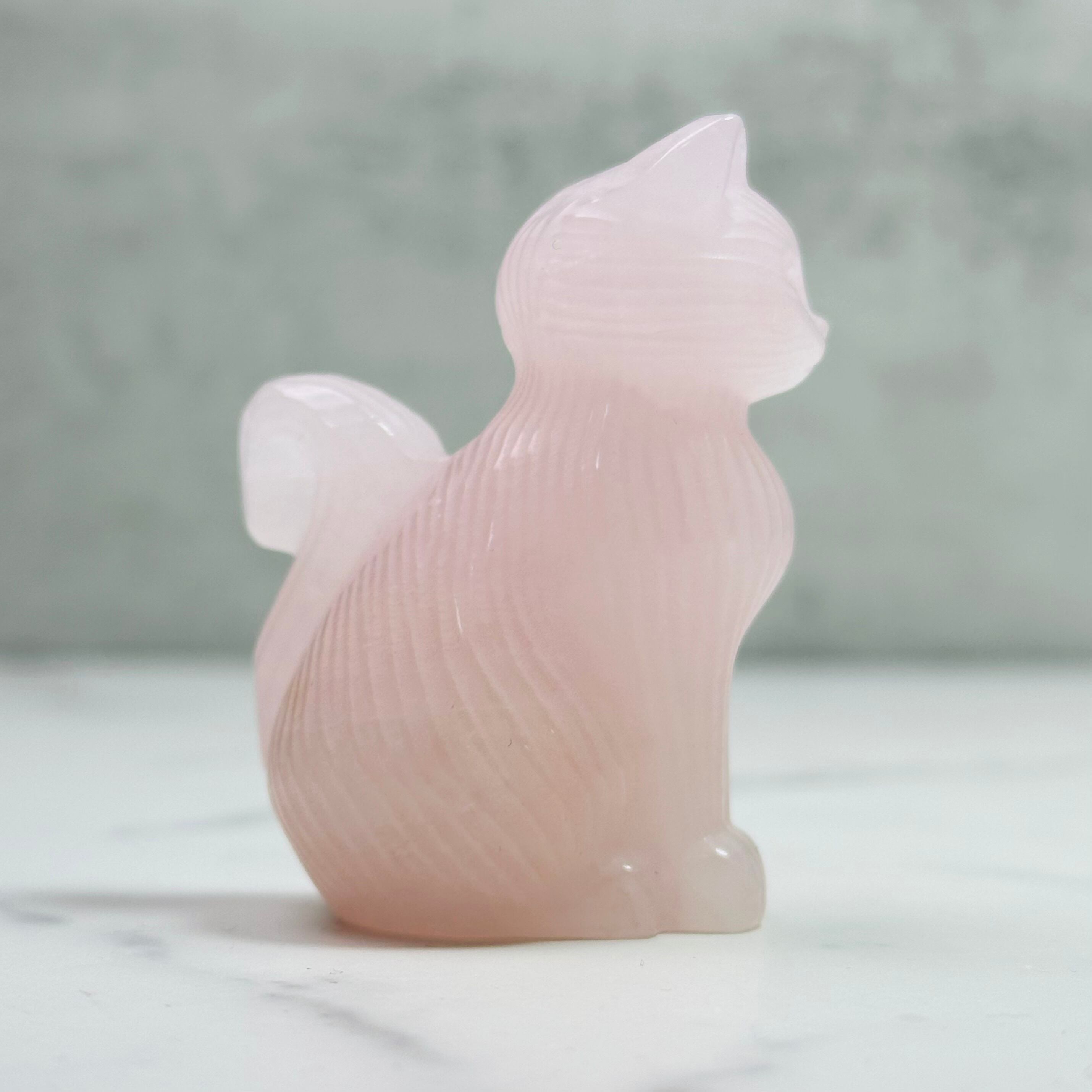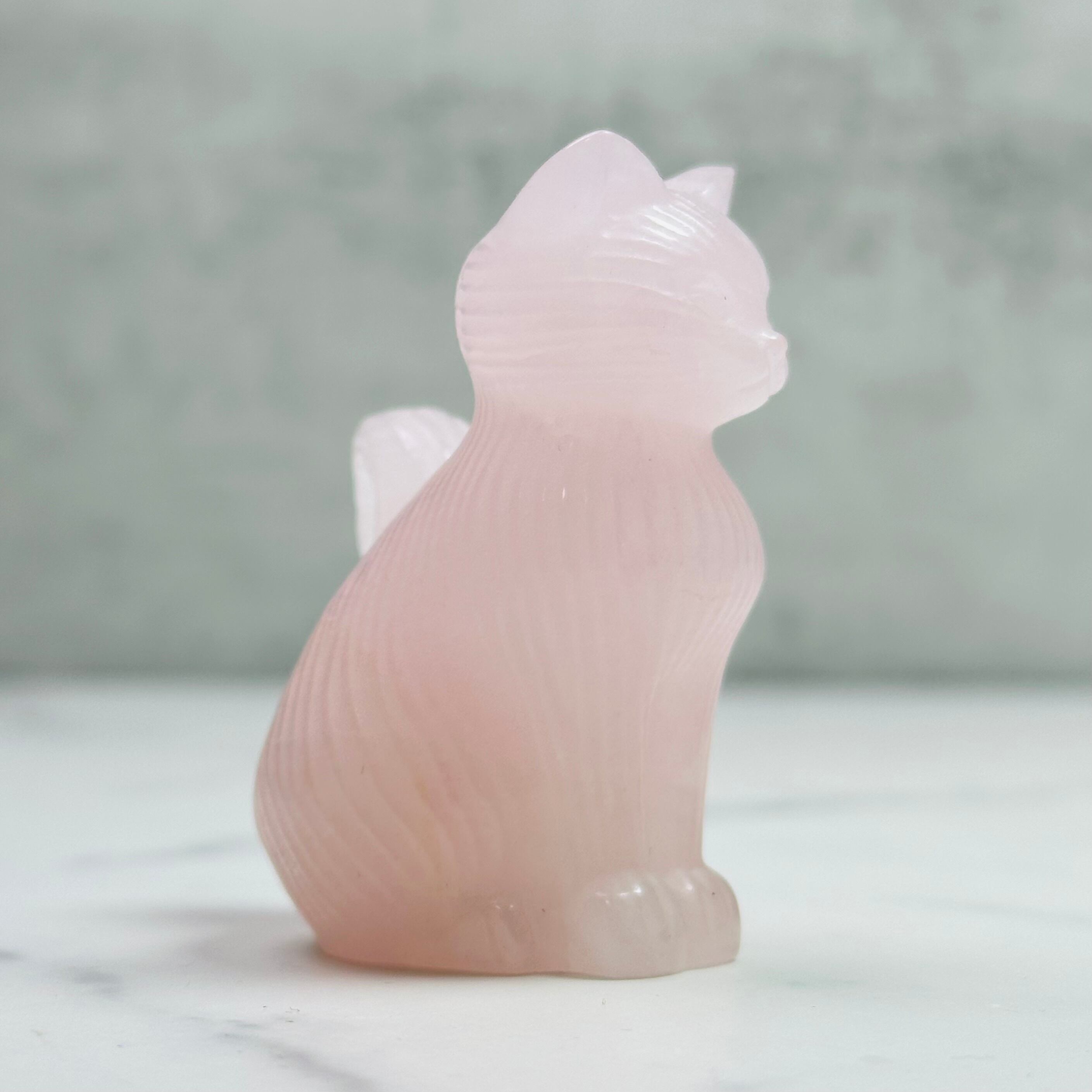 癒しの天然石インテリア|ローズクォーツ おすまし猫さん