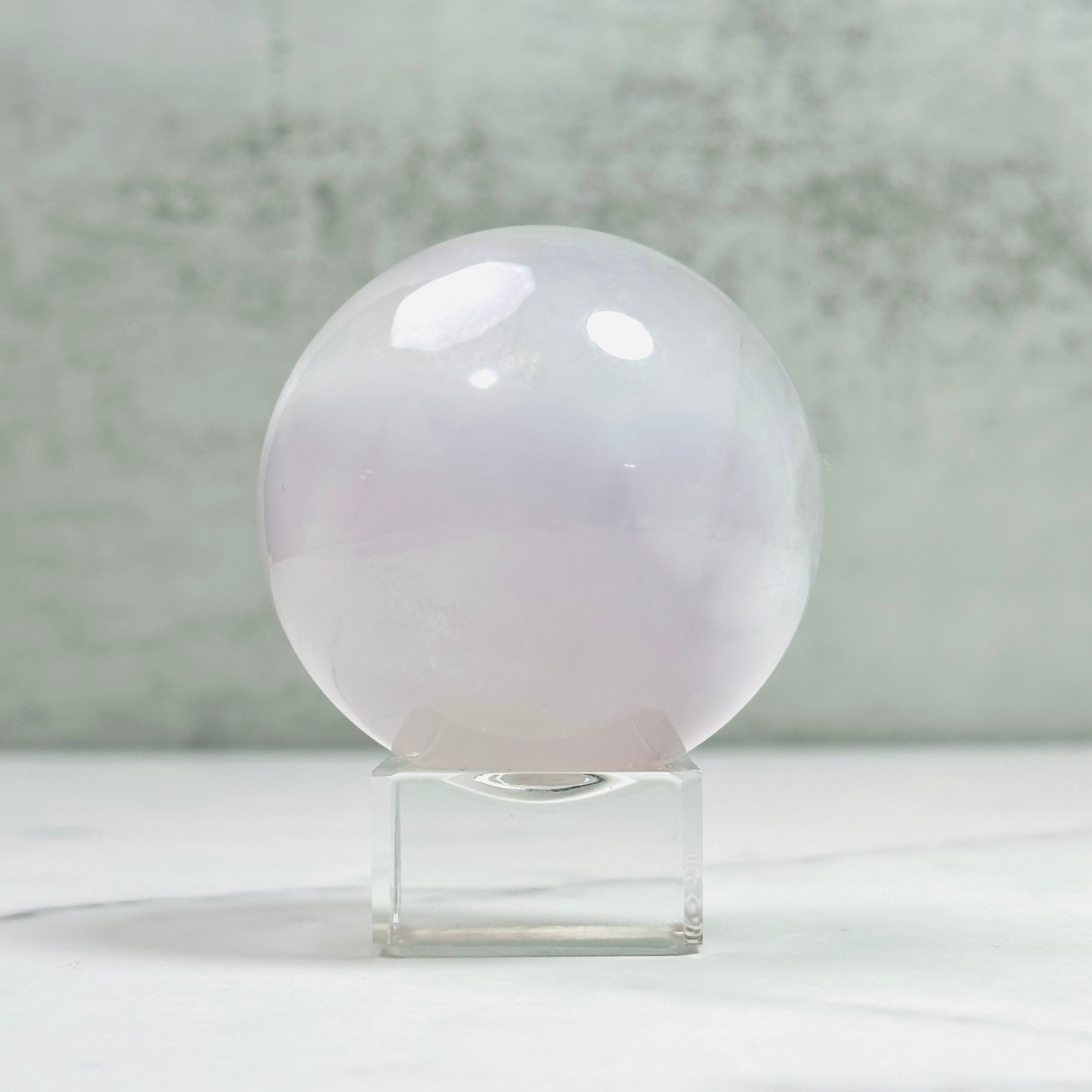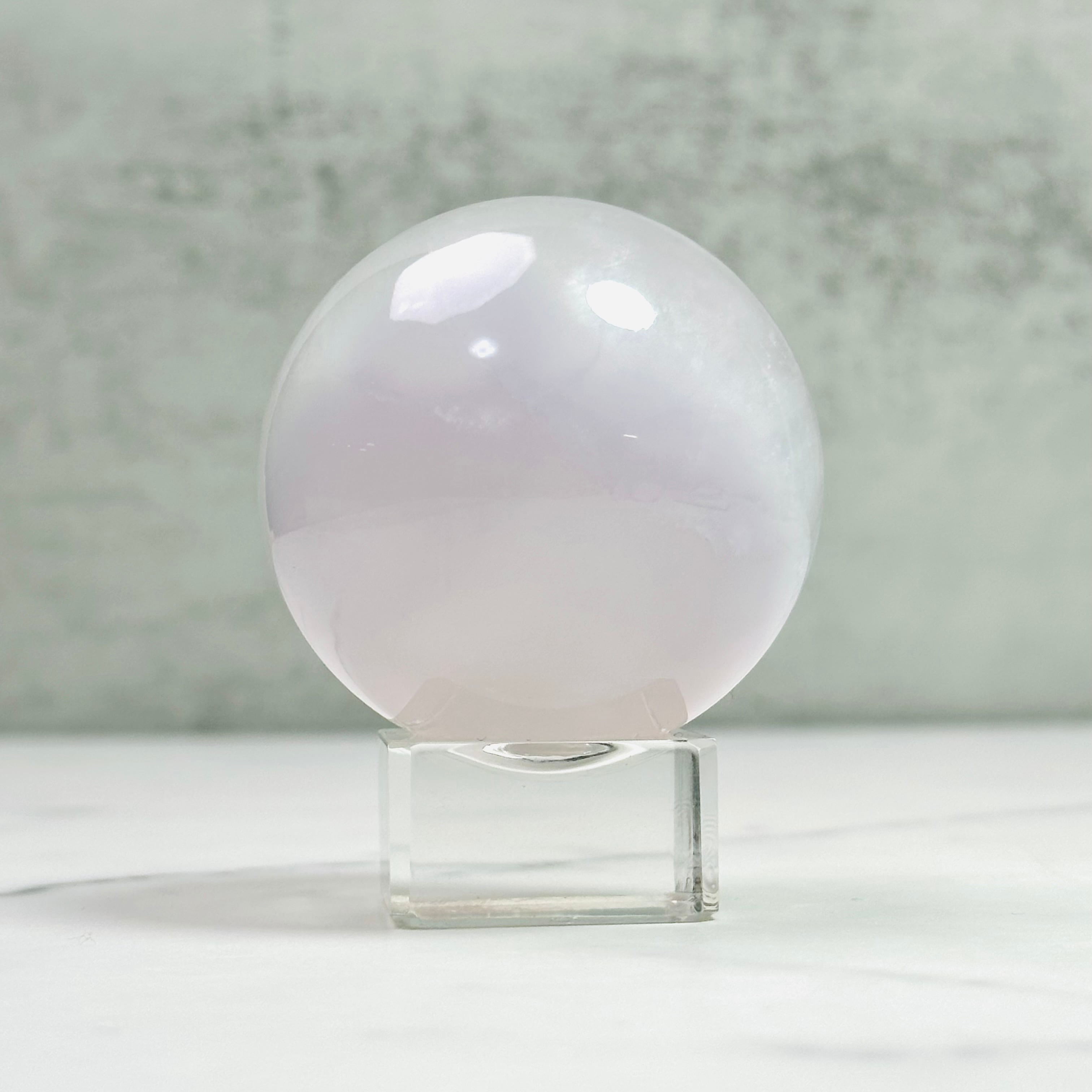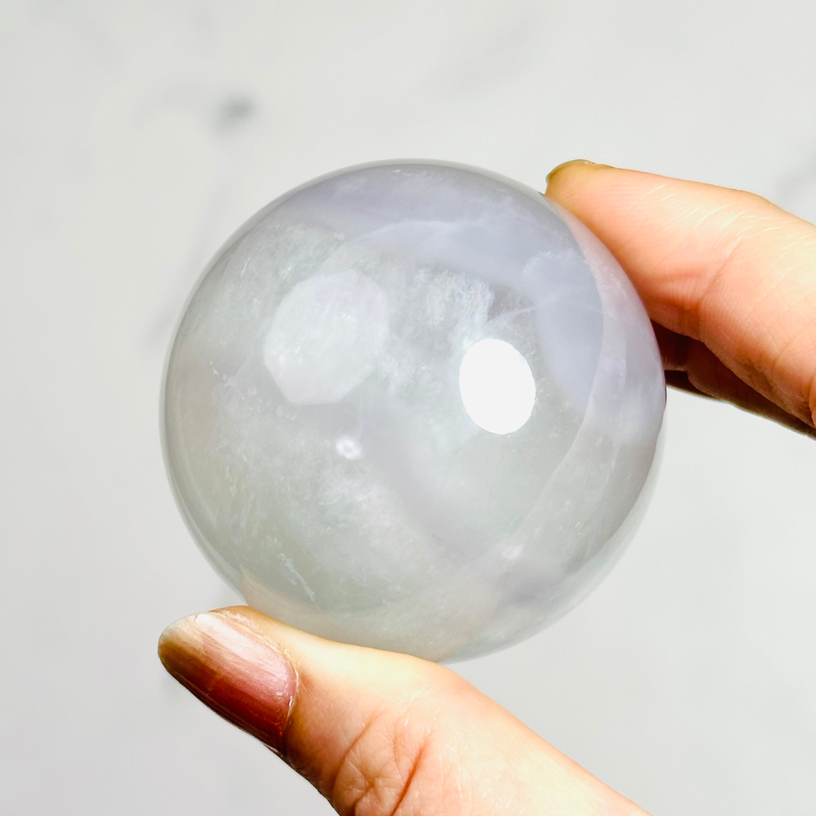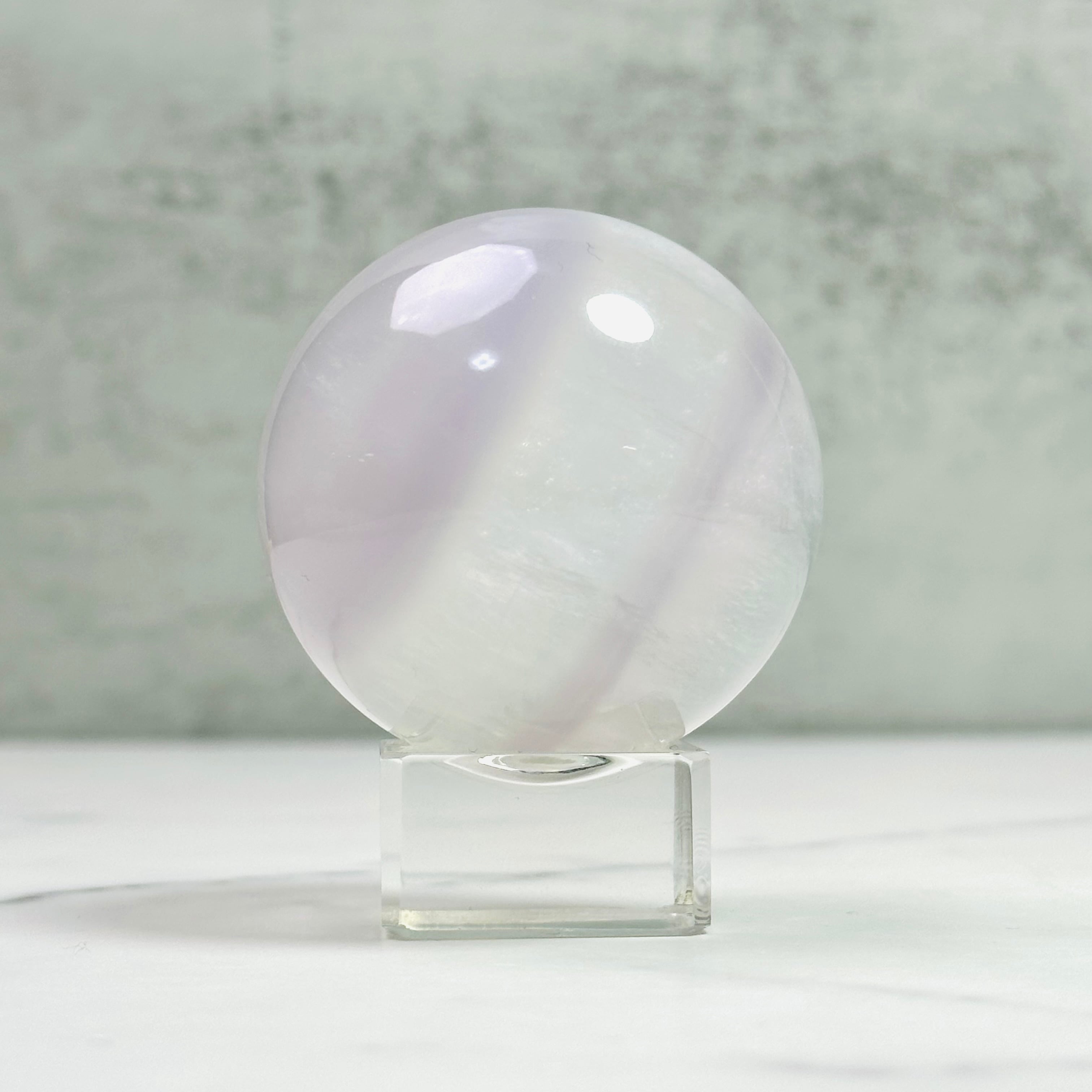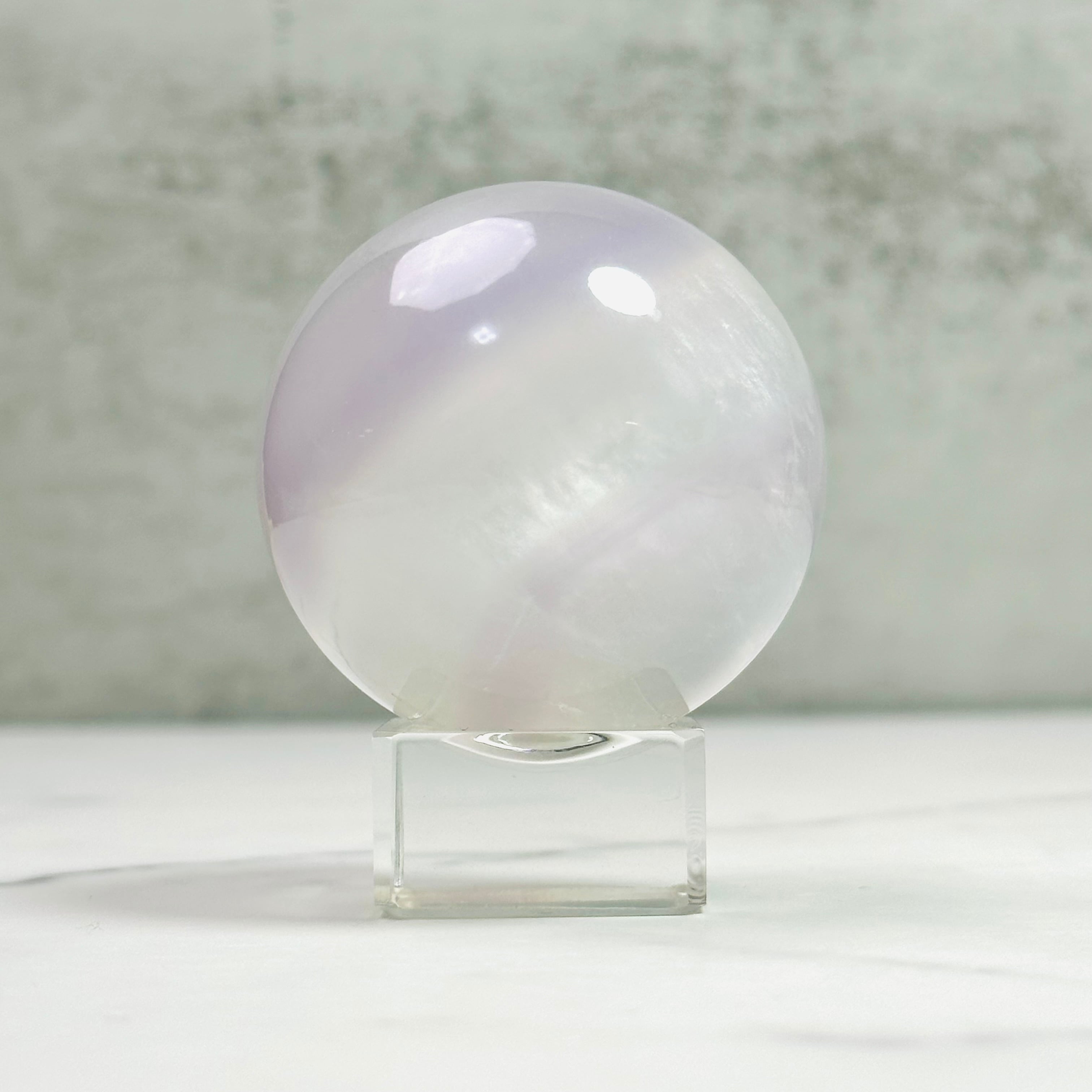 パステルカラーの柔和な色合いが可愛いイットリウムフローライトのスフィア。光を受けて淡く優しく輝きます。目に入るたびに癒しを与えてくれるナチュラルで大人可愛いインテリアストーンです。