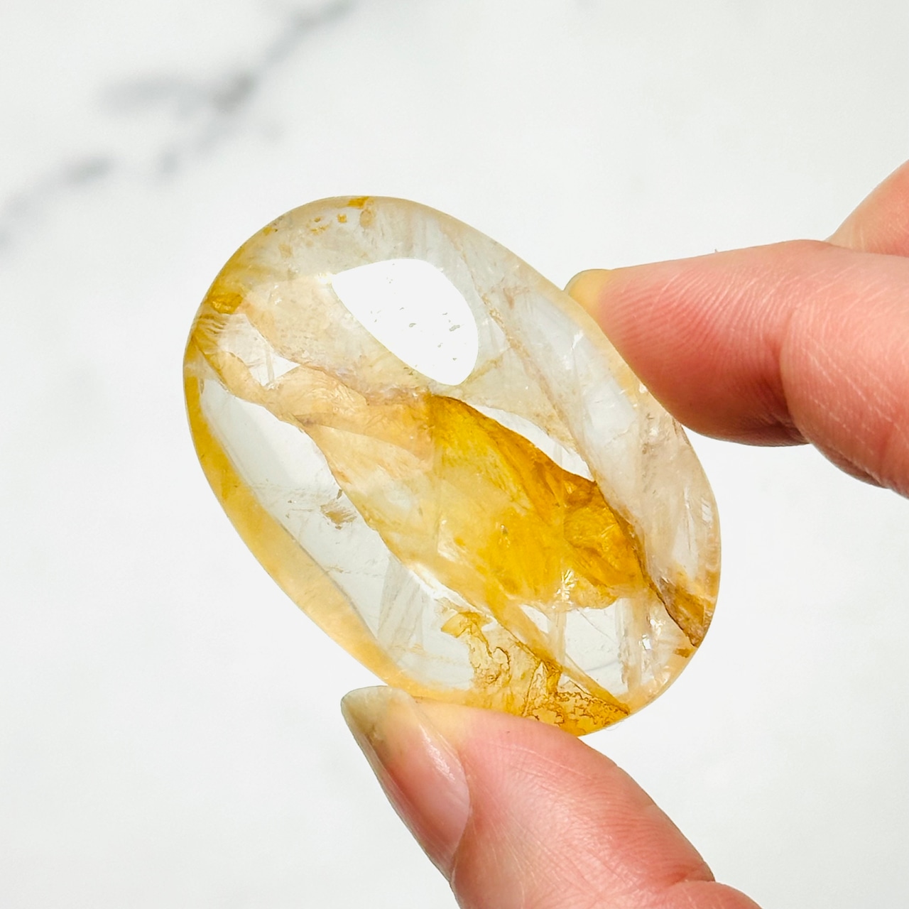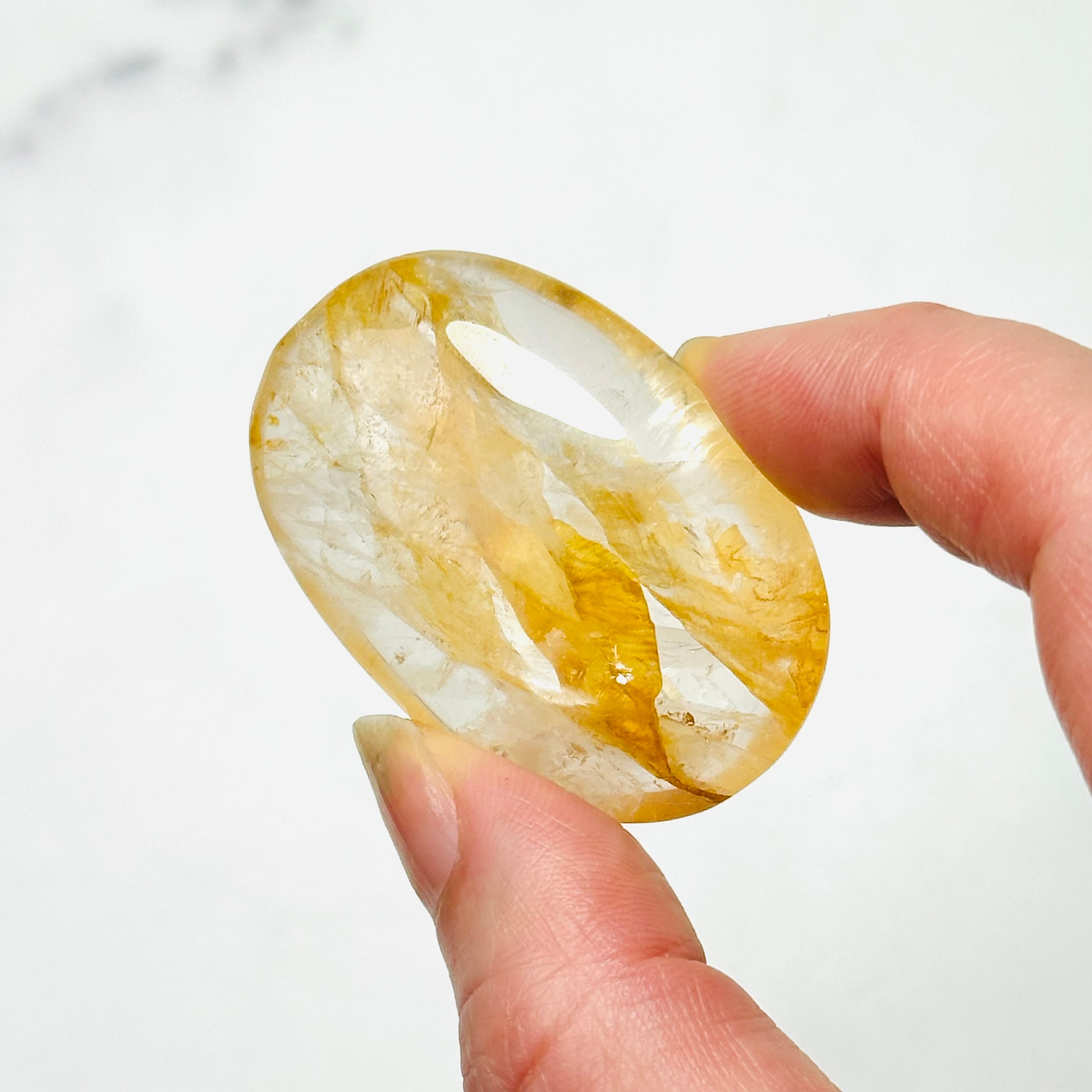 ぷっくりとした厚みのあるゴールデンヒーラーのパームストーン。心地よい触り心地で手のひらによく馴染みます。
