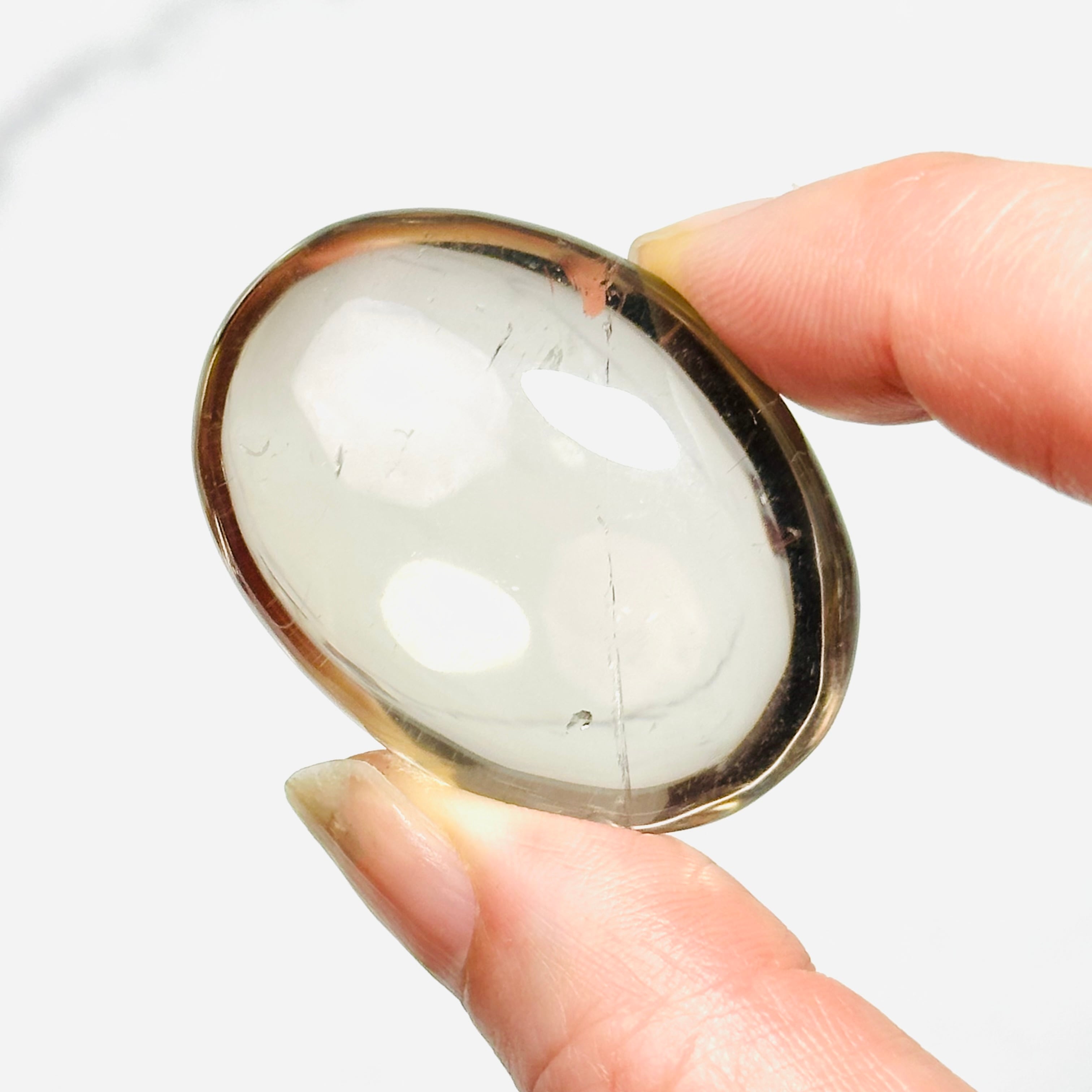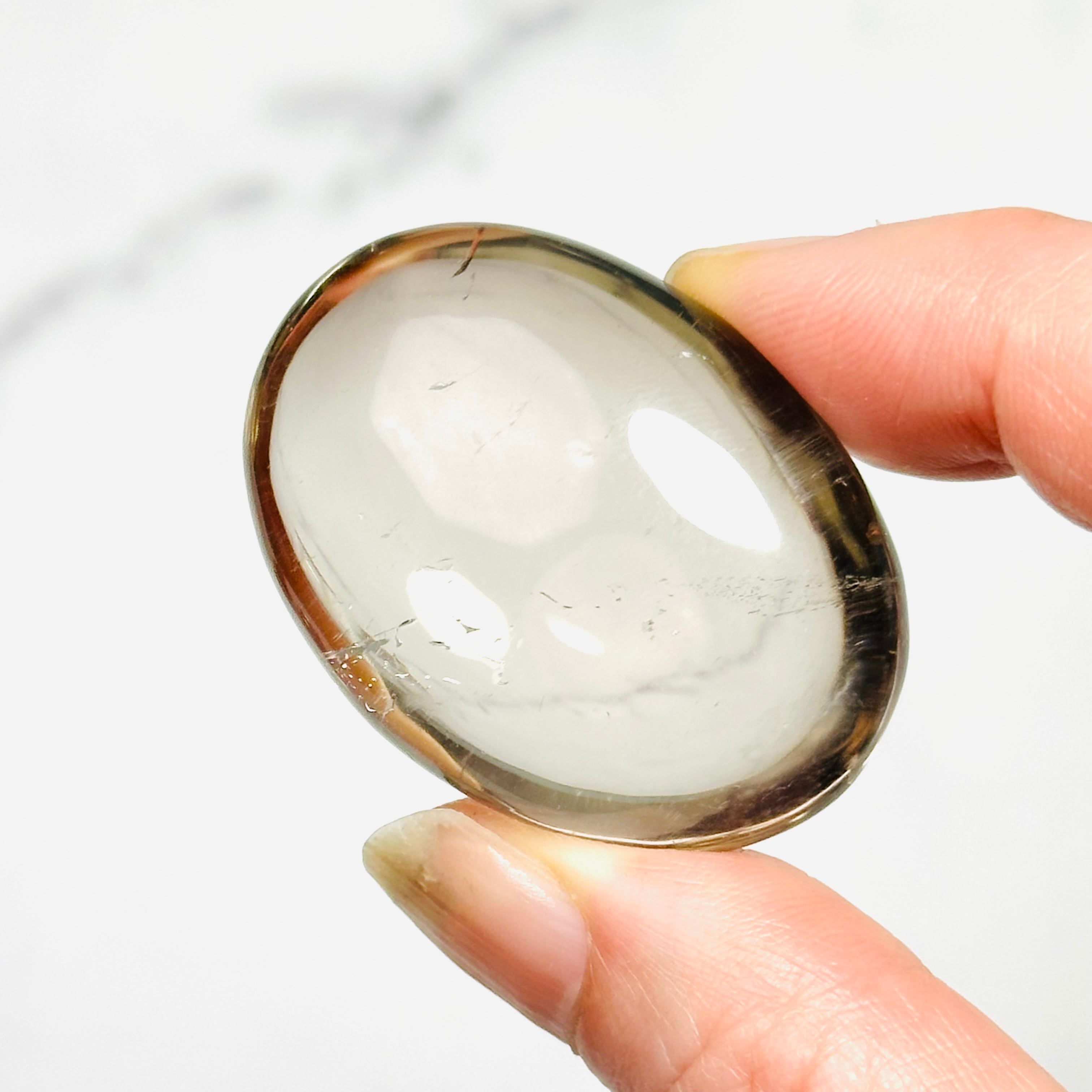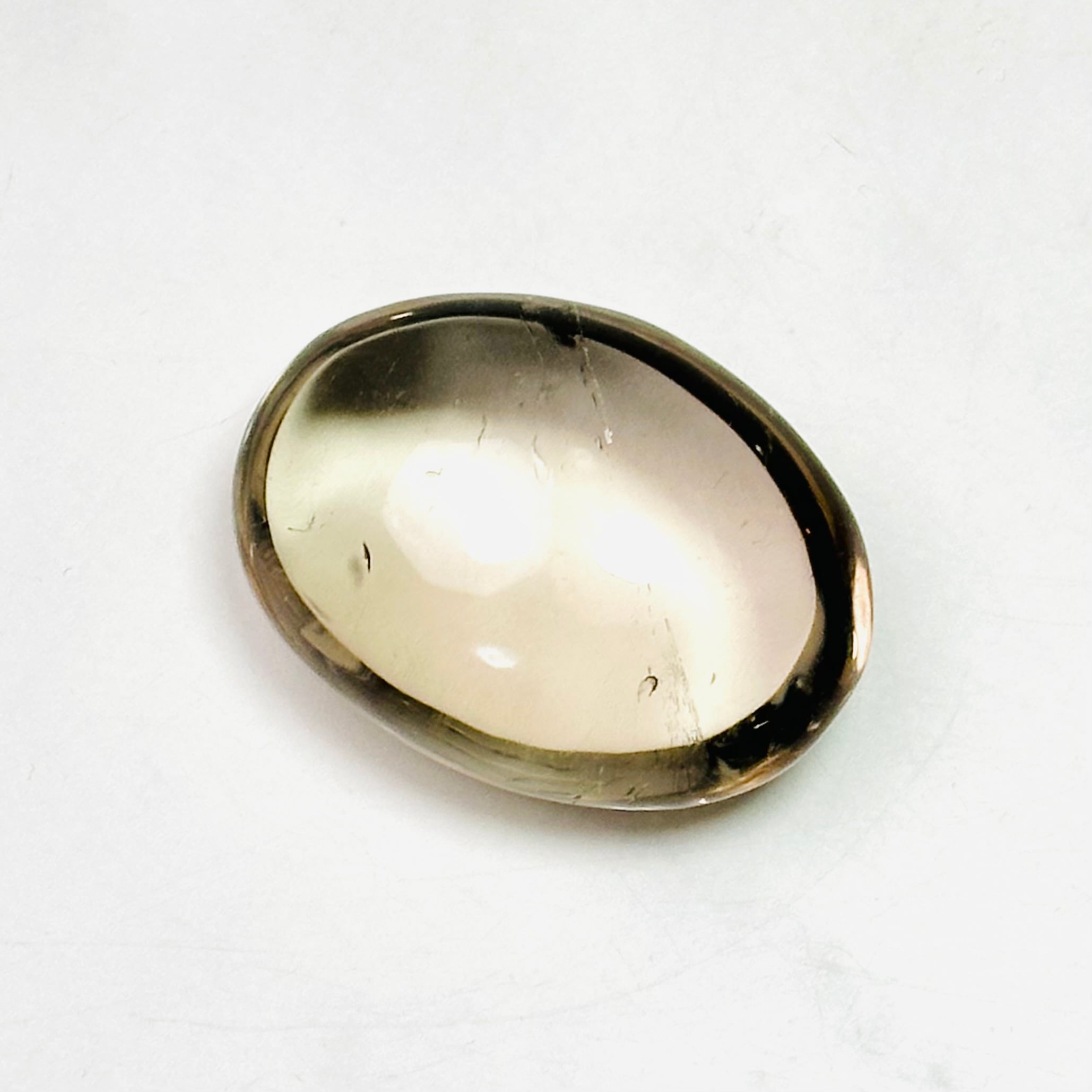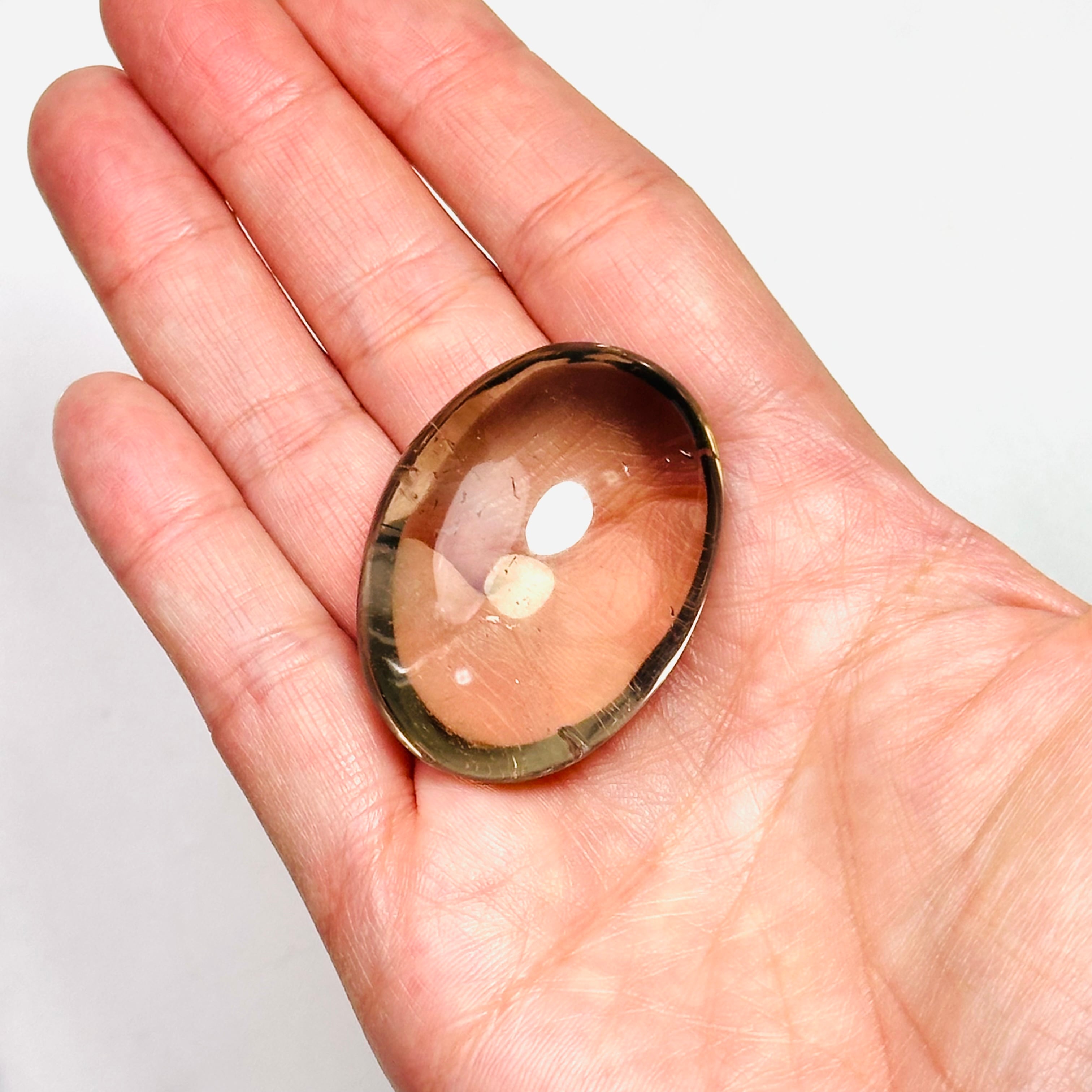 透き通ったクォーツと上品で艶やかな色合いが綺麗なスモーキークォーツパームストーン。程よいぷっくり感で心地よい触り心地。手のひらによく馴染みます。