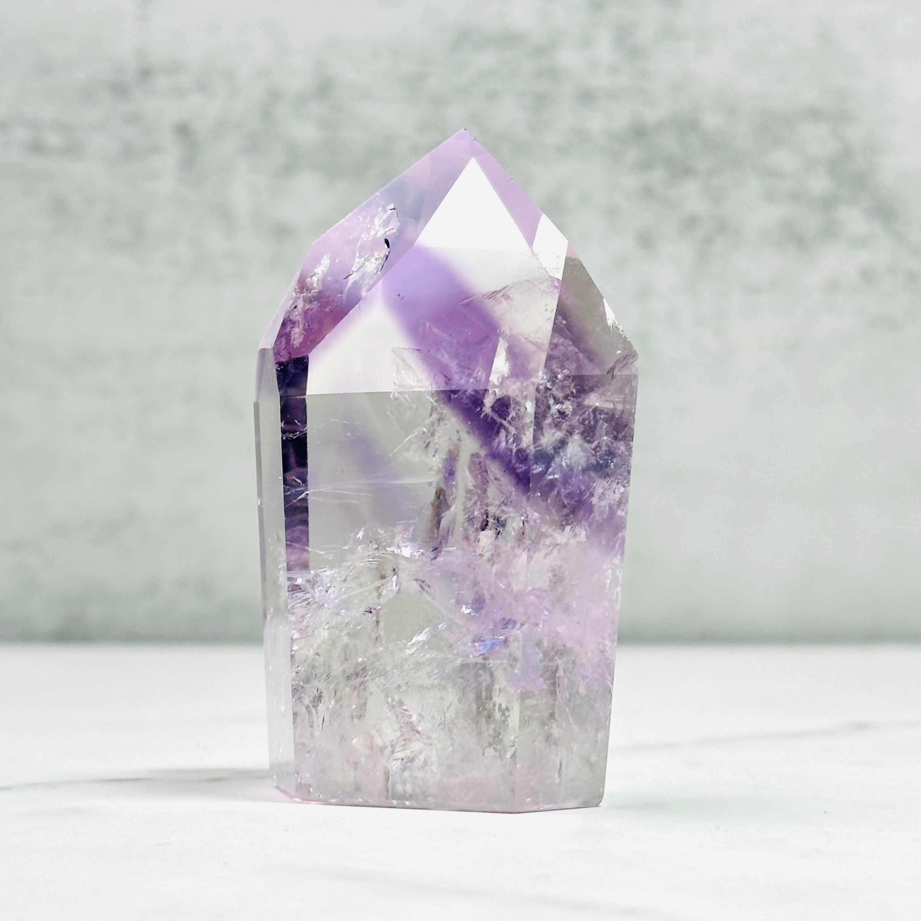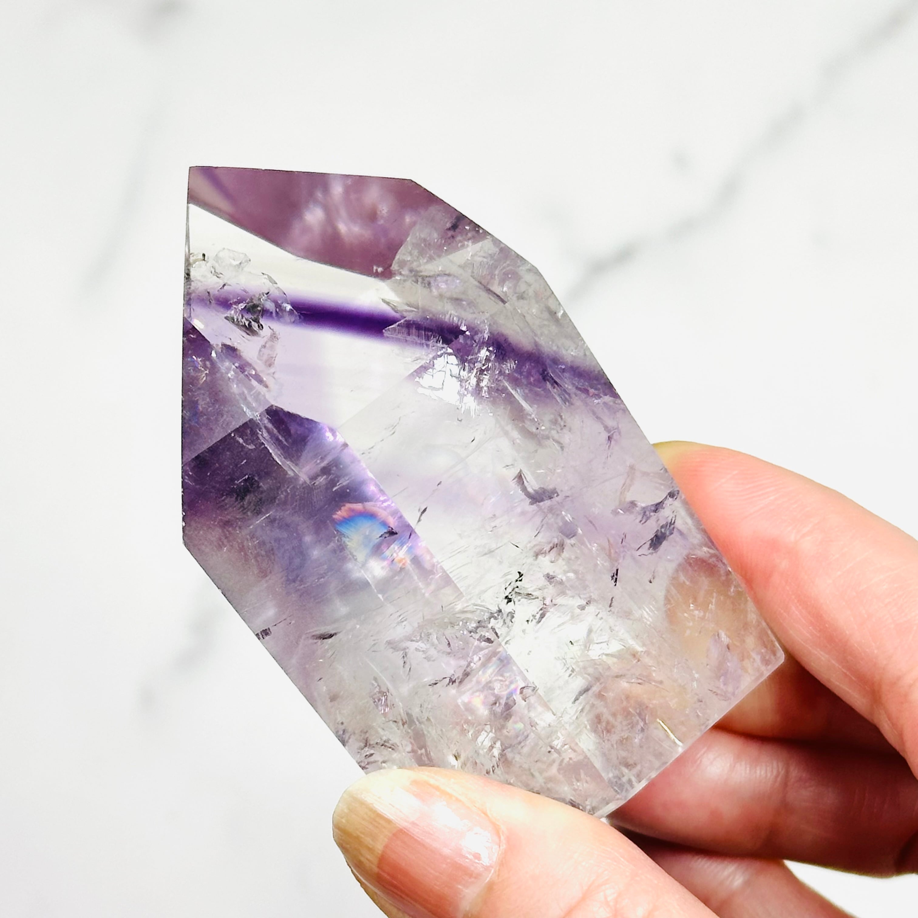地球からの贈り物、美しいアメジストが届きました。透き通ったクォーツは凛として、表めには自然の艶照りが光を柔らかく反射します。茶色い内包物はゲーサイトでしょうか、神秘的で自然の産物であることを証明しています。本格的な冬の訪れを感じる今日この頃。アメジストがより一層美しく輝き愛おしくなる季節がやってきます。