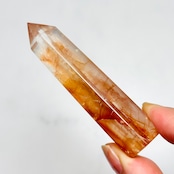 水晶にレピドクロサイトやヘマタイトが内包されて生まれる、希少な天然石。情熱や活力を象徴し、前向きな気持ちをサポートしてくれるといわれています。火のようなインクルージョンはすべて異なる形で現れ、まさに「自分だけの一点もの」として楽しめる石です。