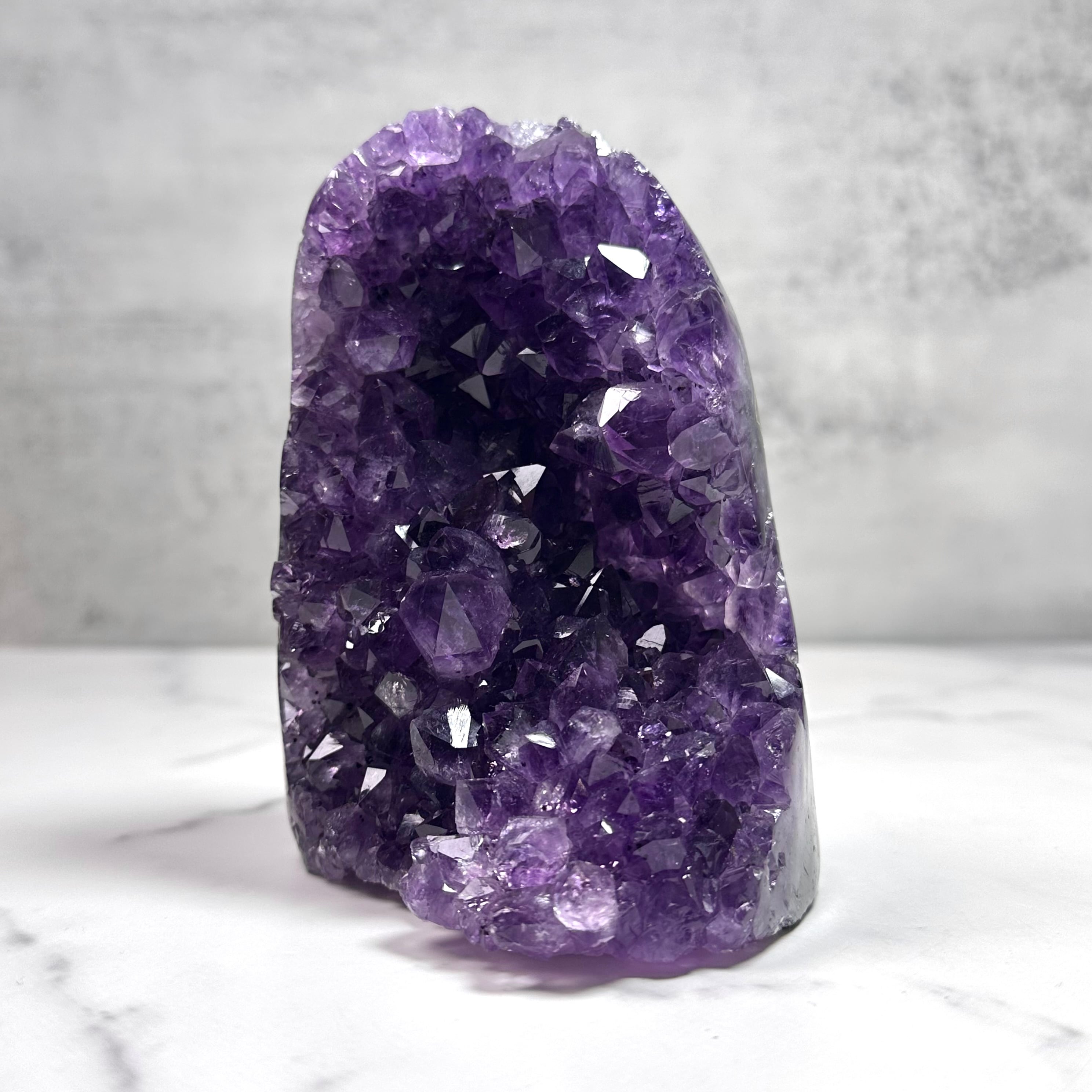 深い紫色が光を受けてキラキラと美しく輝くウルグアイ産のアメジストドーム。しっかりとしたボリュームがあり、家の顔である玄関に飾るのにふさわしい威厳のあるドームです。富裕層の方々や五つ星ホテルの門となる場所に置かれていることを見たことがある方も多いのではないでしょうか。礼拝堂を象徴するドームは、良い運気を集め、事業運や金運を向上させるといわれています。