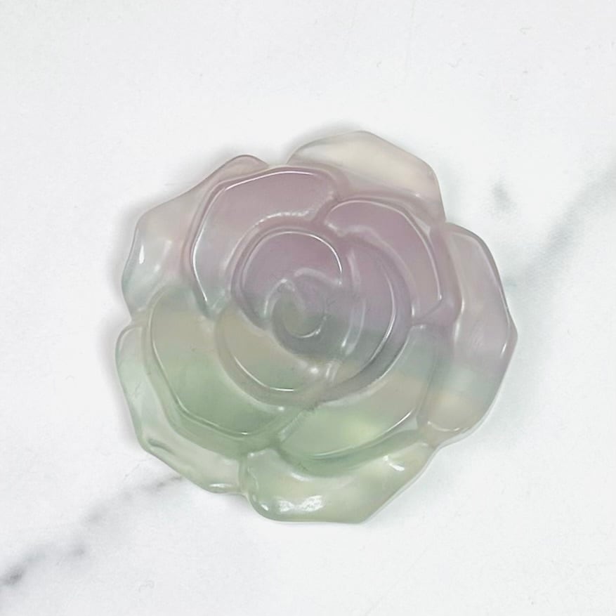 パステルカラーの柔和な色合いが可愛いイットリウムフローライトローズ。光を受けて淡く優しく輝きます。目に入るたびに癒しを与えてくれるナチュラルで大人可愛いインテリアストーンです。