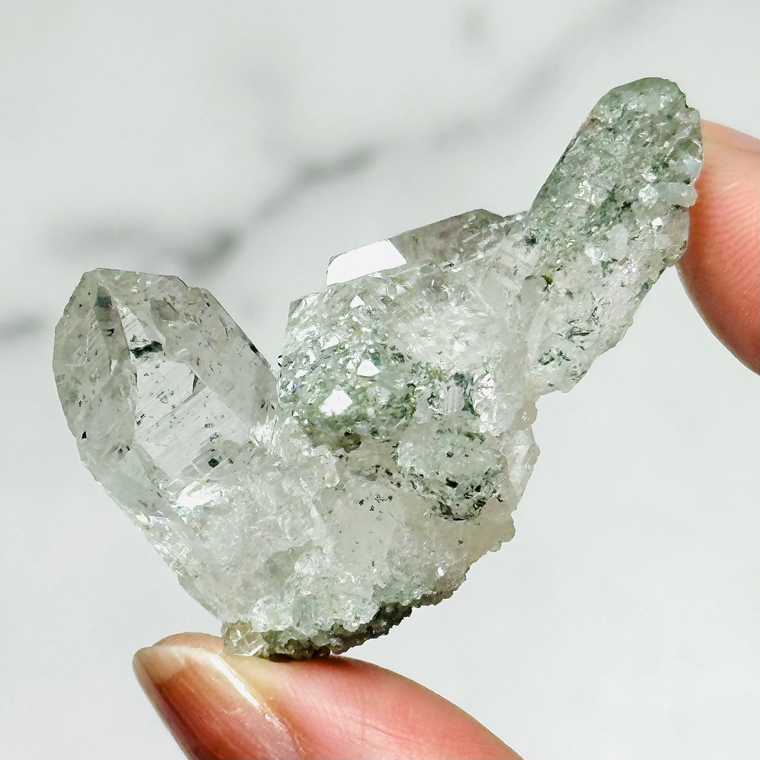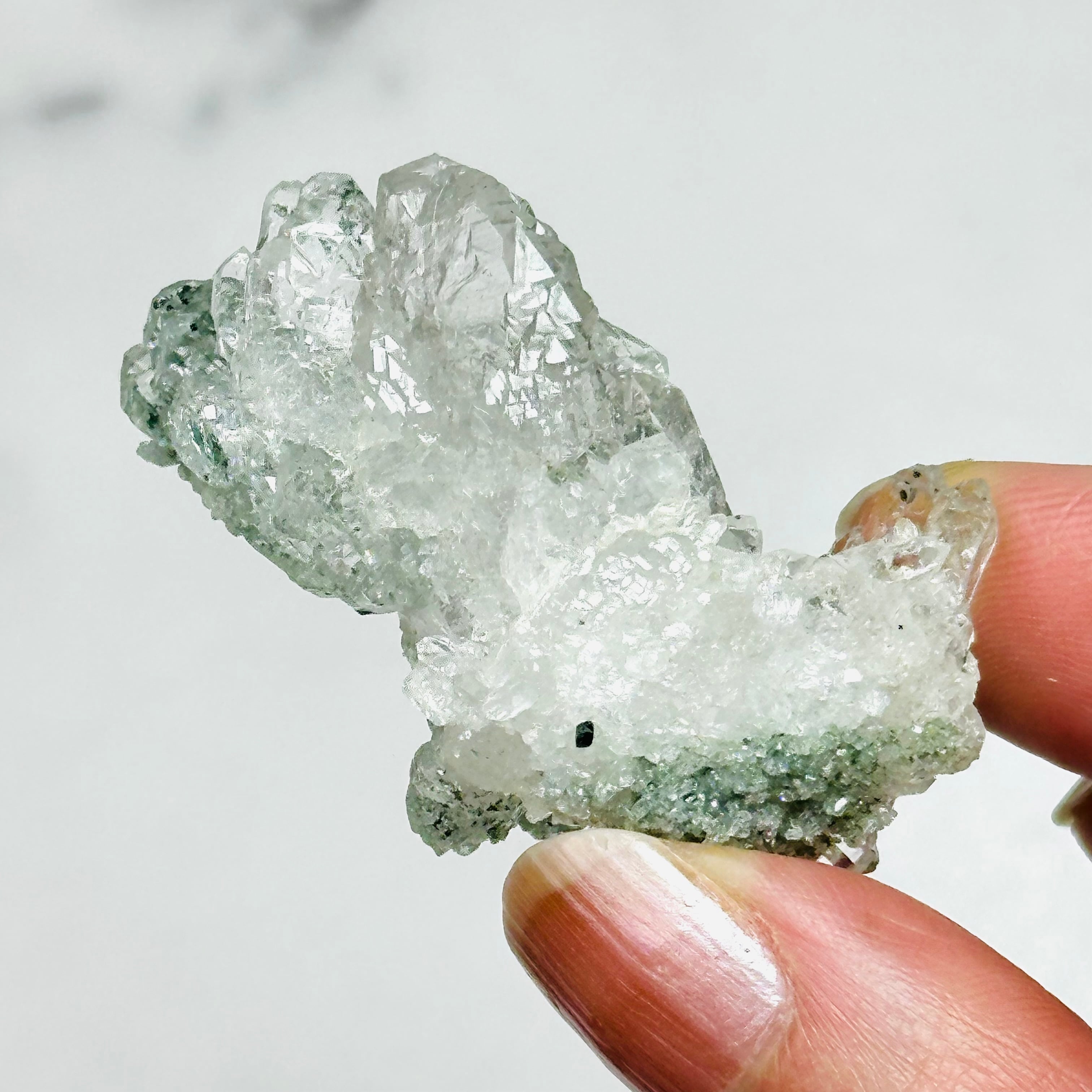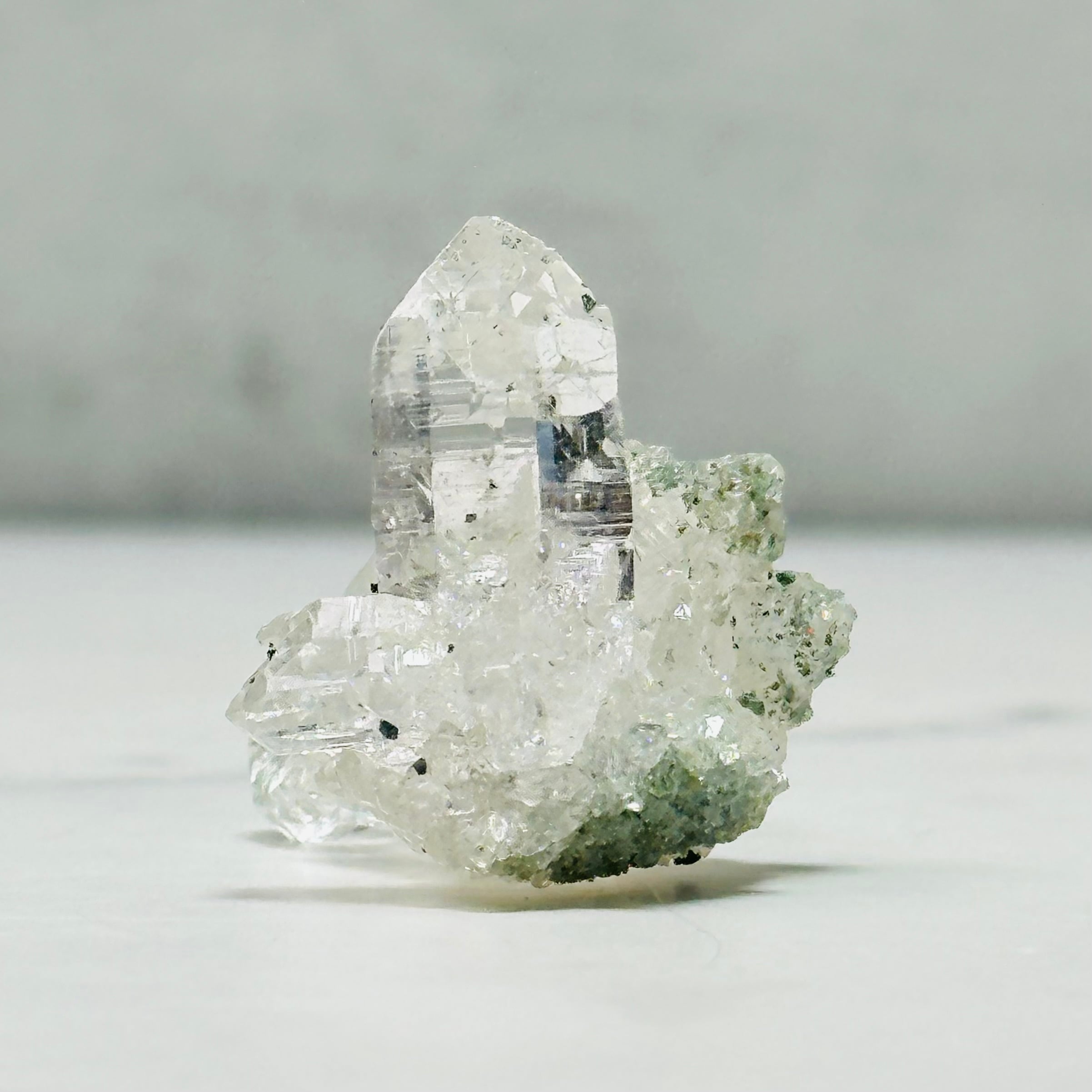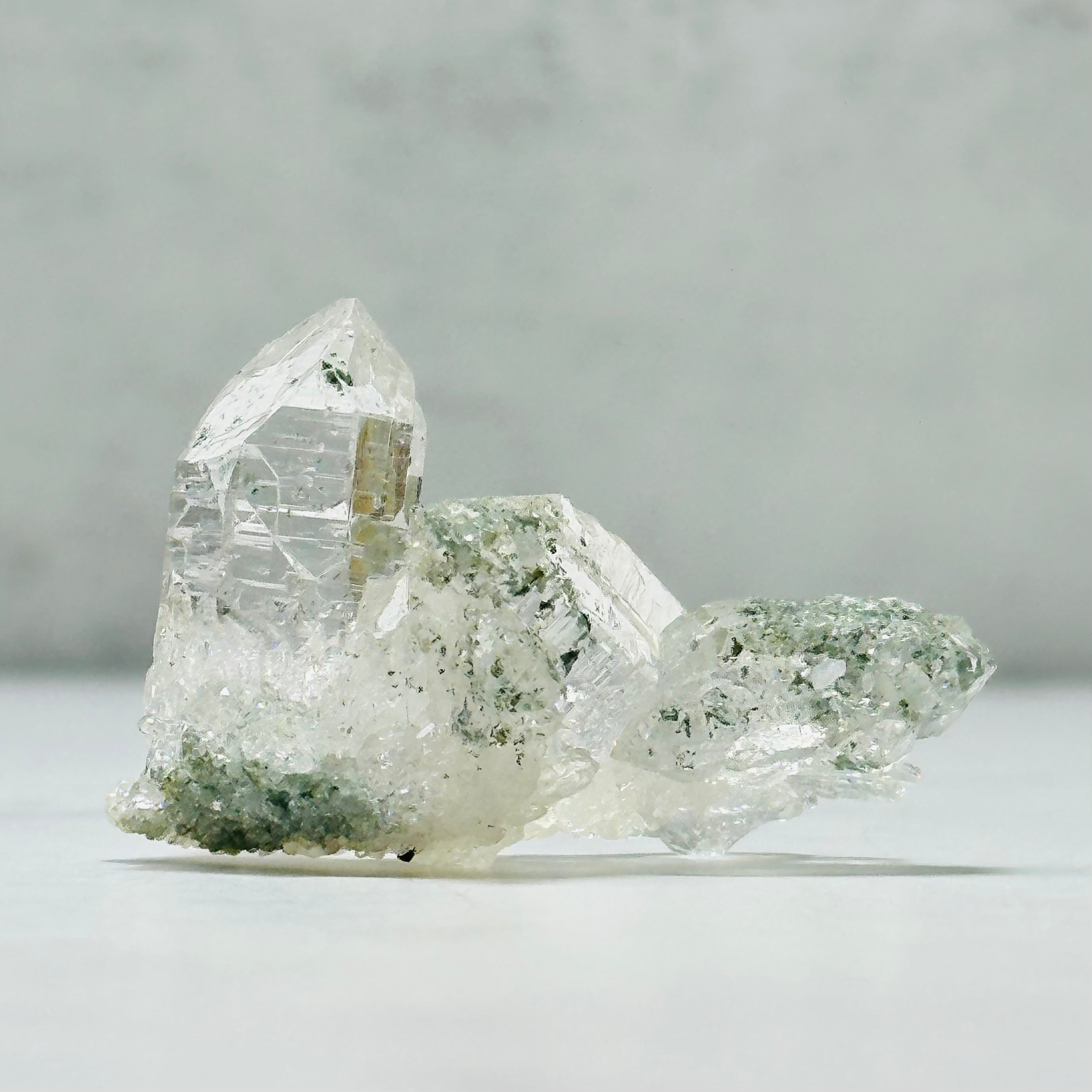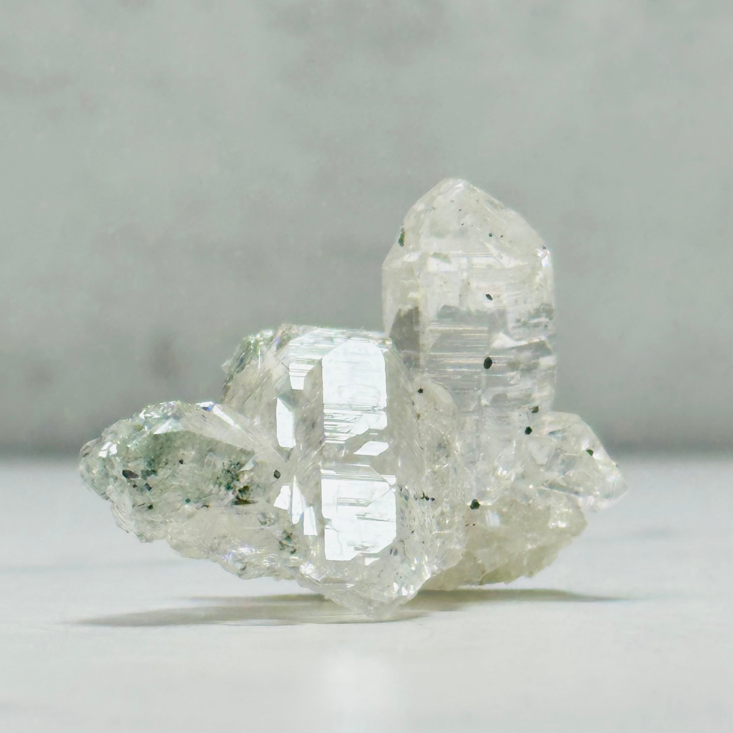 インド北部マニハール産のヒマラヤ水晶。小さめのクラスターですが、自然の造形による存在感を感じられます。透明感と艶照りが良いアイテムで、ヒマラヤ水晶ならではの美しさを堪能できます。コレクションアイテムとしてもおすすめです。