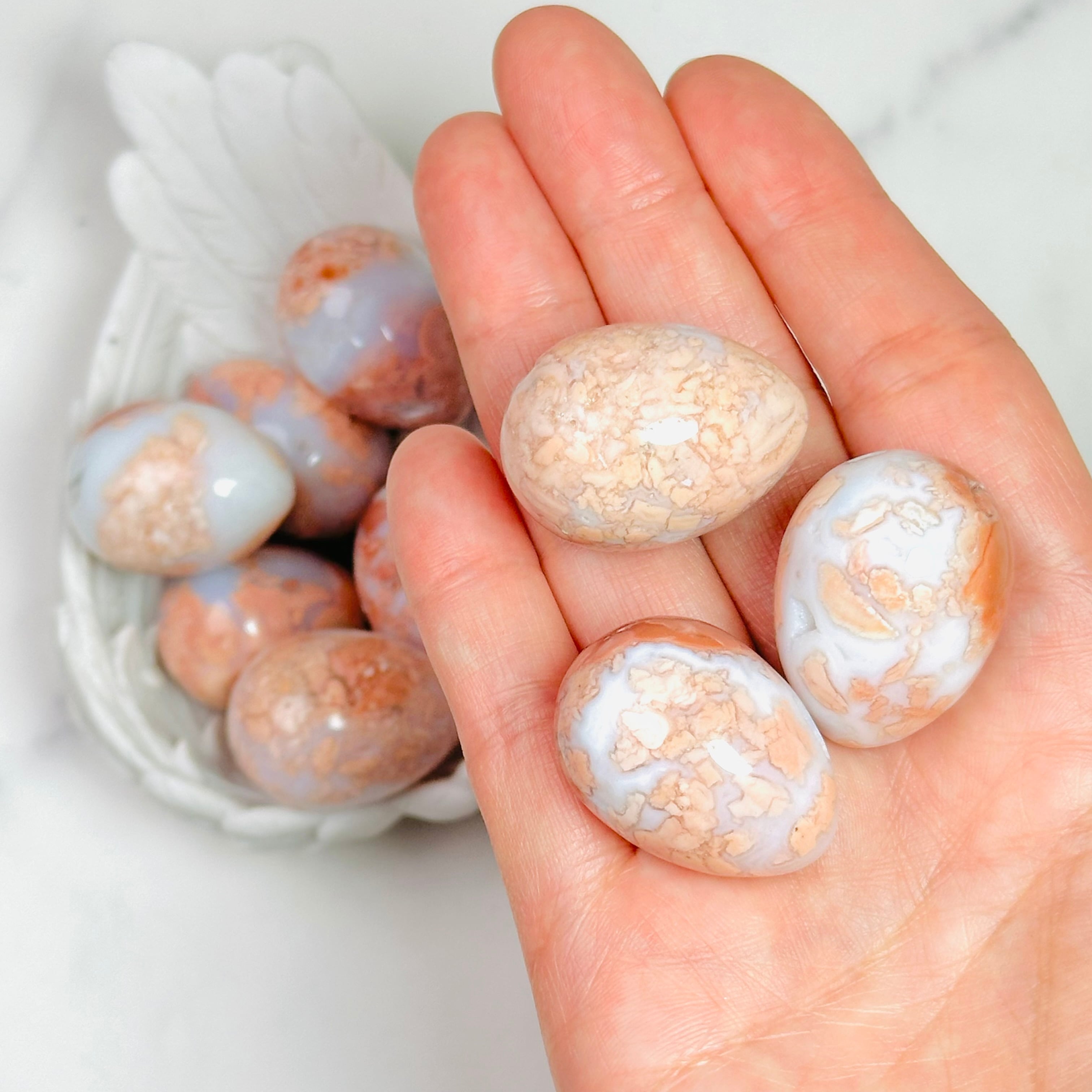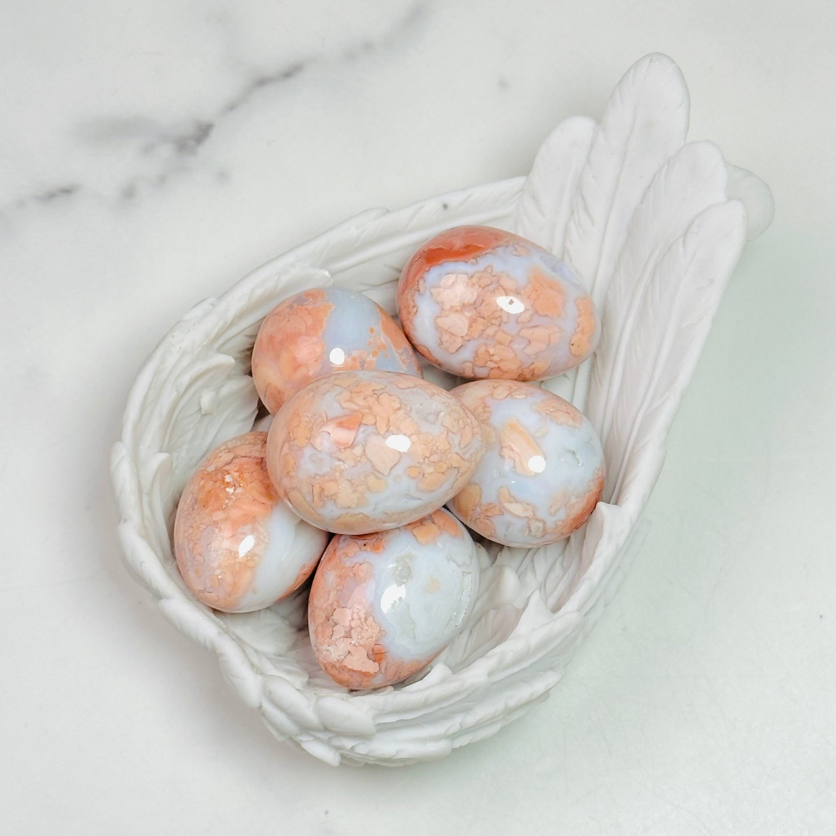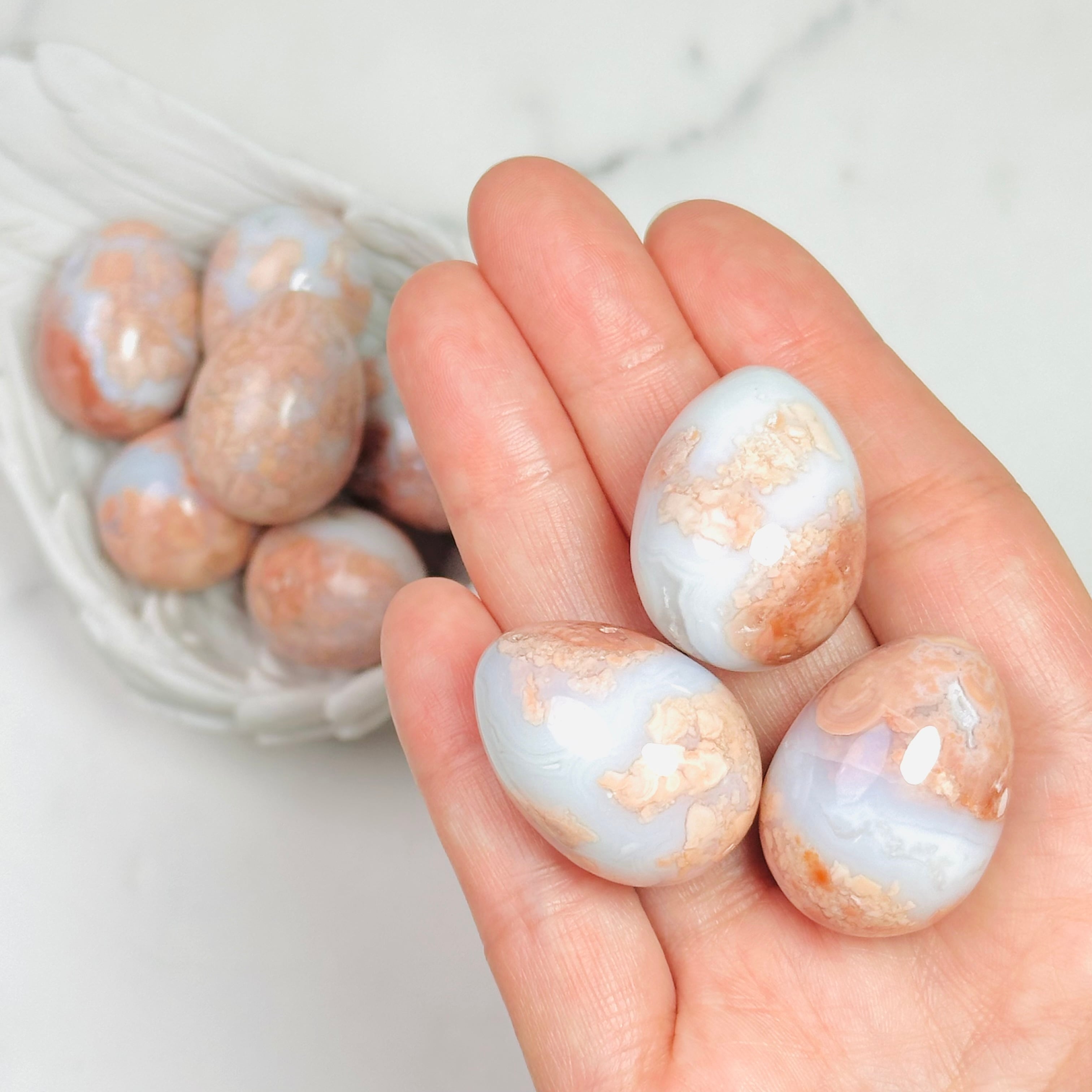 優しいピンクカラーがインテリアを華やかに彩る天然石ピンクアゲートのミニエッグ。ミルキーな白とピンクの可愛い色合いで、玄関やリビングに置けば毎日の暮らしにほっとする癒しを与えてくれます。大切な方へのギフトにもおすすめです。