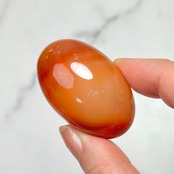 鮮やかなオレンジから赤のグラデーションが美しいカーネリアンのタンブル。持ち歩きやすいサイズ感なので、お守りストーンとしてバッグやポーチに入れて持ち運ぶのもおすすめです。
