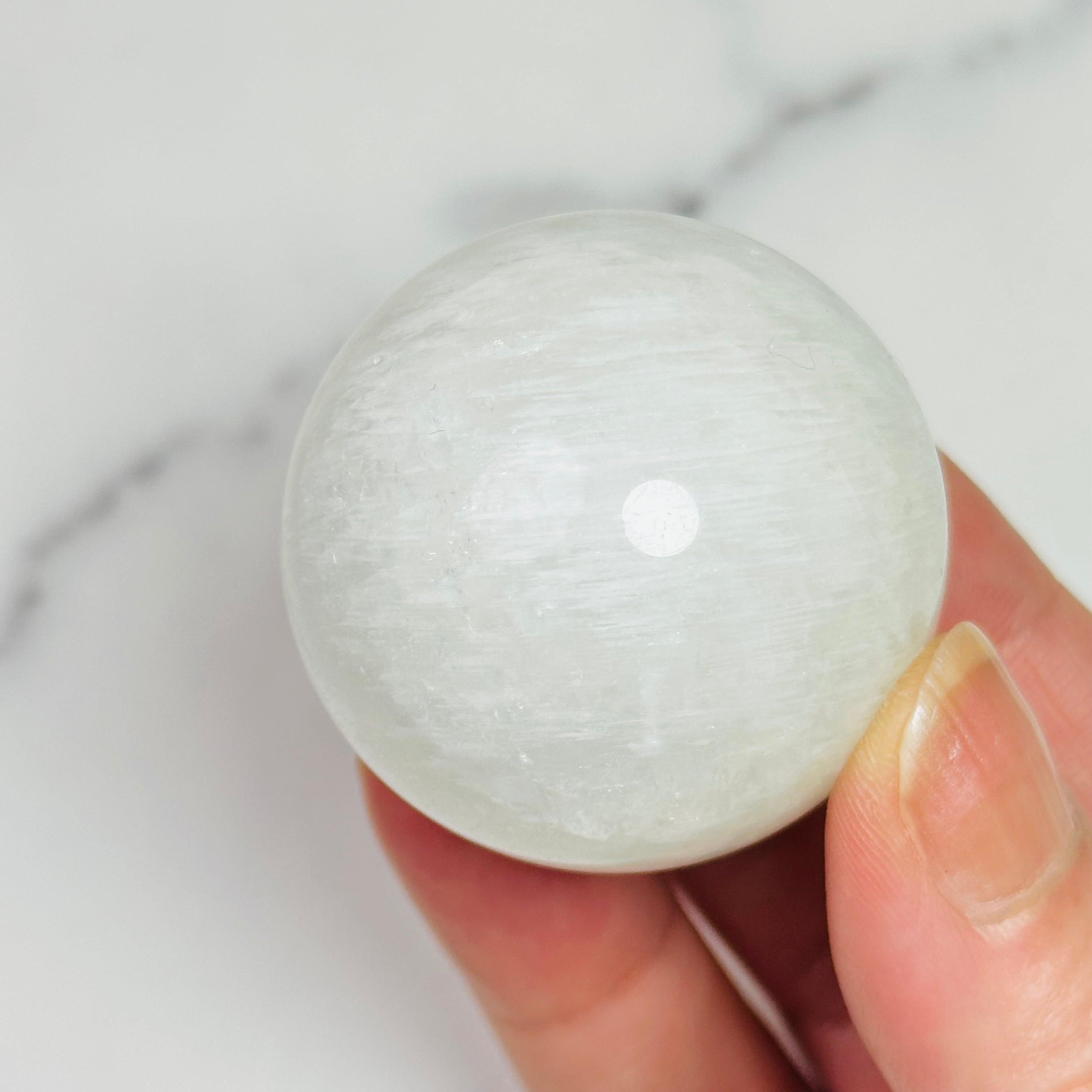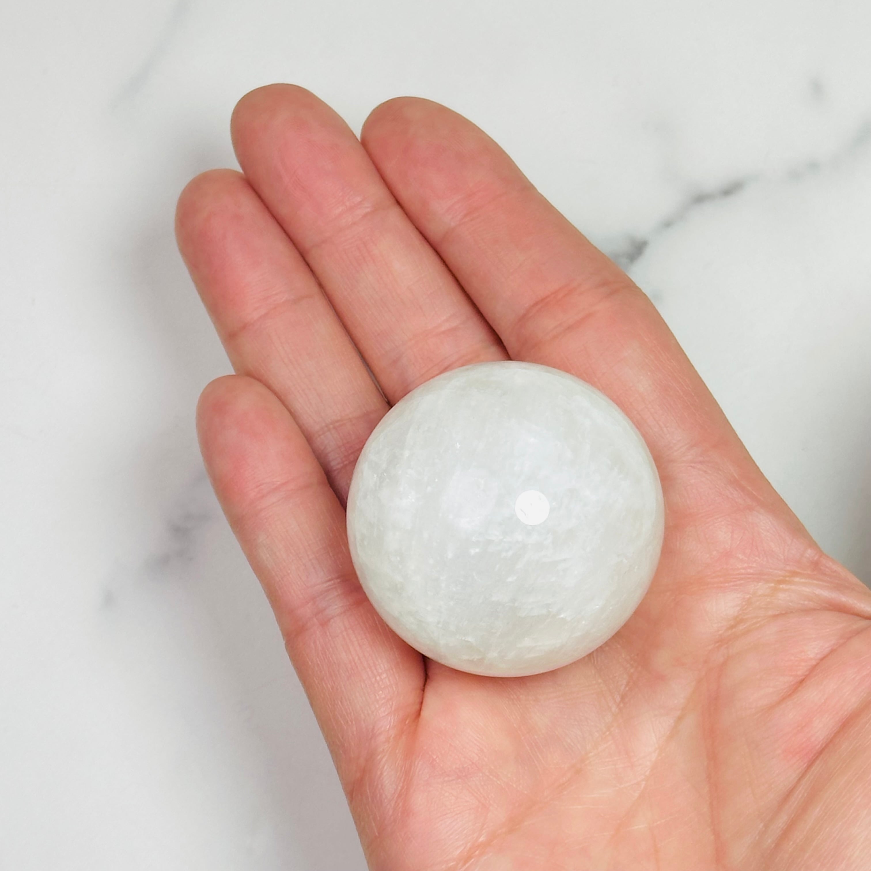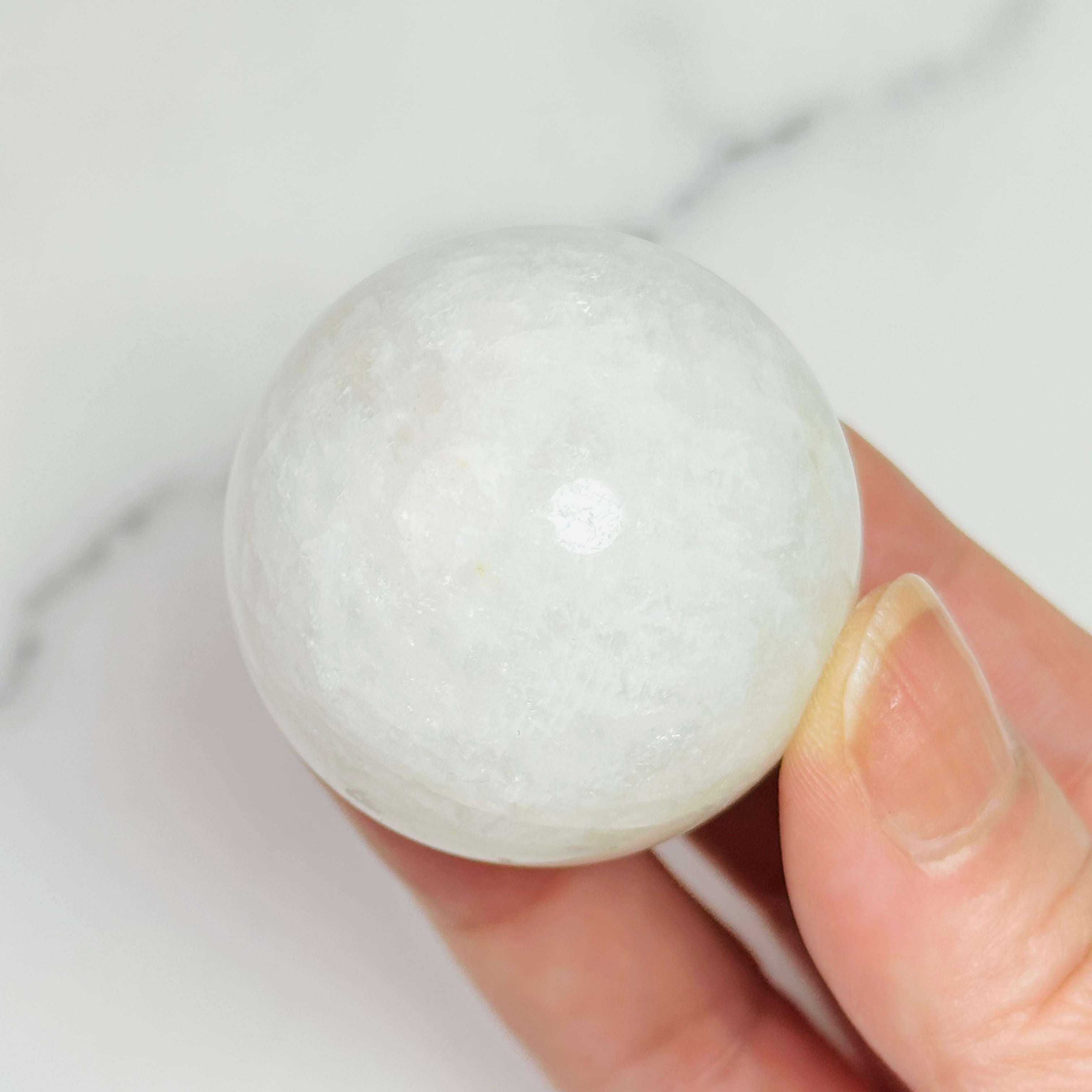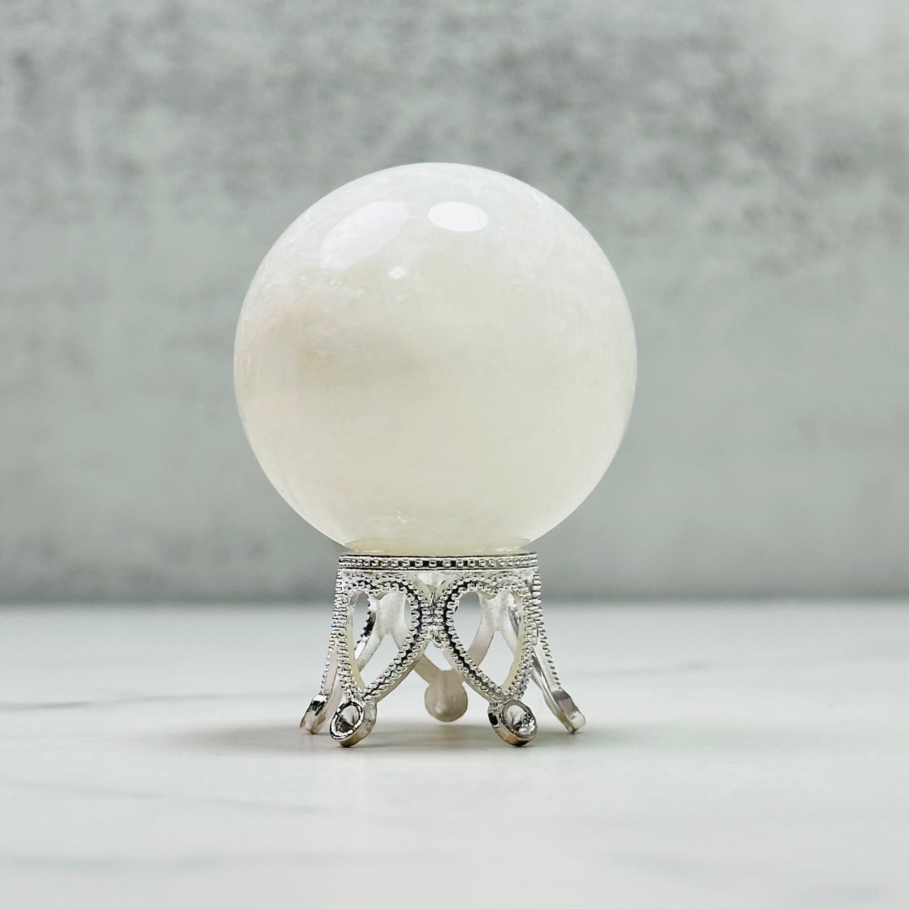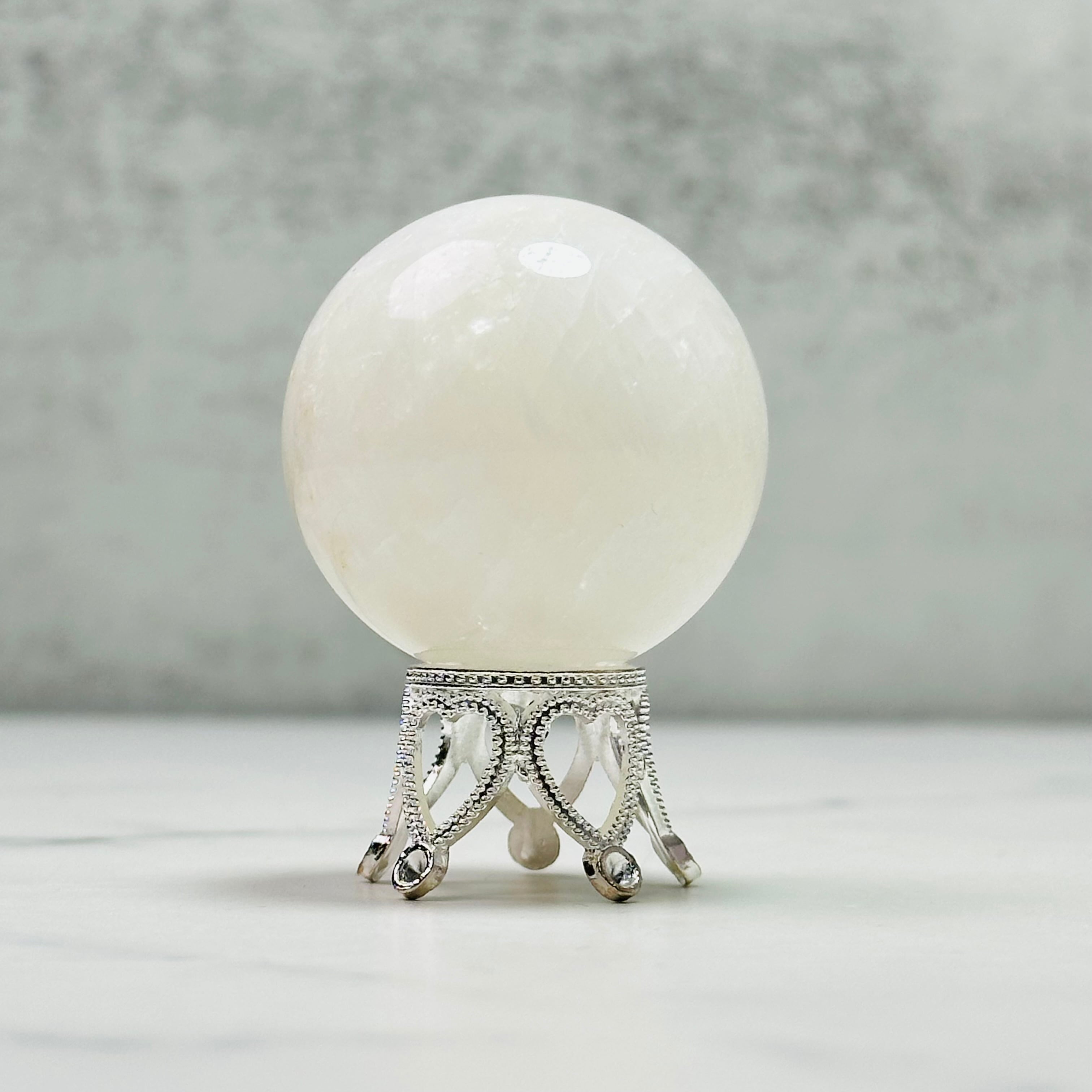 乳白色の優しい輝きと、光の角度によって現れる虹色のシラーが美しいムーンストーンスフィア。お部屋のインテリアとして飾るだけで空間を柔らかく照らし、幻想的な雰囲気を演出します。丸みのある形は柔らかで優しく、癒しのひとときを与えてくれます。大切な方へのギフトにもおすすめです。