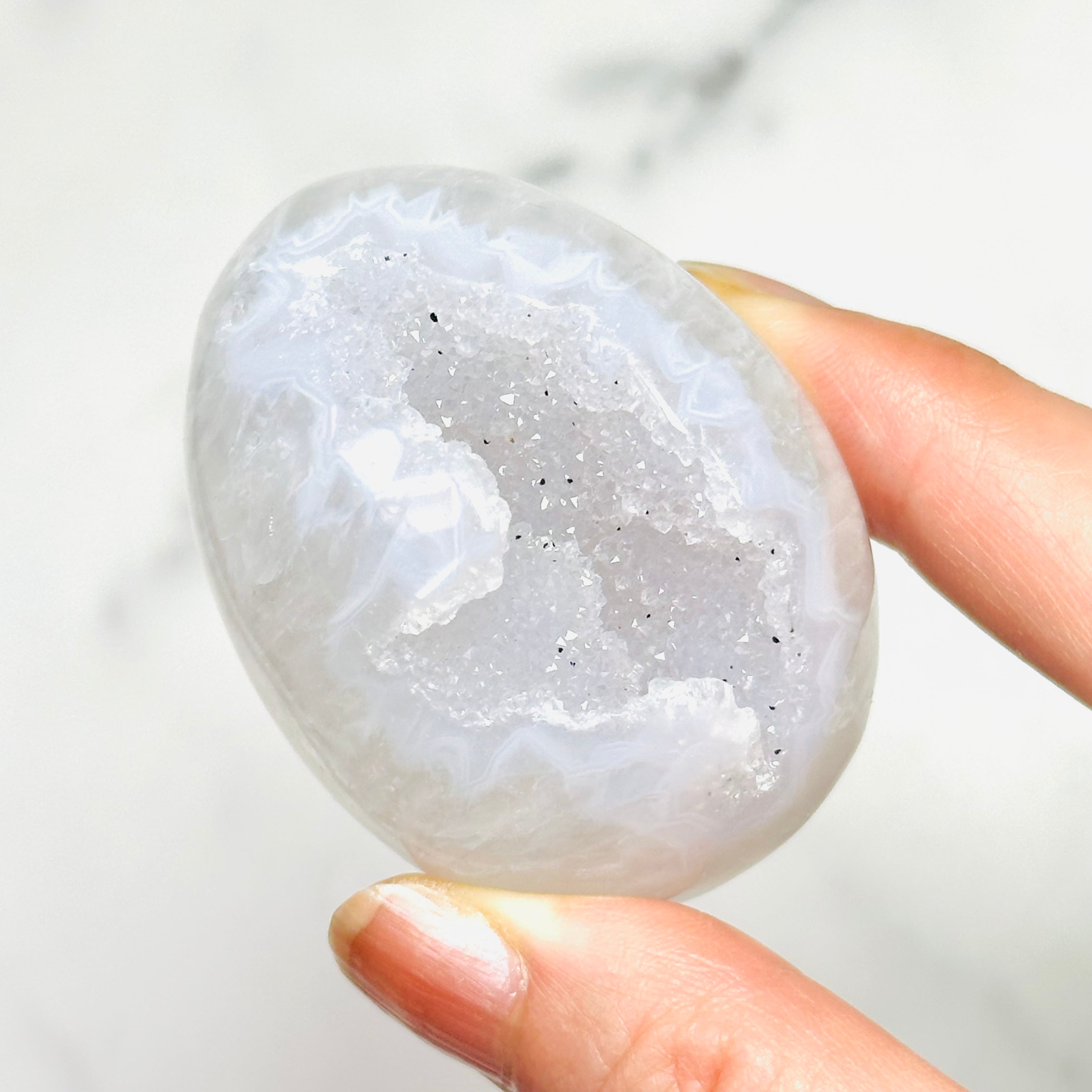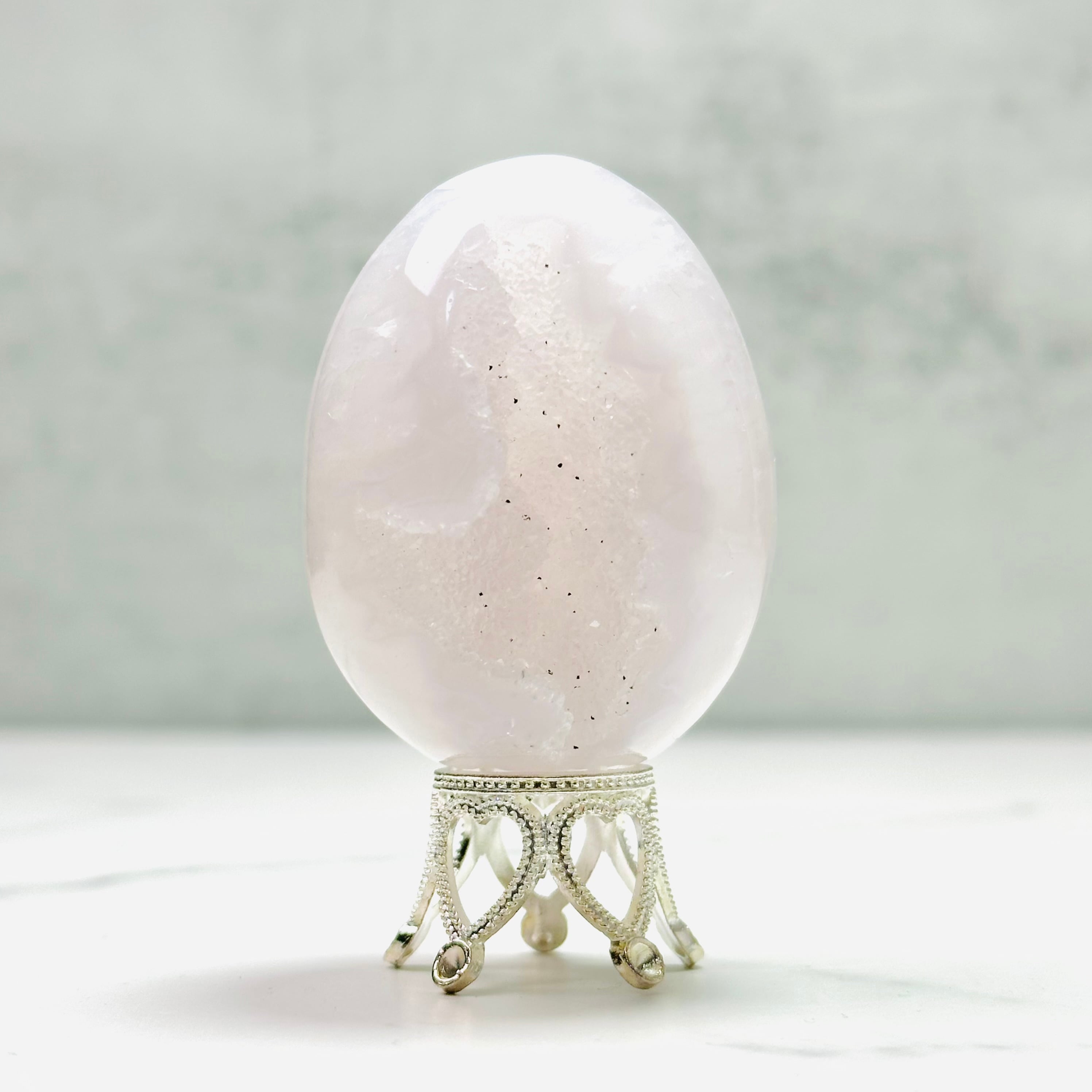 ピュアな色合いと、ドゥルージーの繊細な煌めきが綺麗なドゥルージーアゲートエッグ。