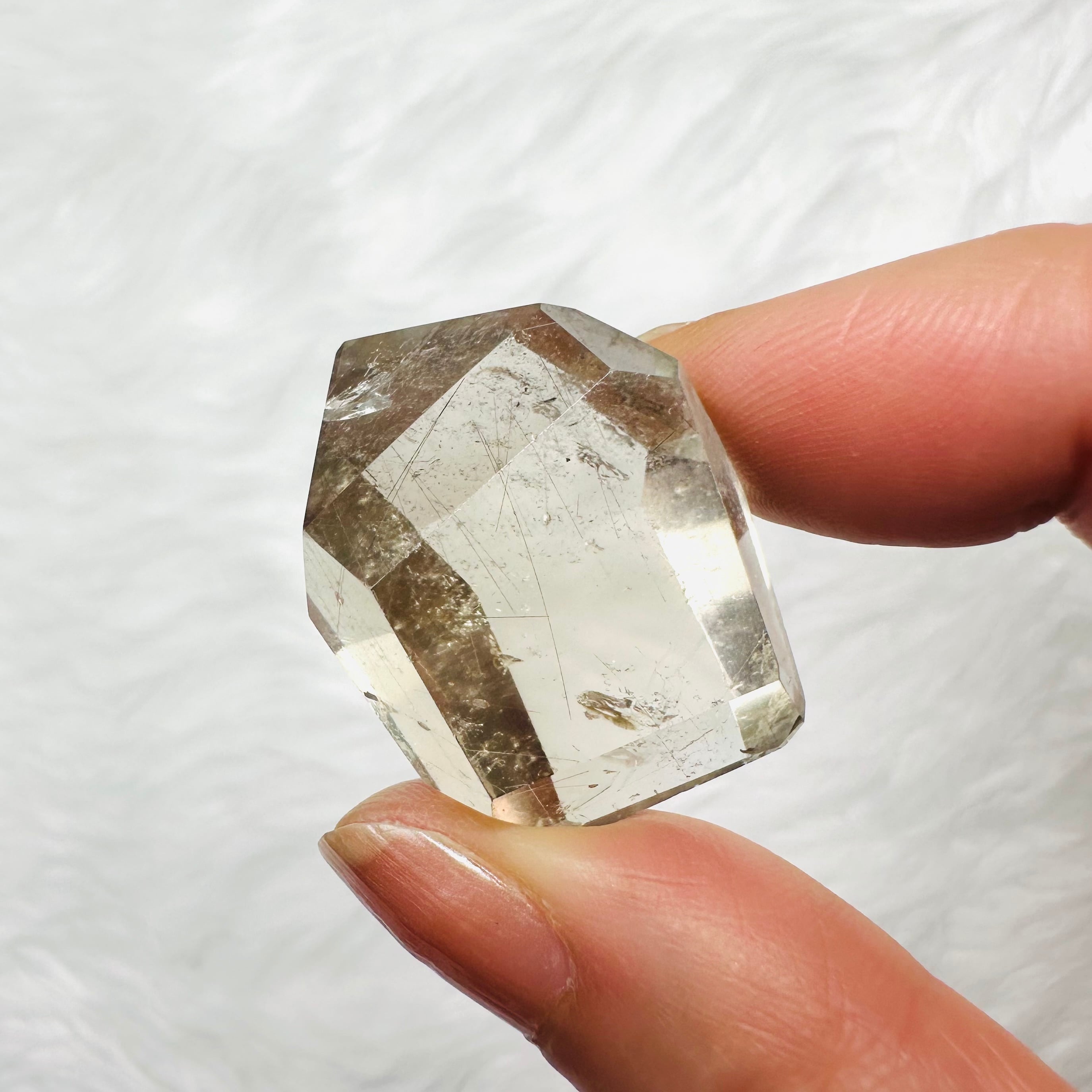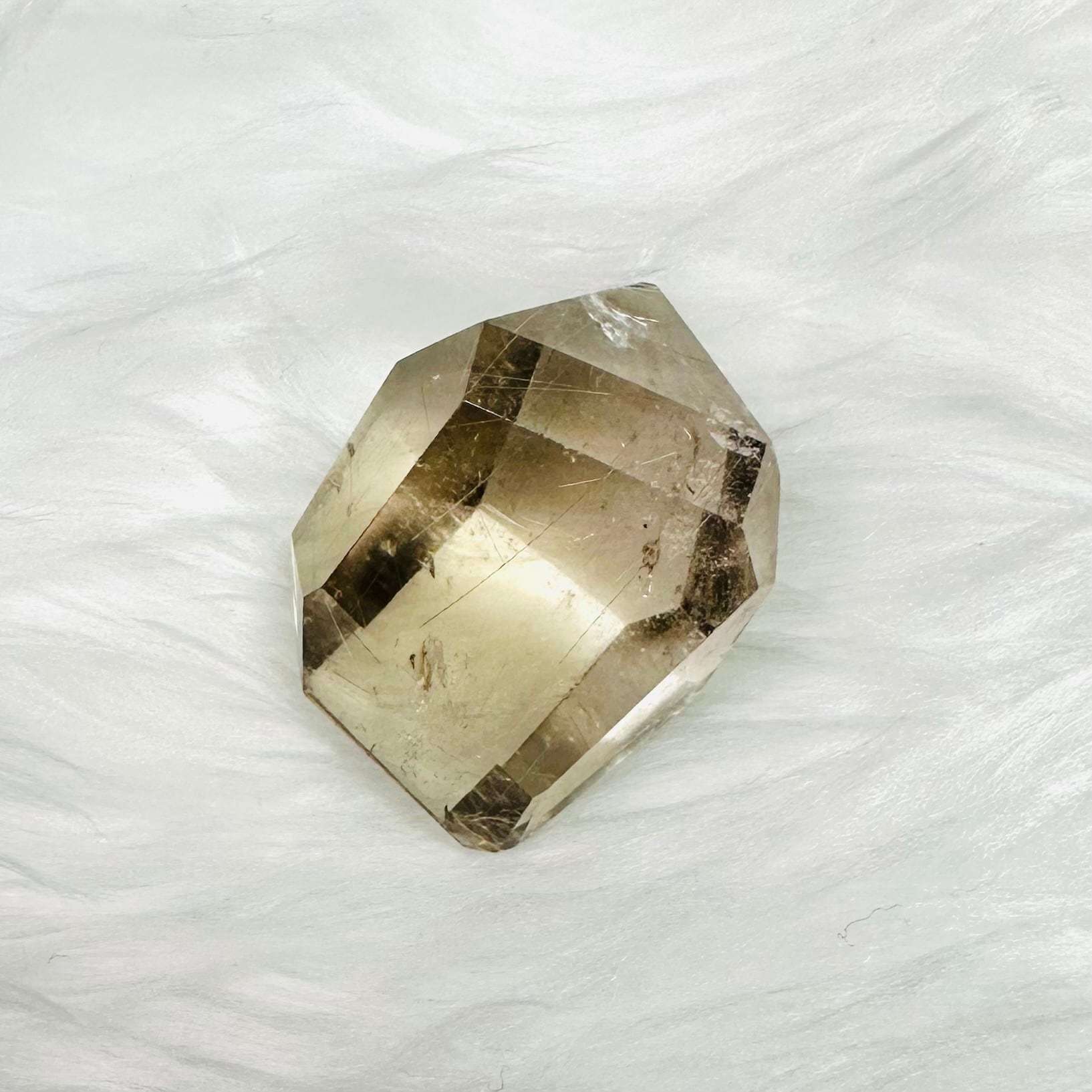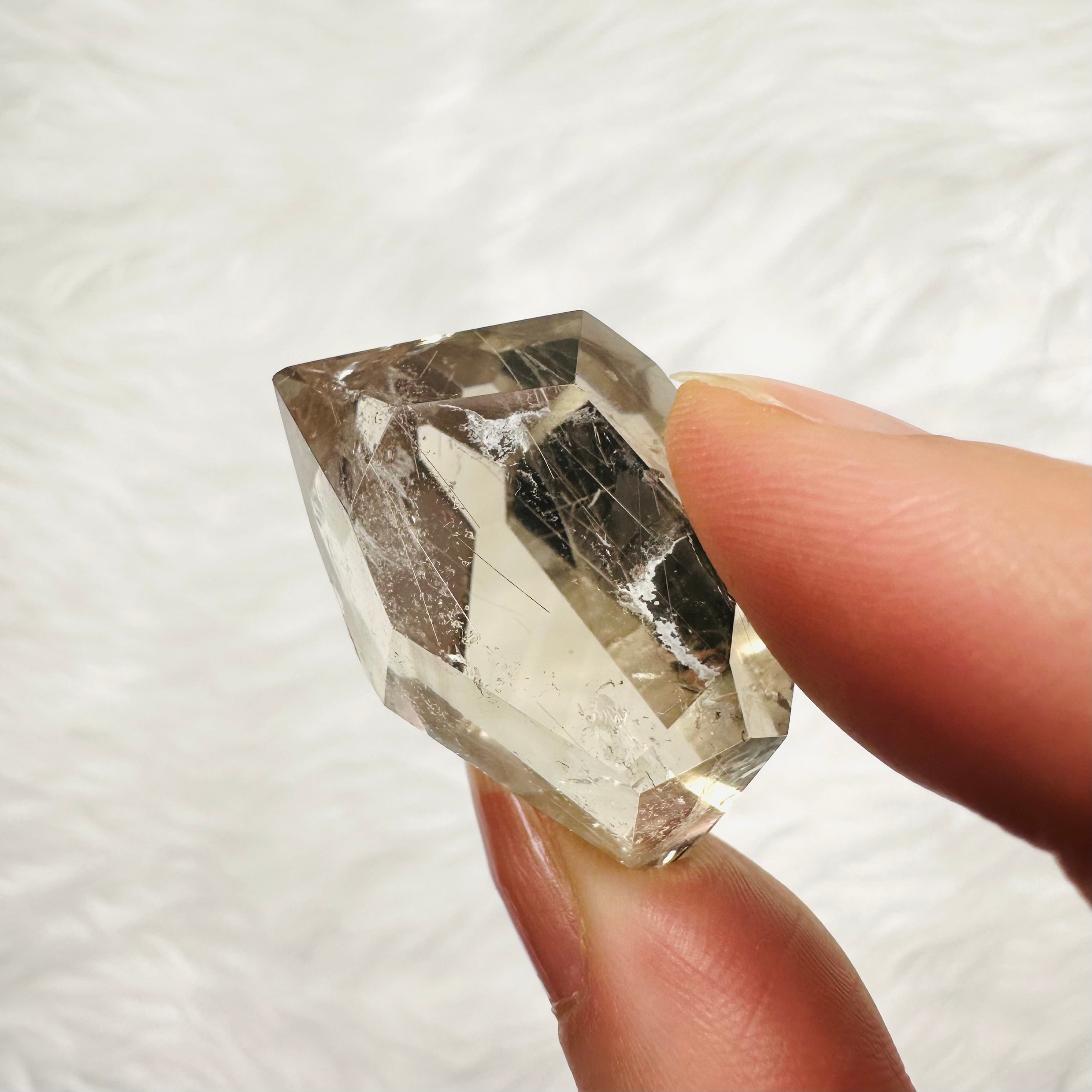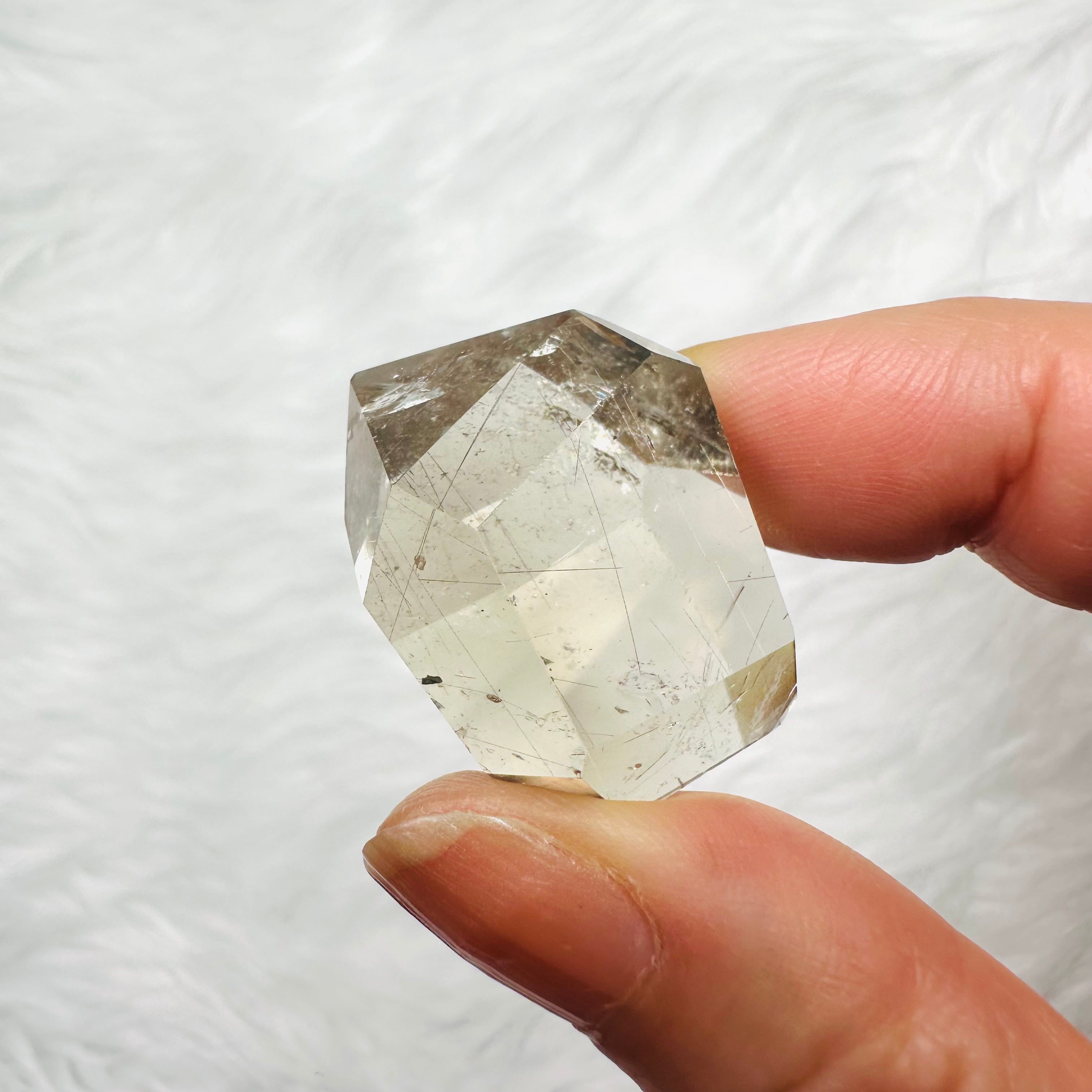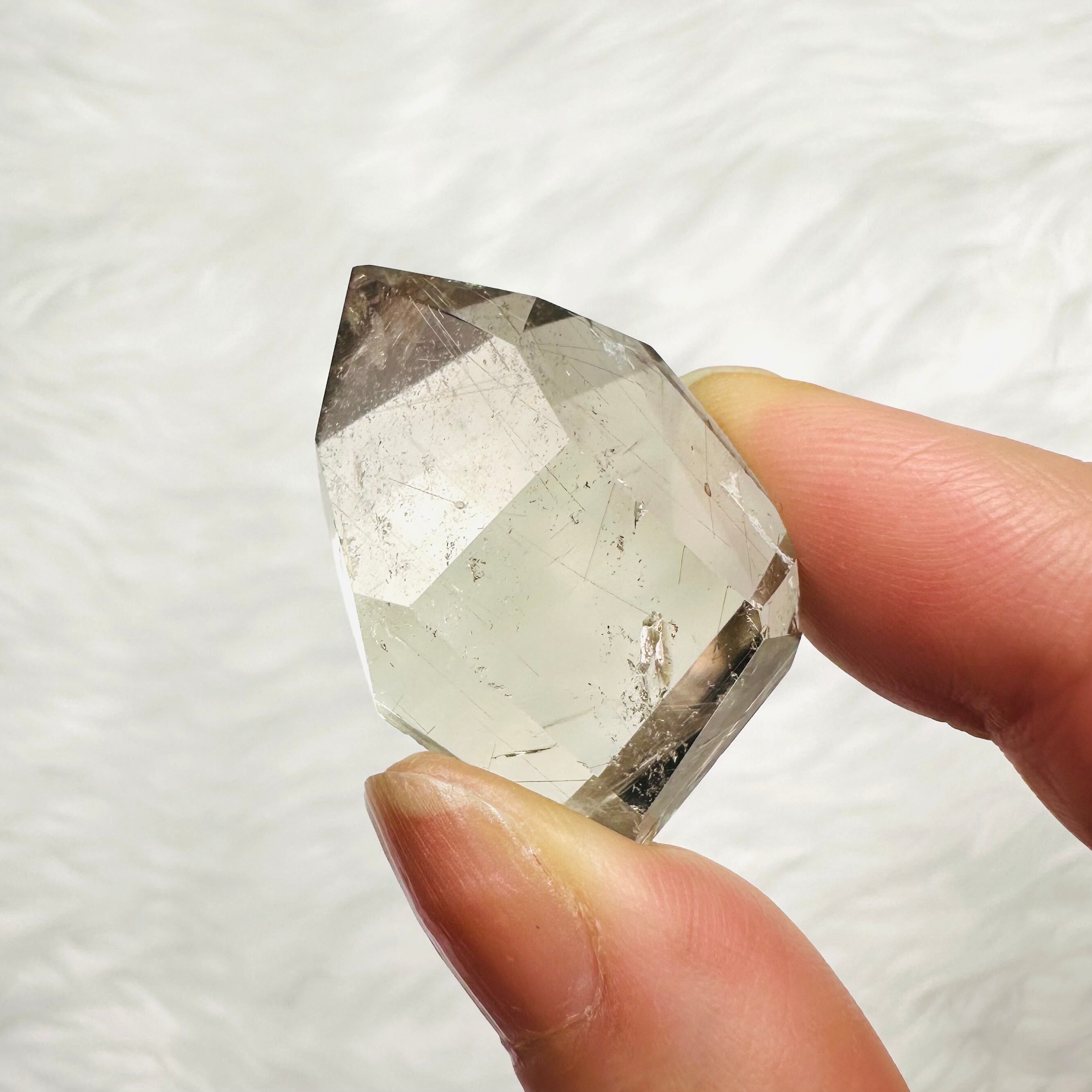 ブラジル産サゲニティッククォーツ。水晶の内部に、繊細な針状インクルージョンが広がり、まるで天然のアートのような個性豊かな美しさを楽しめます。光を受けるたびに表情が変わり、見る角度によって奥行きある景色を映し出します。