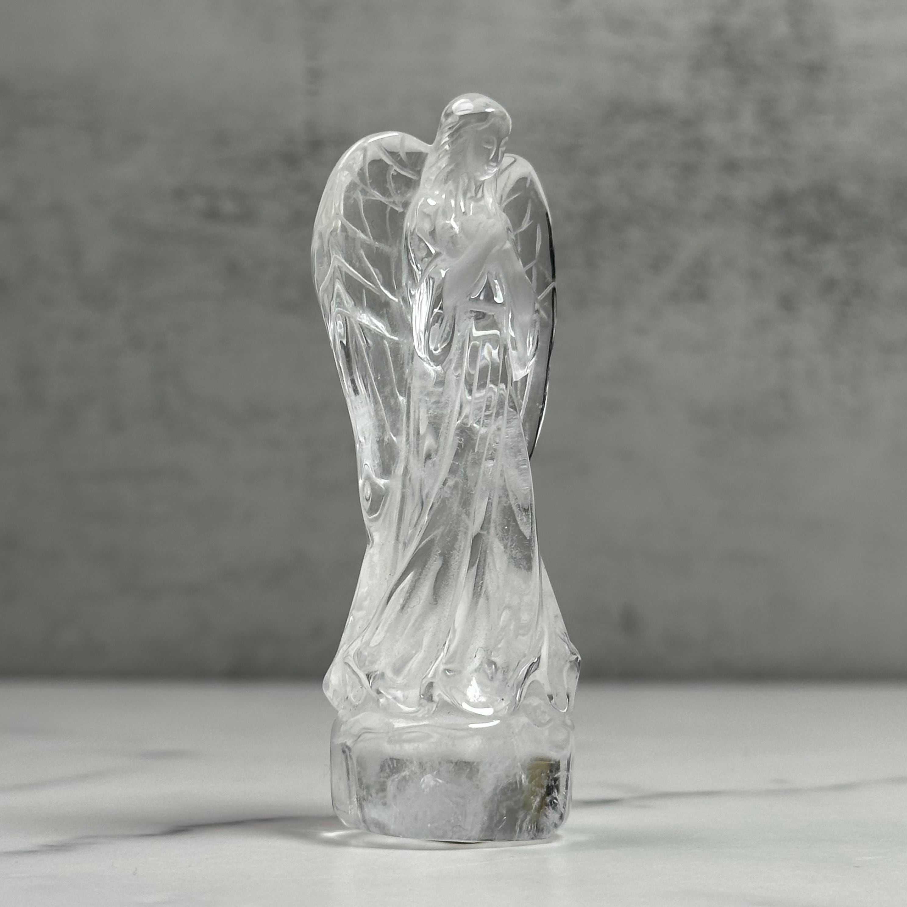 透き通った高品質な水晶を丁寧に彫刻したエンジェル像。清らかな雰囲気で、静かな表情は心を洗い清めてくれるようです。リビングや書斎、祈りのスペースに置けば、穏やかな癒しを感じさせてくれます。