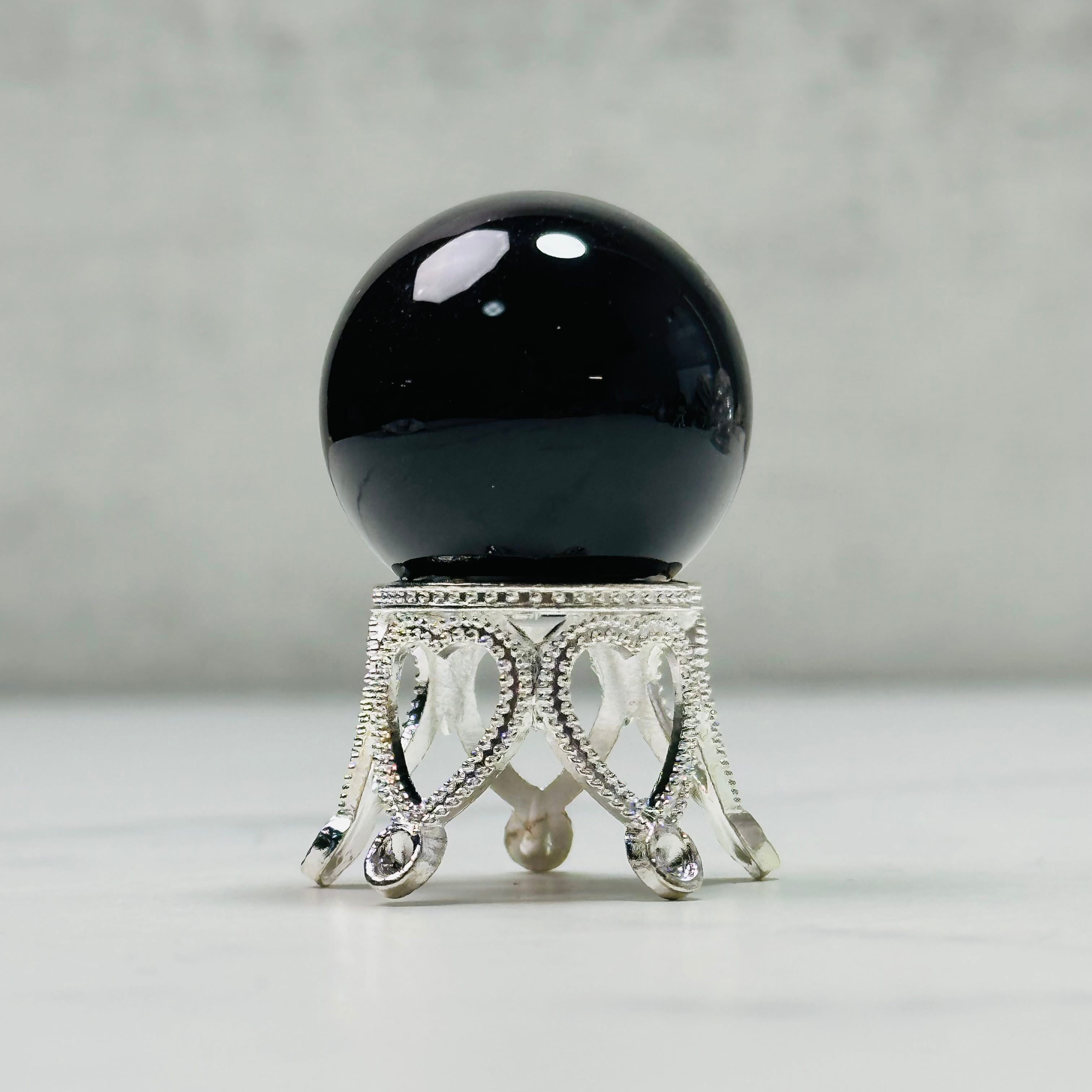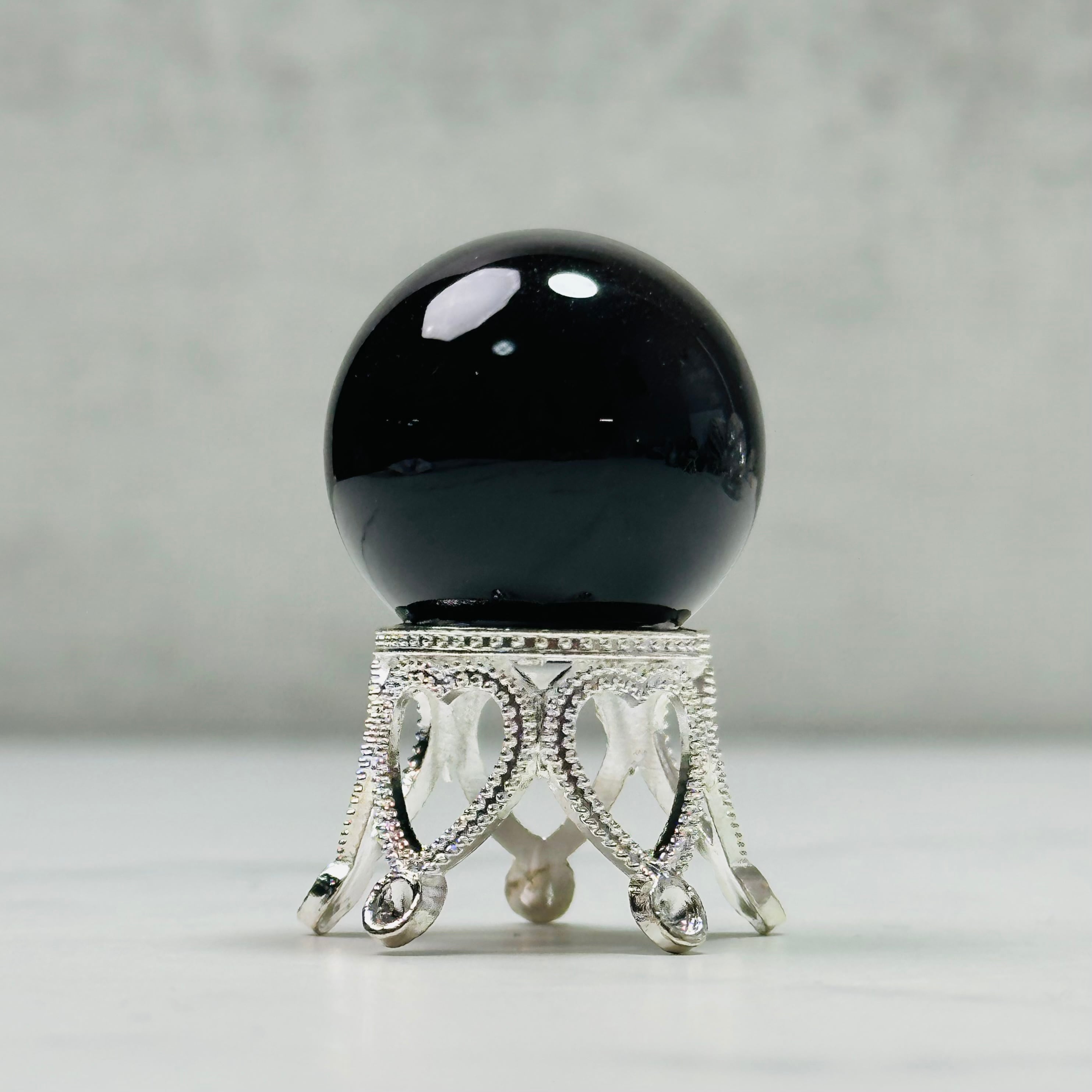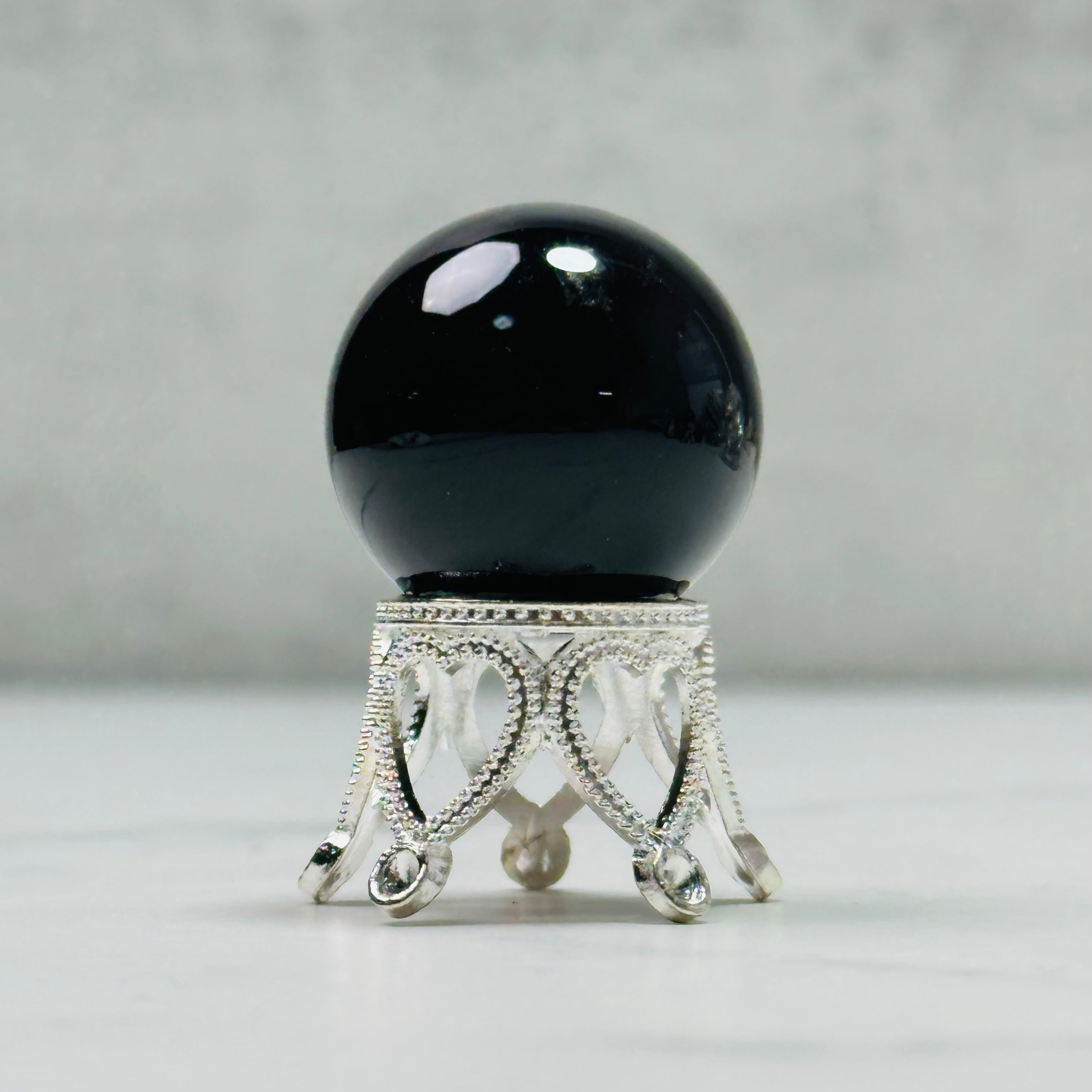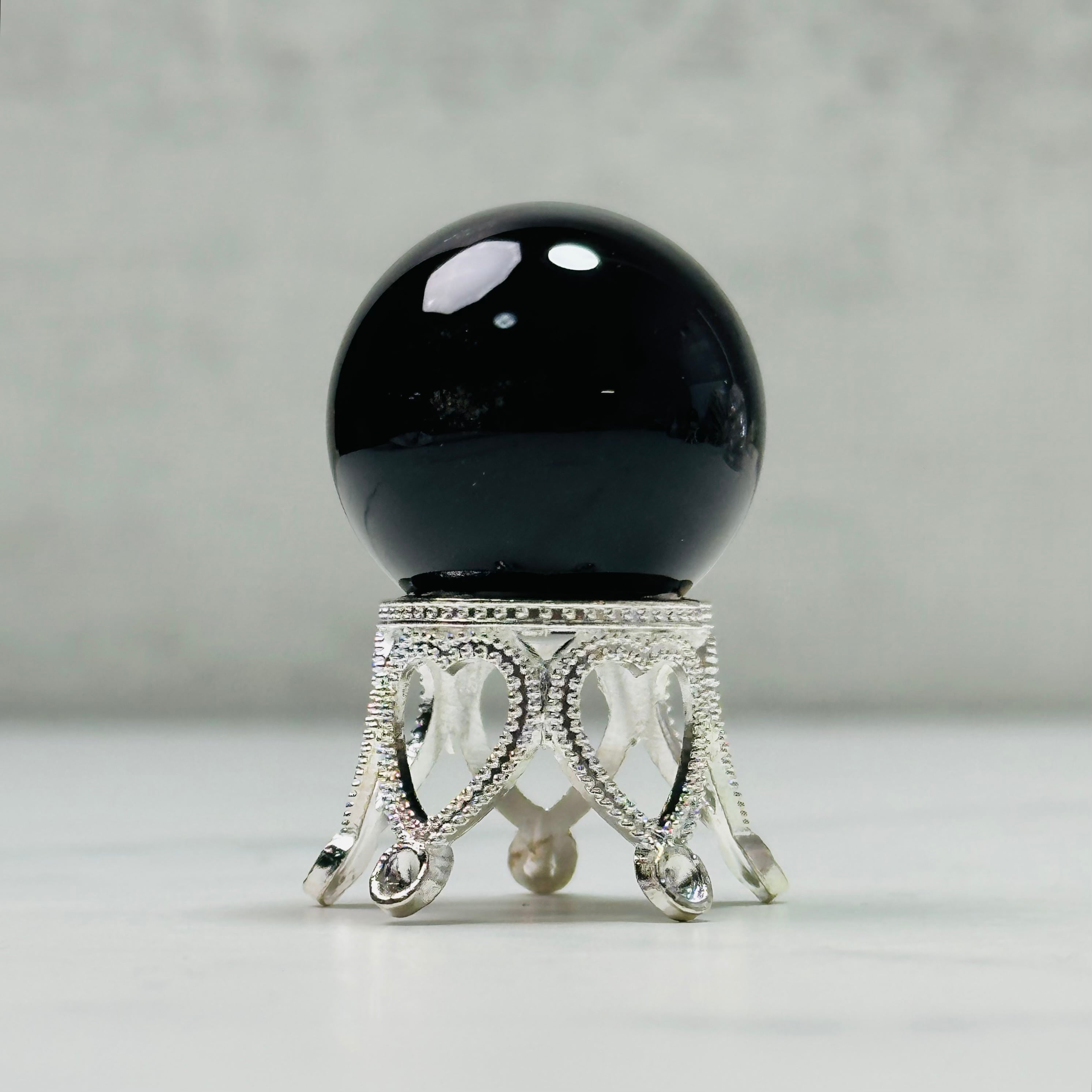 深い色合いのクォーツと上品で艶やかな質感が美しいスモーキークォーツのスフィアです。一見、透け感のない漆黒のスフィアに見えますが、ライトを当てると透き通った美しいブラウンのクォーツが現れます。