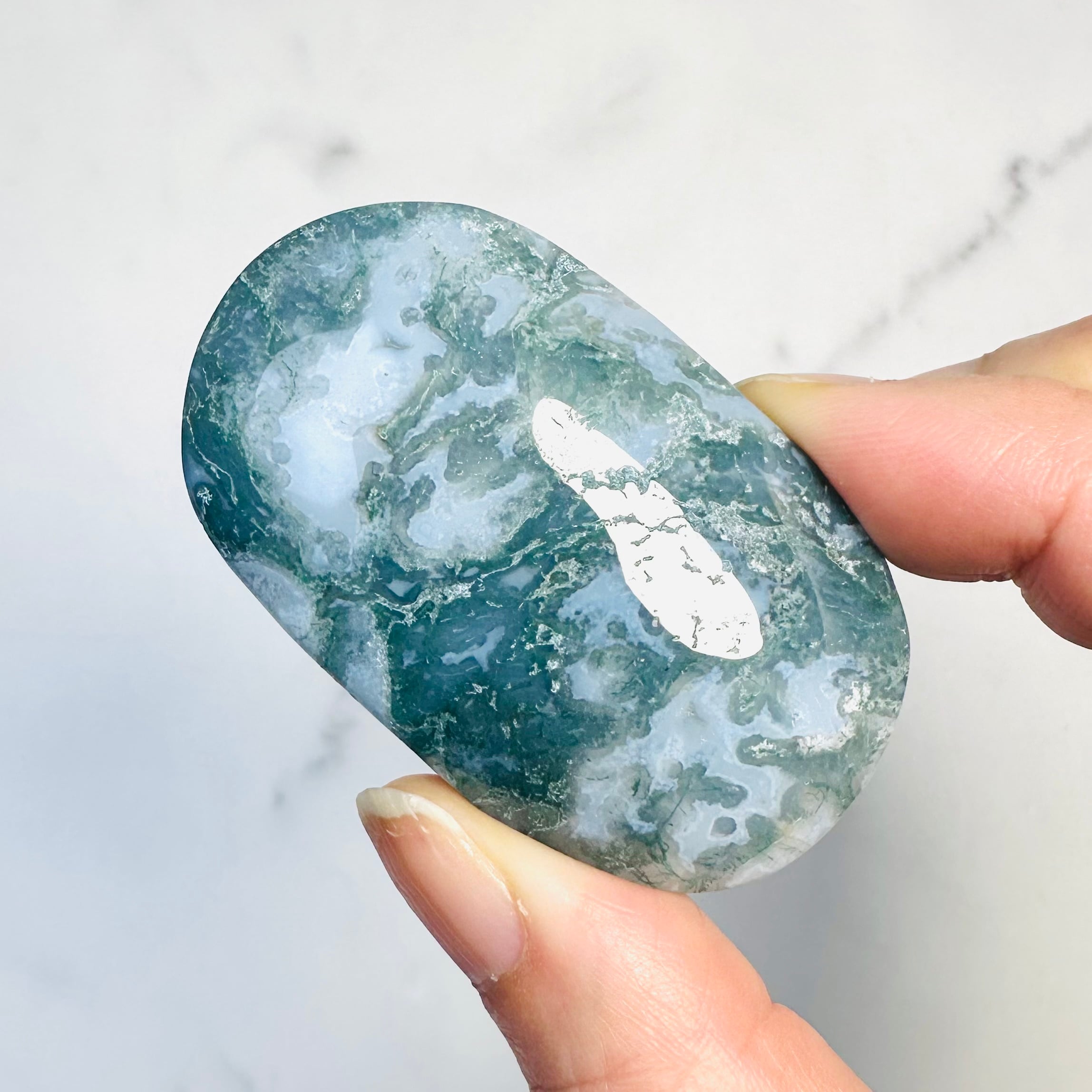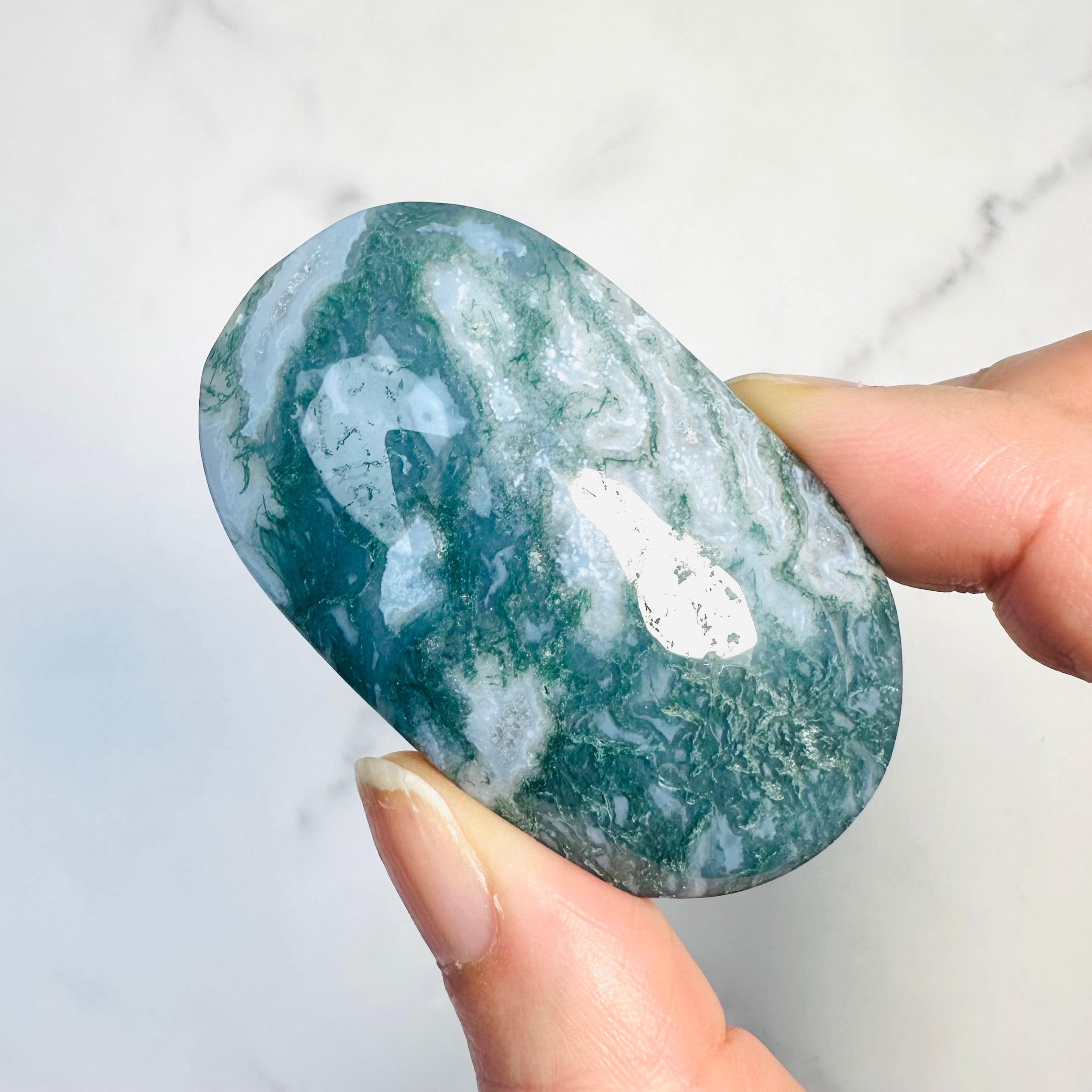 乳白色とモスグリーンが混ざり合ったマーブル模様が優しい癒しを与えてくれます。お部屋に置けば森のマイナスイオンを浴びるような癒しのエネルギーを受け取り、心の回復が感じられます。