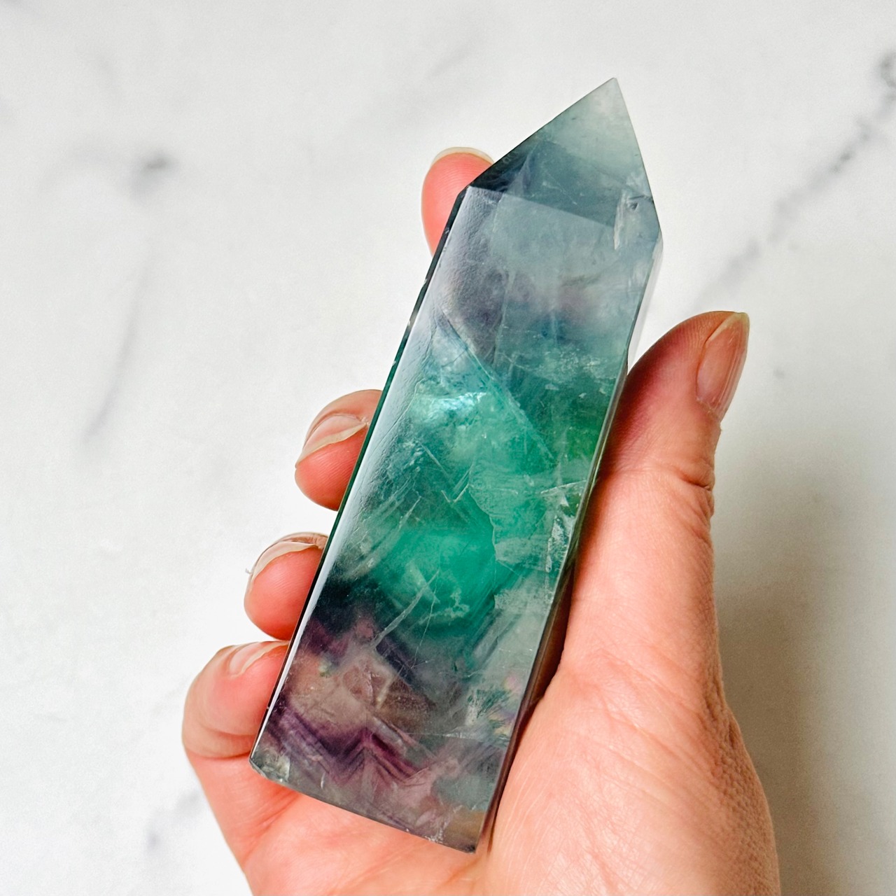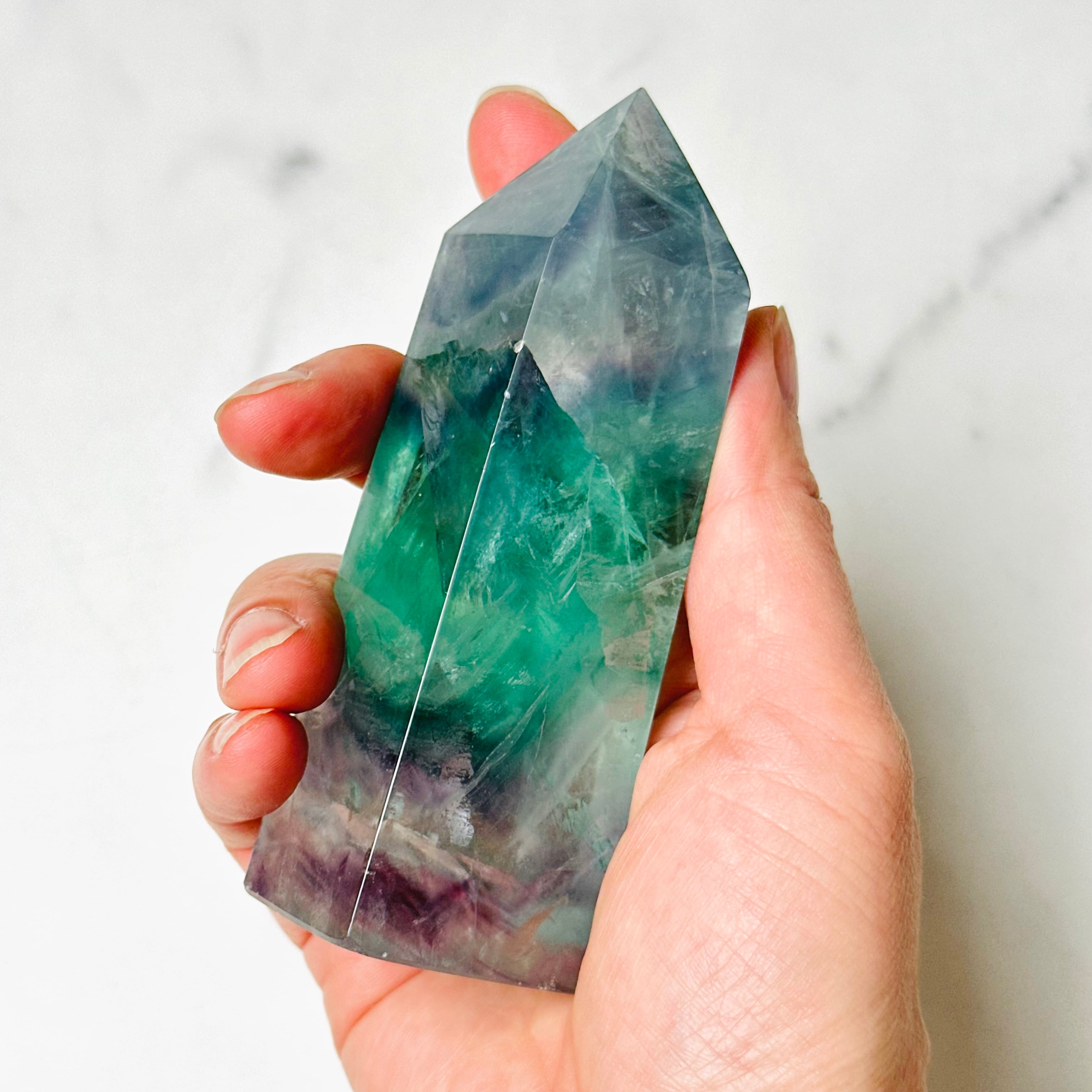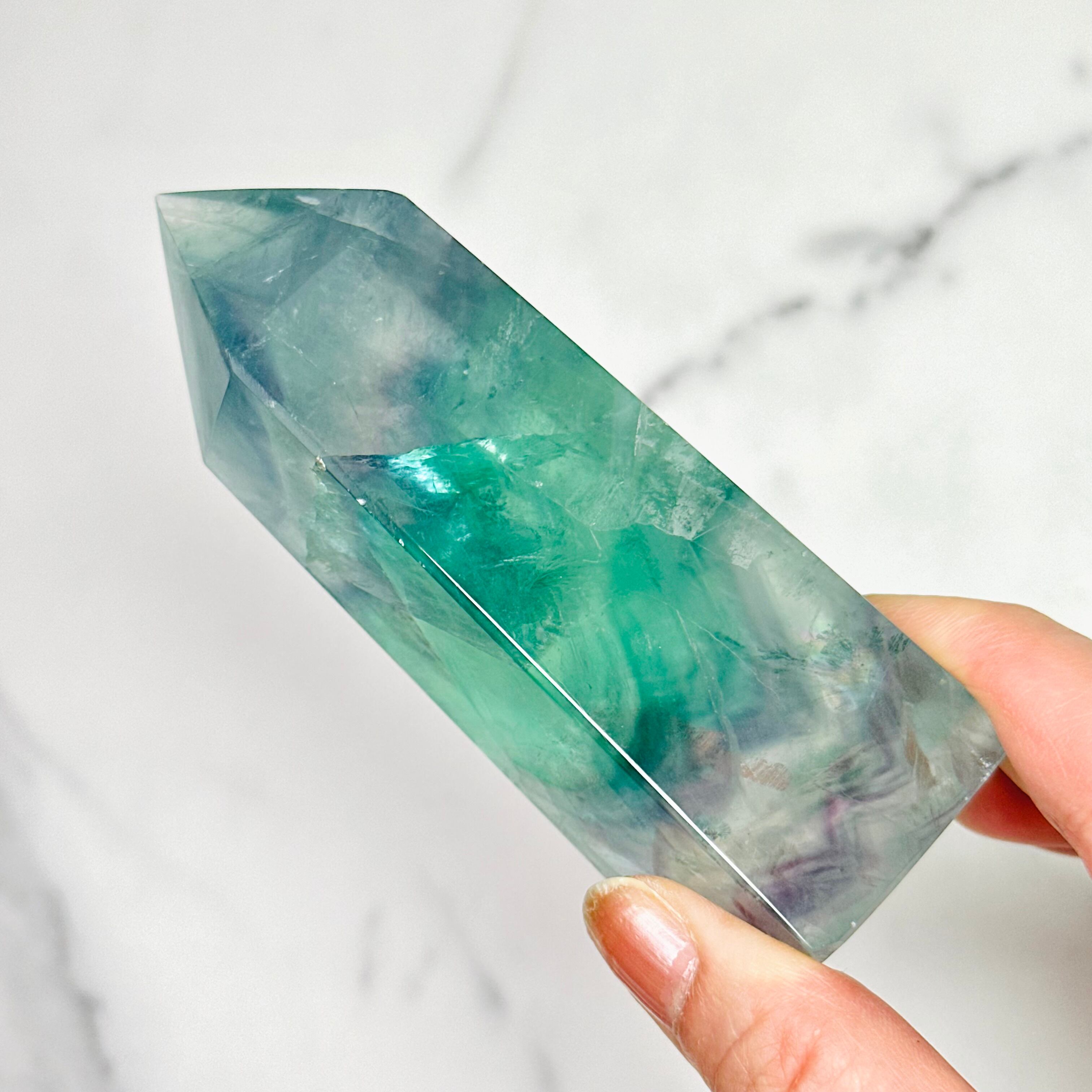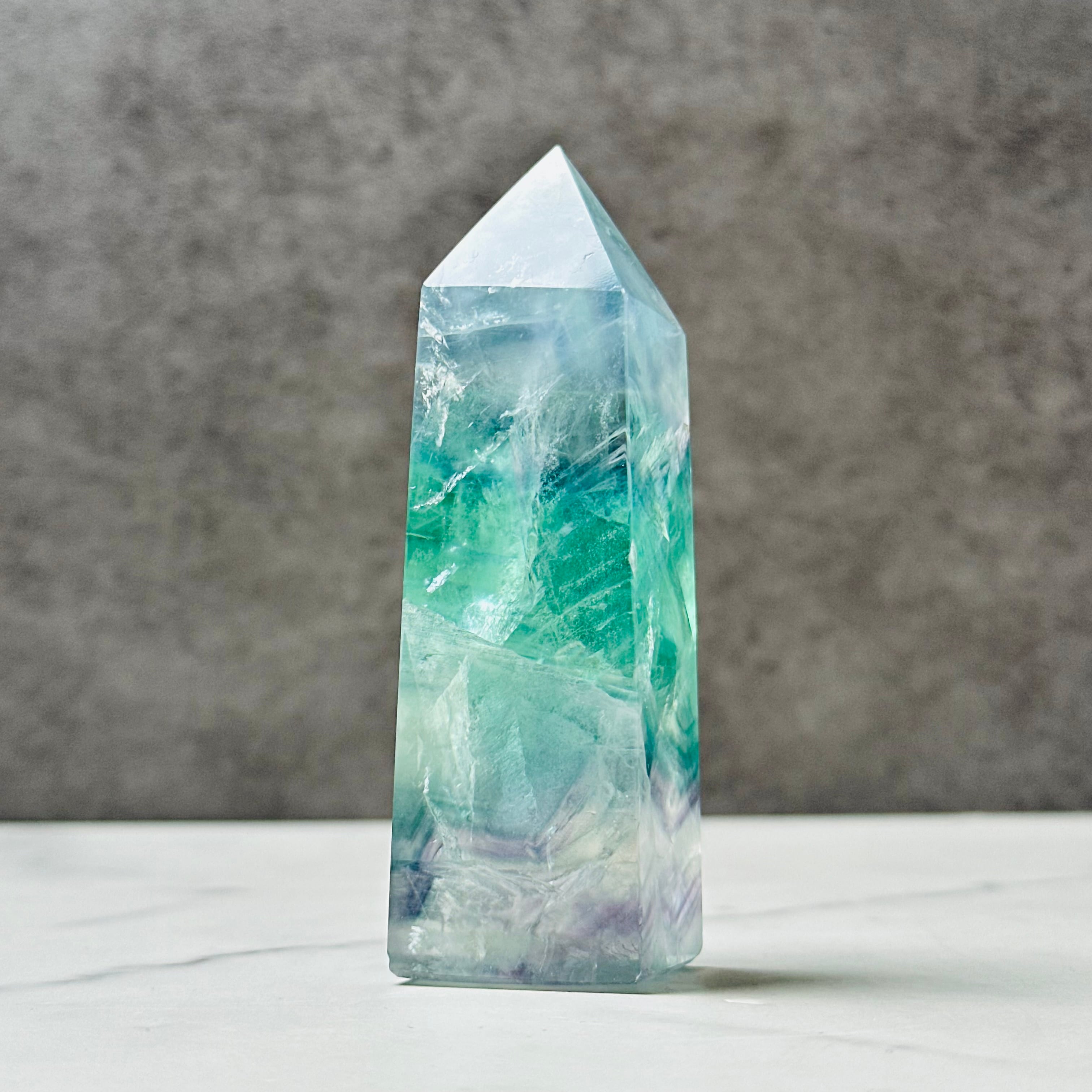透明感ある美しい色彩が美しいフローライトタワー。お部屋に清らかな癒しの空間を演出します。鮮やかな虹があちこちに現れます。思考をクリアにしてくれる石で、特にお仕事スペース、デスク周りにおすすめです。