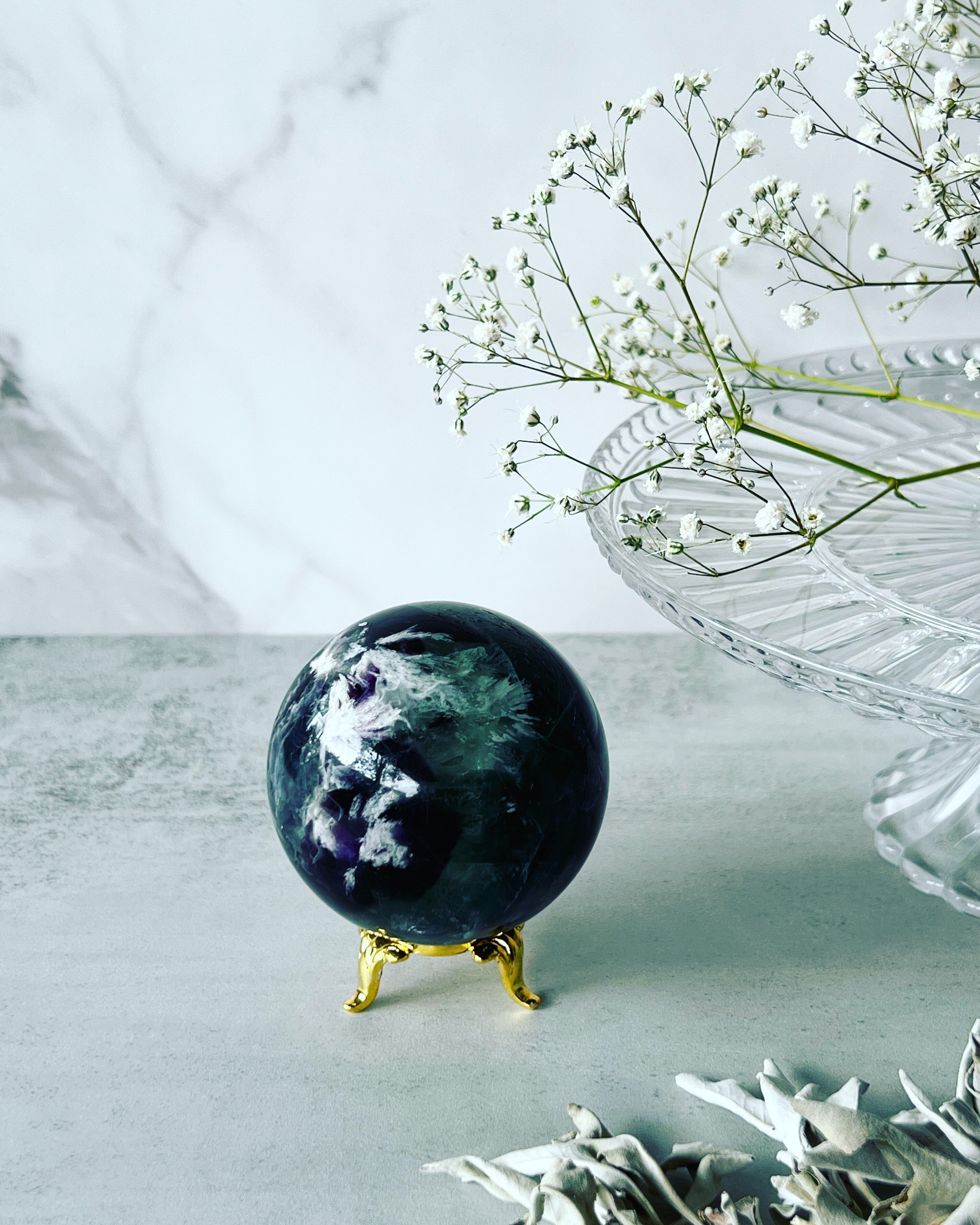 【天使の羽②】エンジェルフェザーフローライトスフィア 61mm - Angel Feather Fluorite -