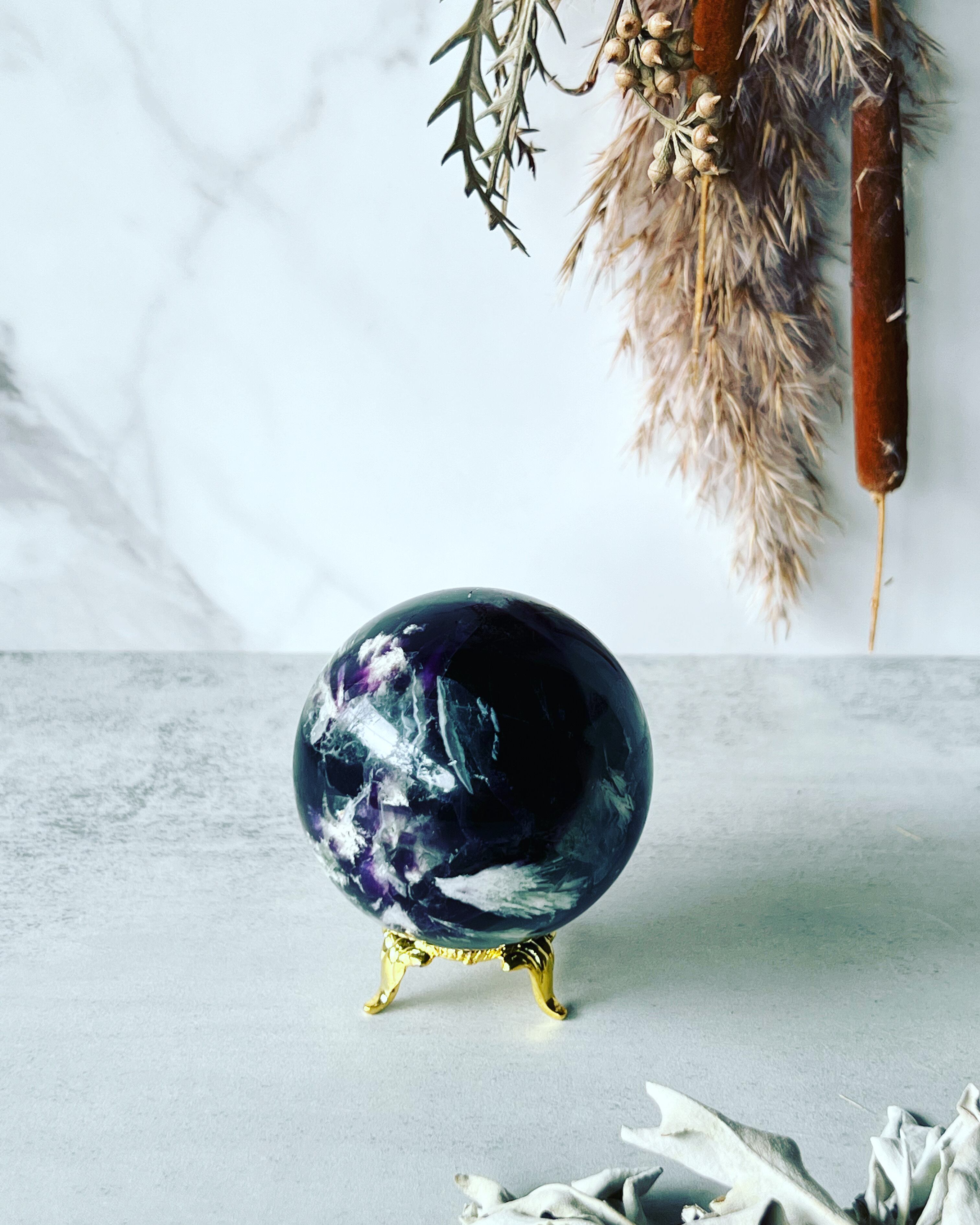 【天使の羽③】エンジェルフェザーフローライトスフィア 61mm - Angel Feather Fluorite -
