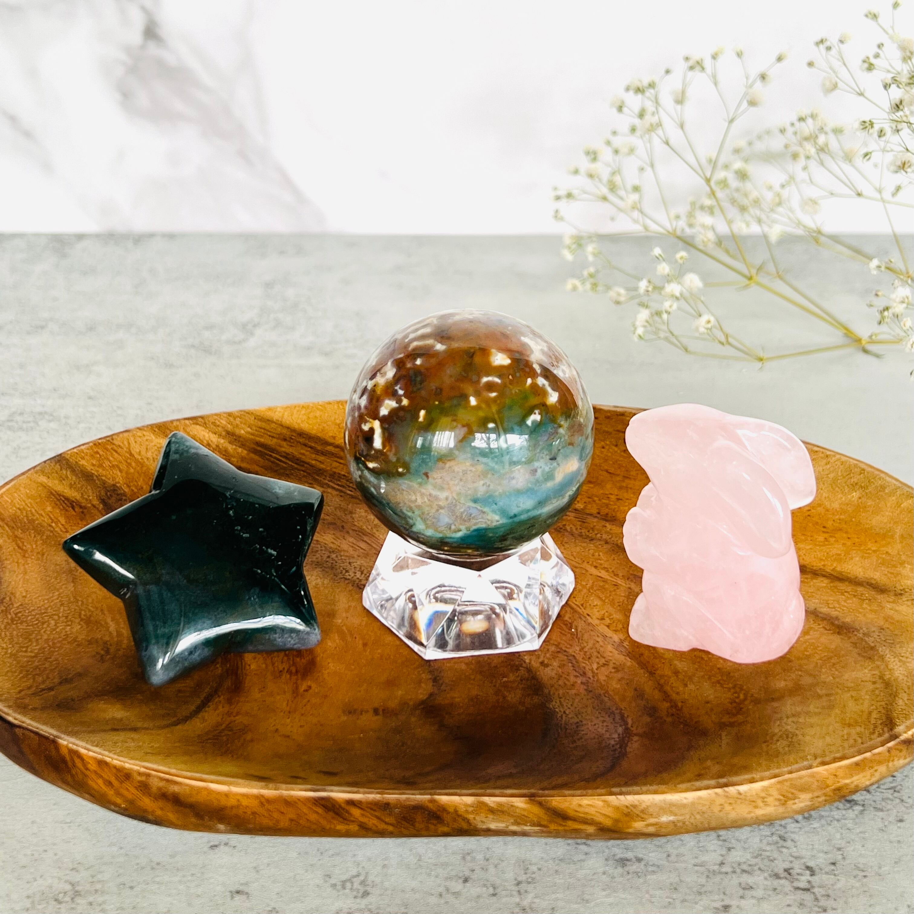 モスアゲートは、癒しの石として知られています。感情の乱れを整え、エゴや執着を解き放ち、心身を安定した状態に保ち、生活に疲れた人に平和で穏やかなパワーをもたらしてくれます。森林浴と同じ効果があると言われており、持ち主に自然の恵みを与え、富と繁栄をもたらすパワーストーンです。