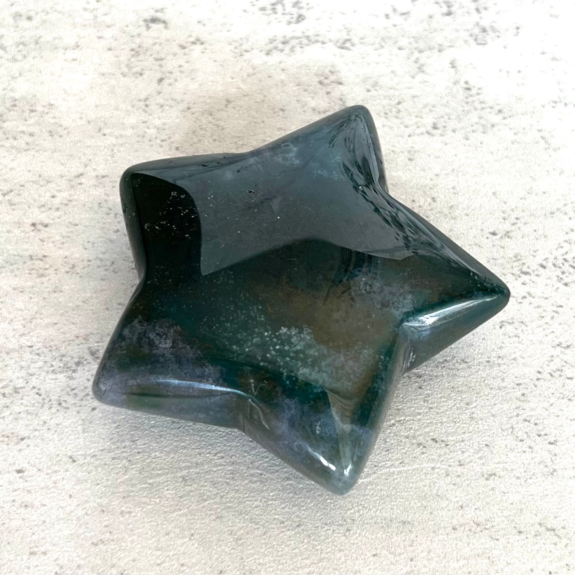 深みのあるグリーンが美しい星の形をしたモスアゲートです。