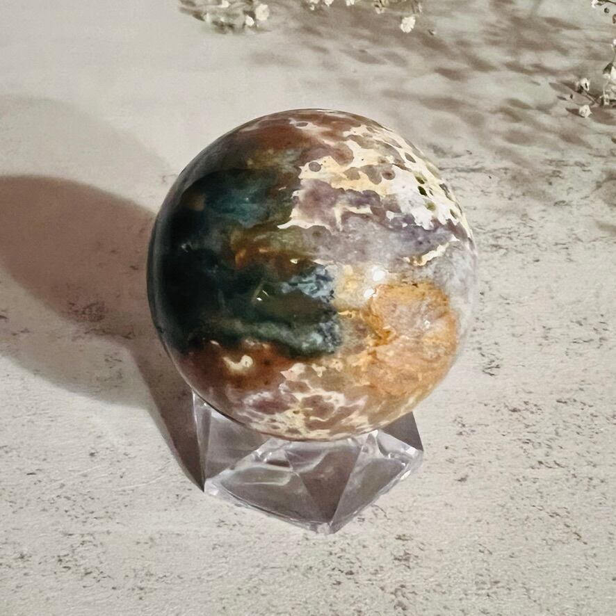 まるで地球を思わせるアースカラーで構成された美しいジャスパーのスフィアです。大地の安定感・力強さに裏付けられた自然の優しく穏やかな癒しのエネルギーを感じることができます。