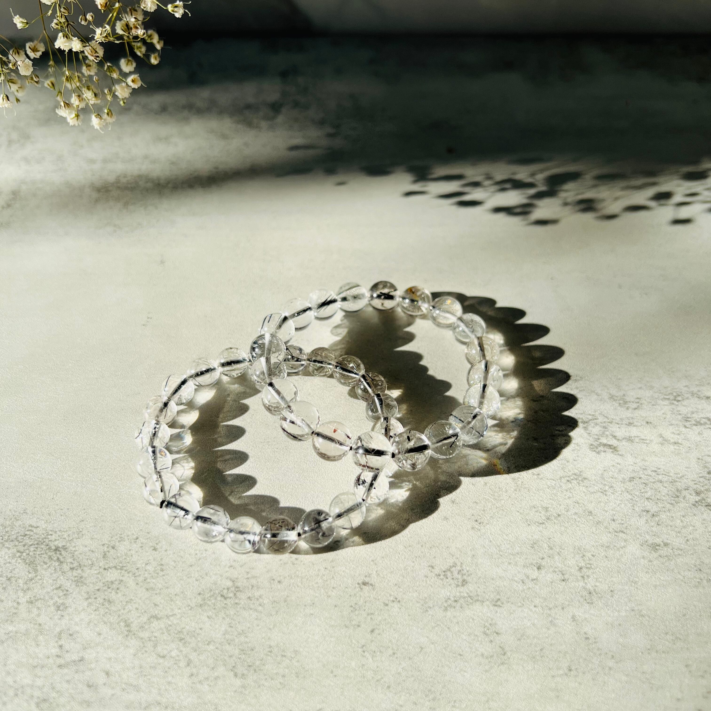 ブラックトルマリン インクォーツ 透明感が美しいクォーツに内包されたブラックトルマリン。別名ブラックルチルクォーツとも呼ばれます。水晶の透明感がしっかり感じられ、ブラックトルマリンのラインがアクセントになってクリアでかっこいいブレスレットです。