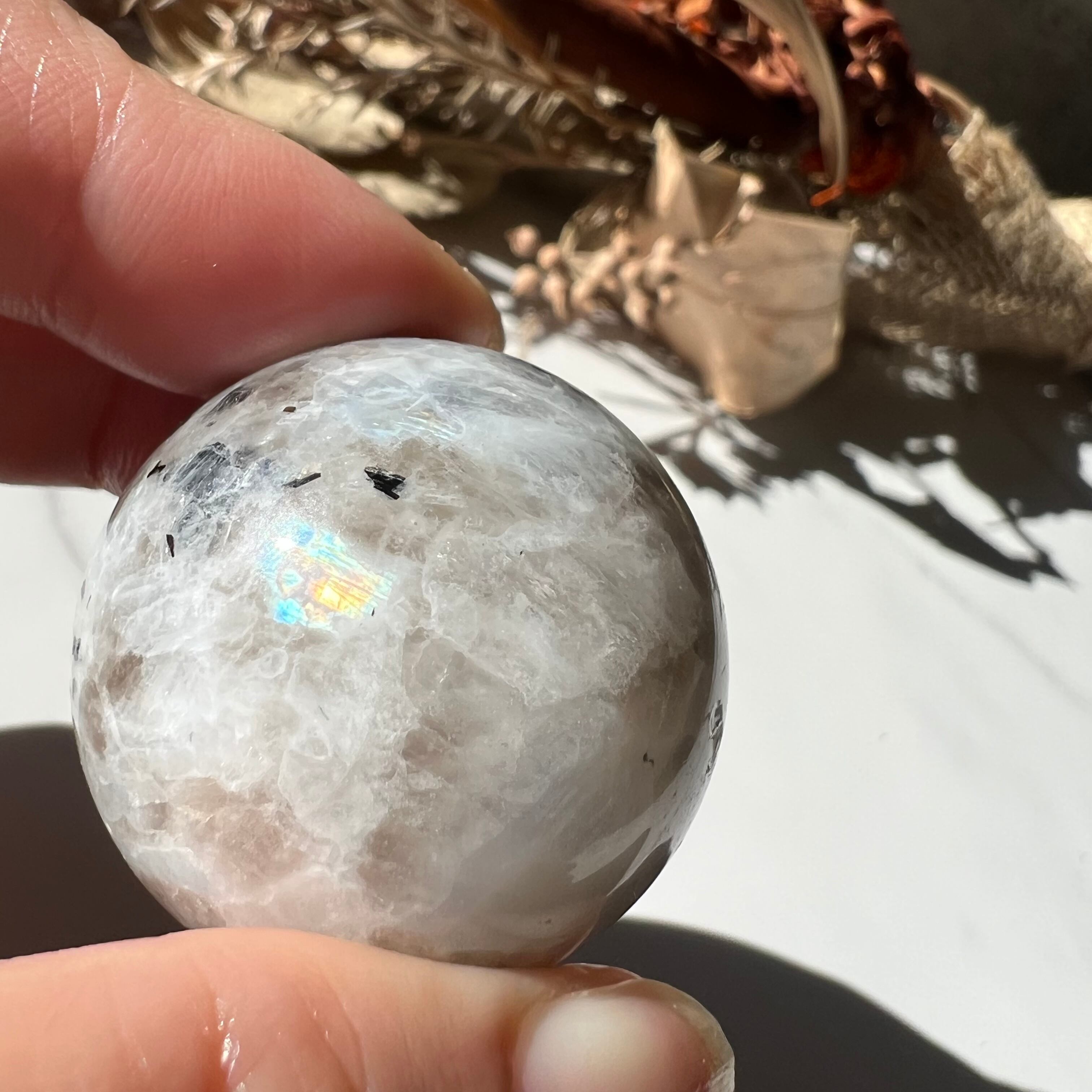 レインボームーンストーンの虹色のシラーは幸せを引き寄せる力を持っていることでも有名です。雨上がりに見える美しい虹のように、幸運のシンボルとして持ち主と周りの人々にたくさんの幸せを呼び込んでくれることでしょう。