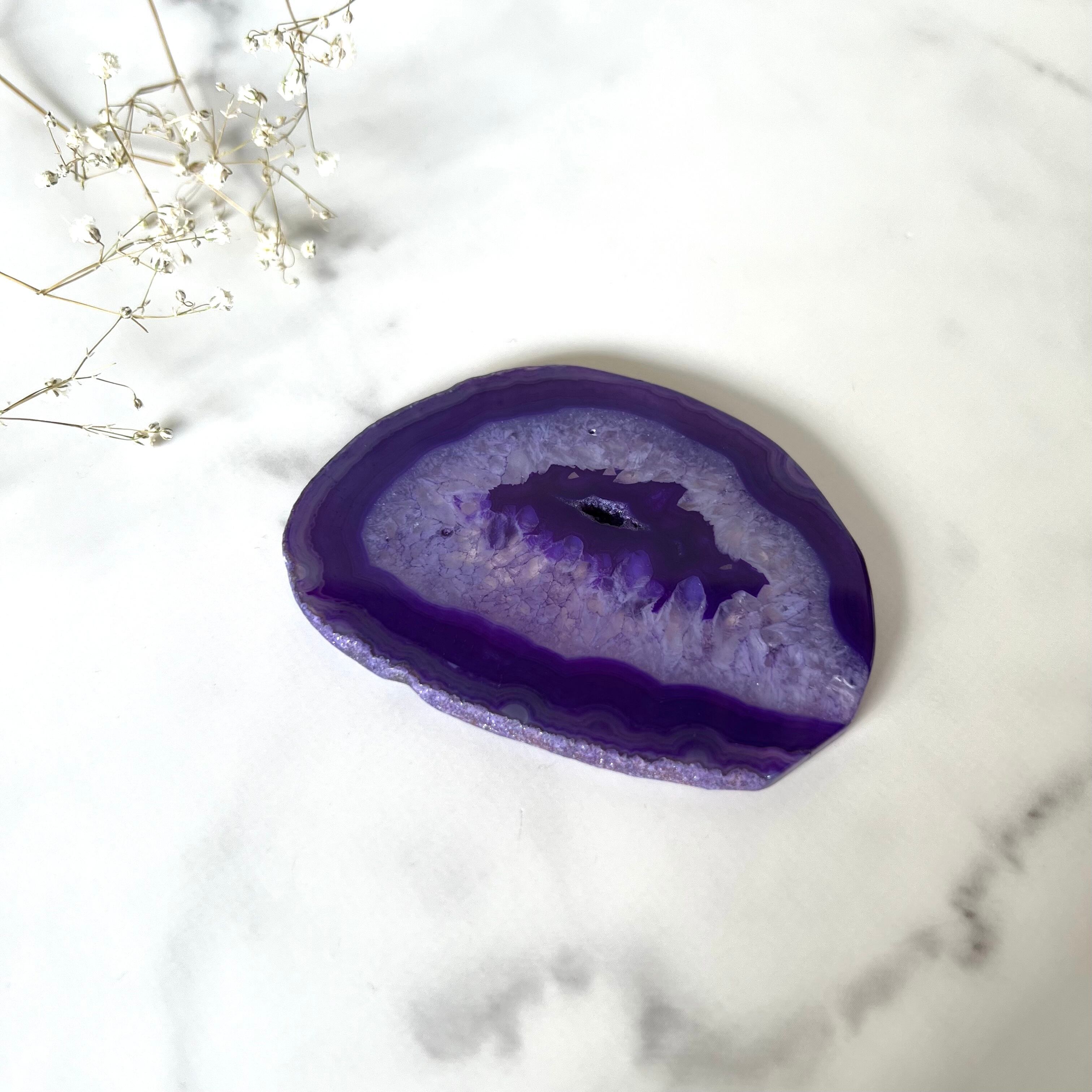綺麗な紫色のアゲートプレートです。透かすとキレイな模様が見られます。