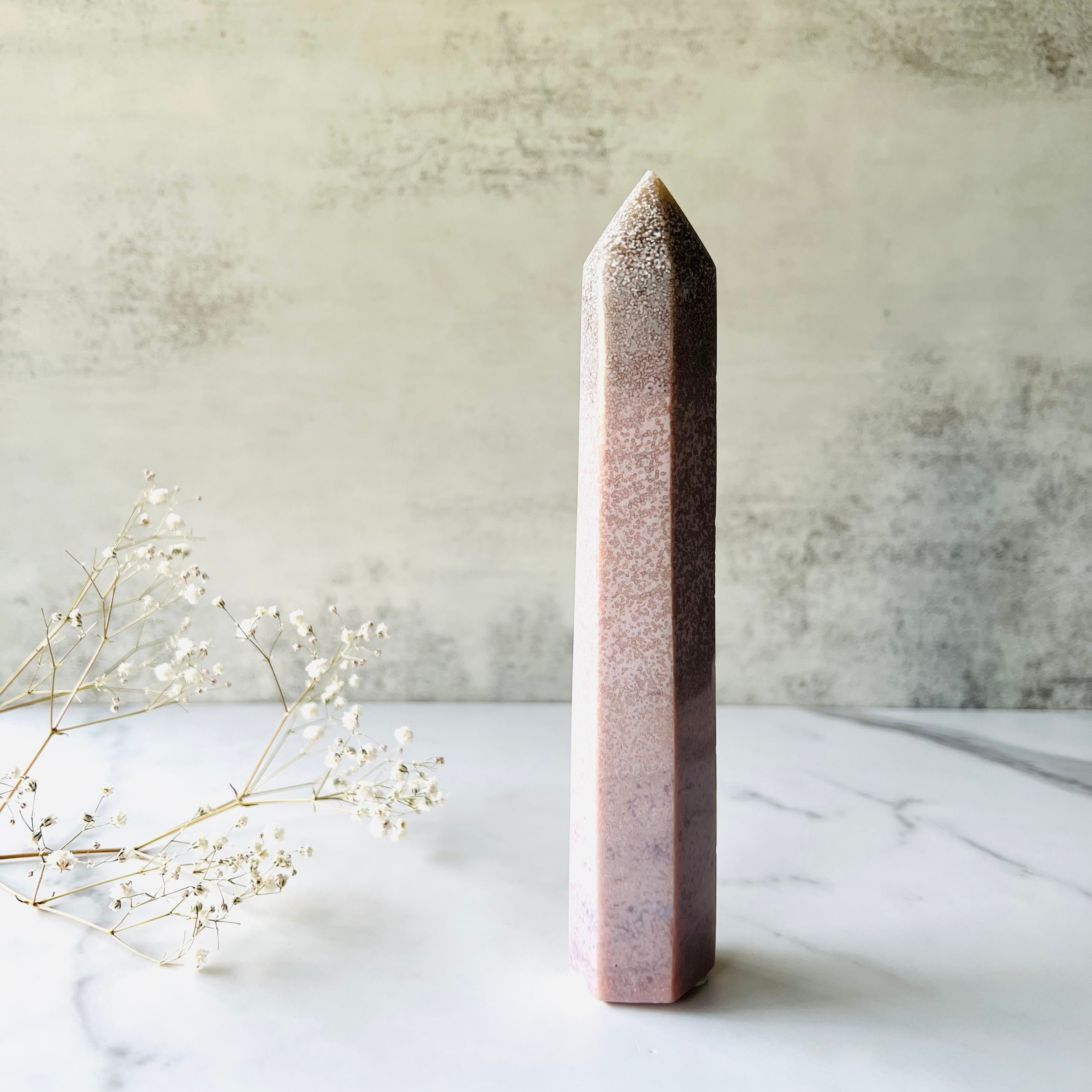 上品で凛とした佇まいのピンクオーシャンジャスパータワーです。