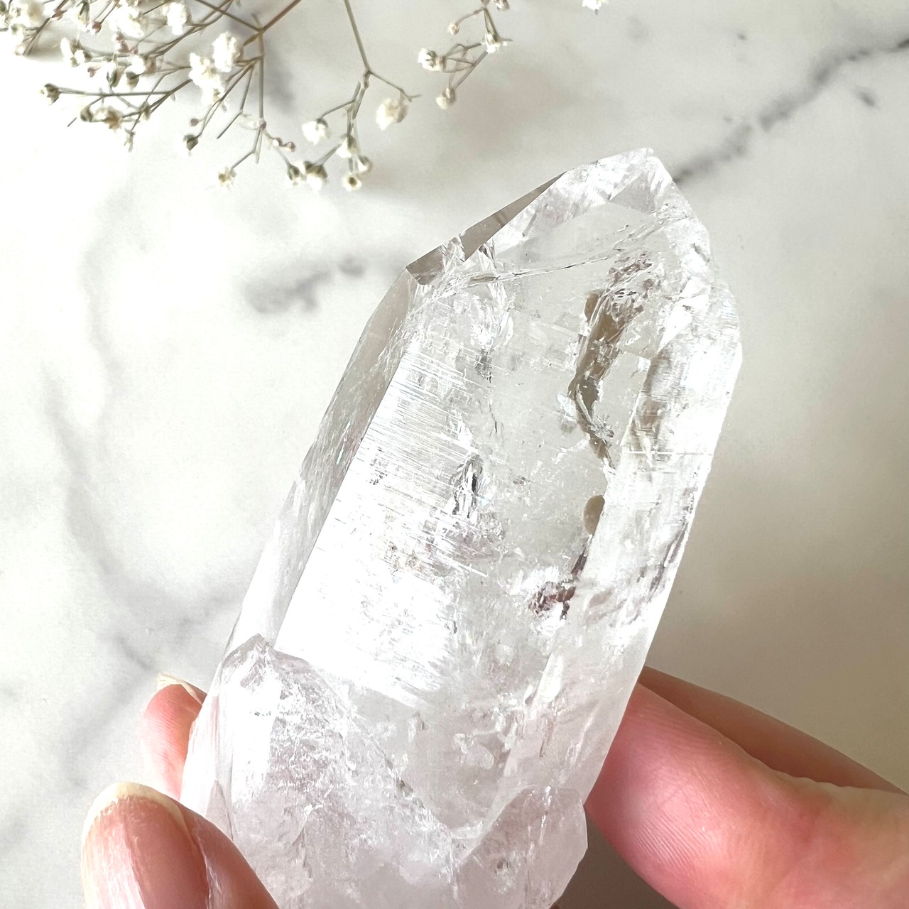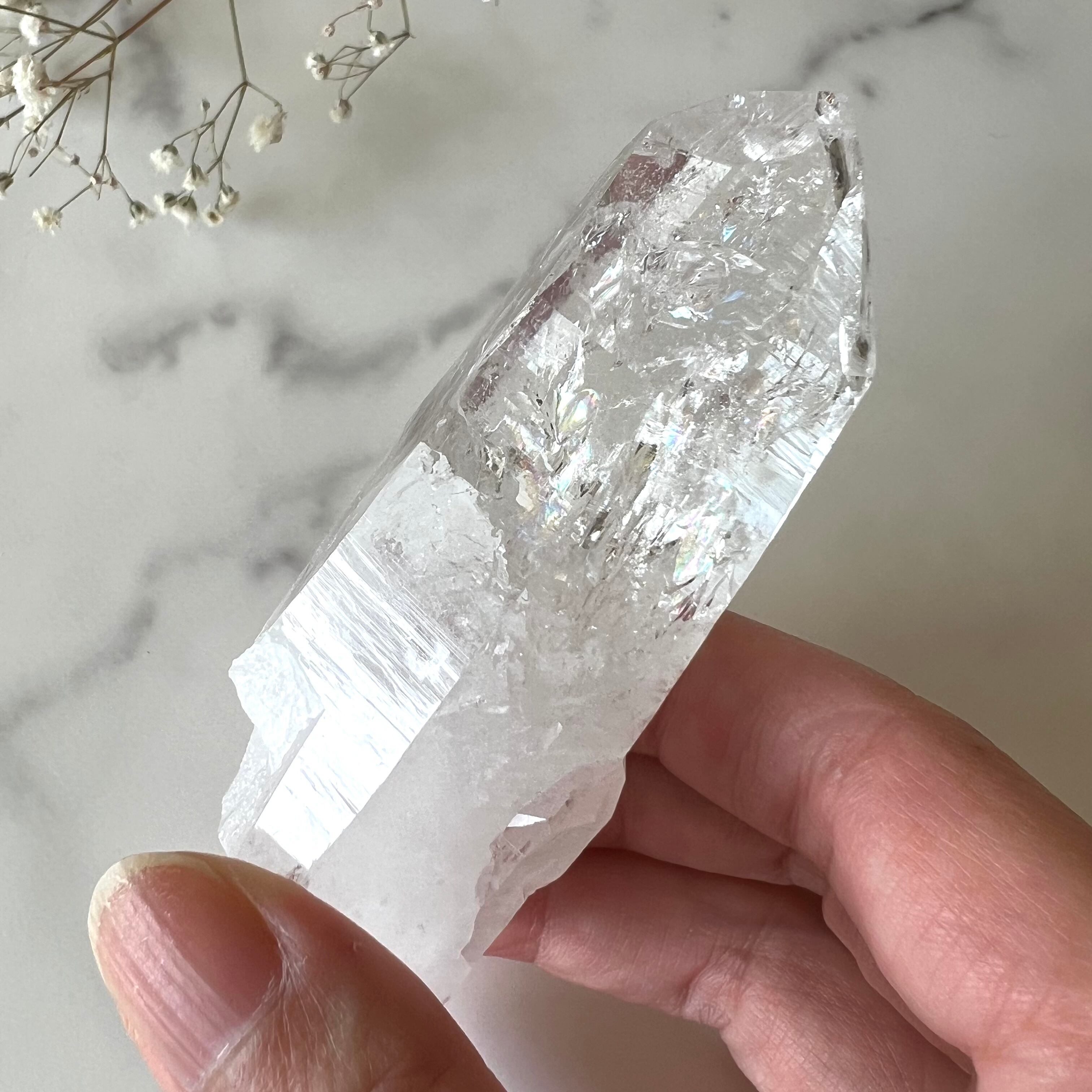 太陽の光を閉じ込めたような力強い輝きと清らかな水のような透明度を併せ持ったエネルギー溢れるクリスタルです。尊厳と静謐に満ちた波動は感性の奥深くにたどりつき、深く鋭い直感力と洞察力を養ってくれるでしょう。
