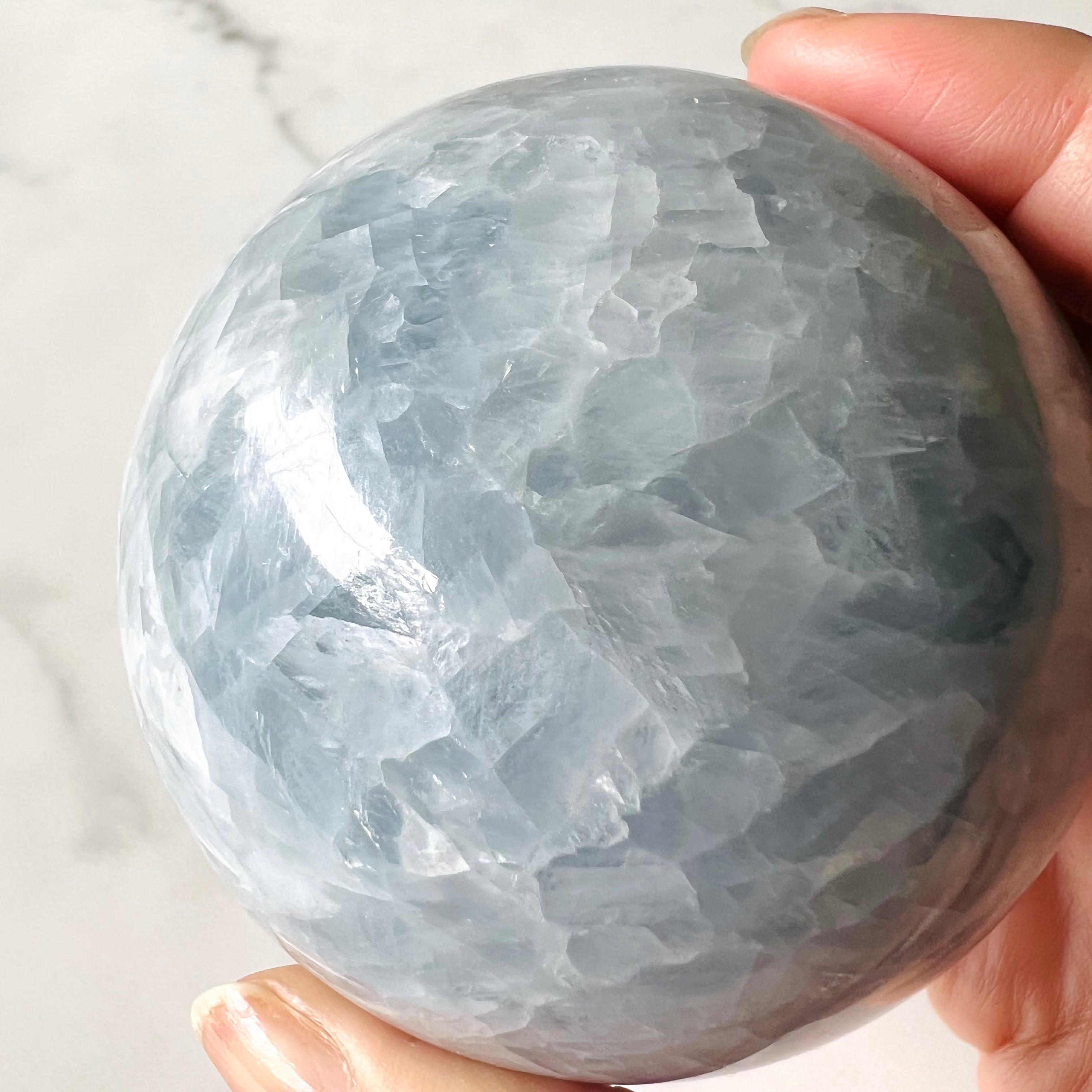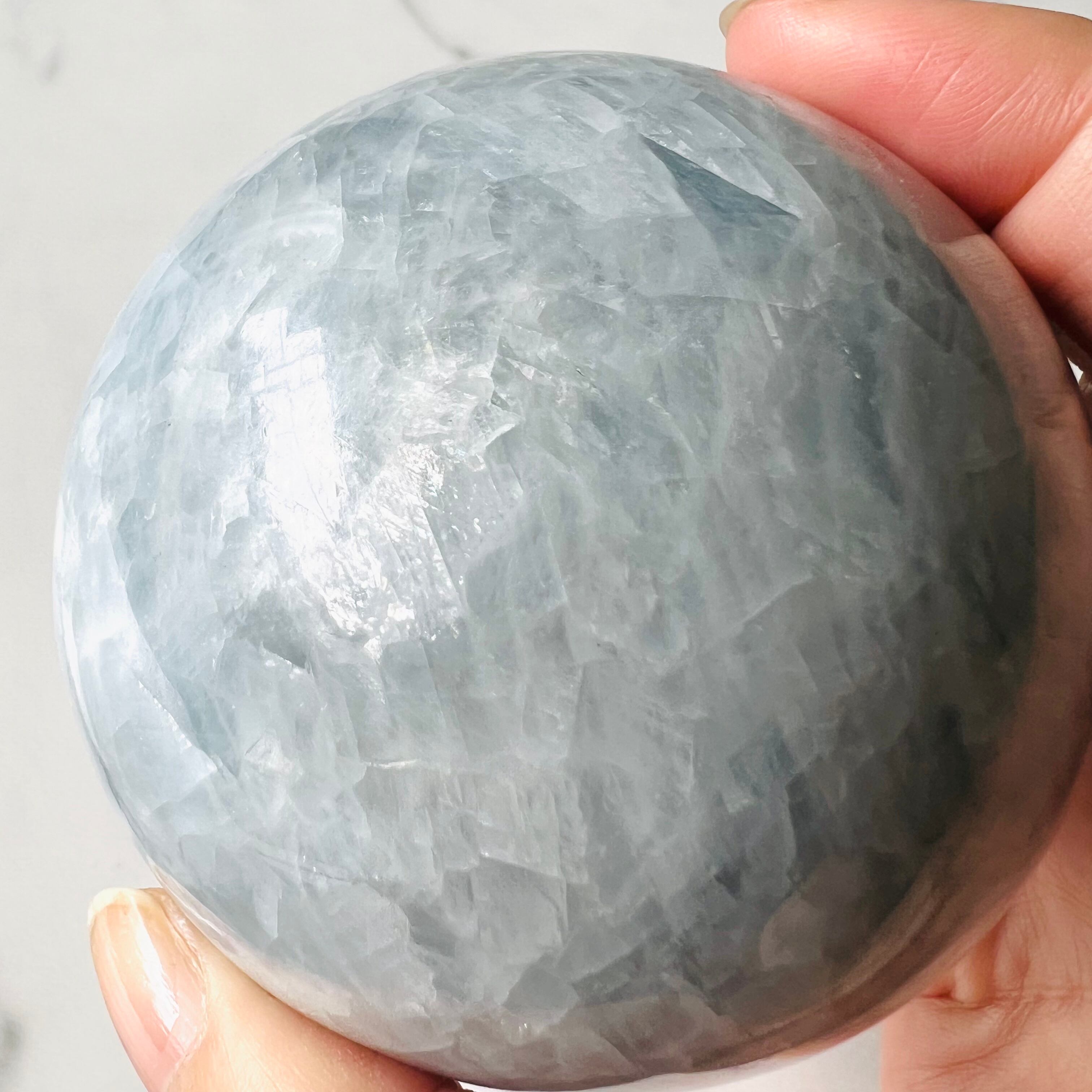 淡く優しいブルーが美しいブルーカルサイトのスフィアです。波動も穏やかでさざ波のように優しく寄せて返すさざ波のようです。