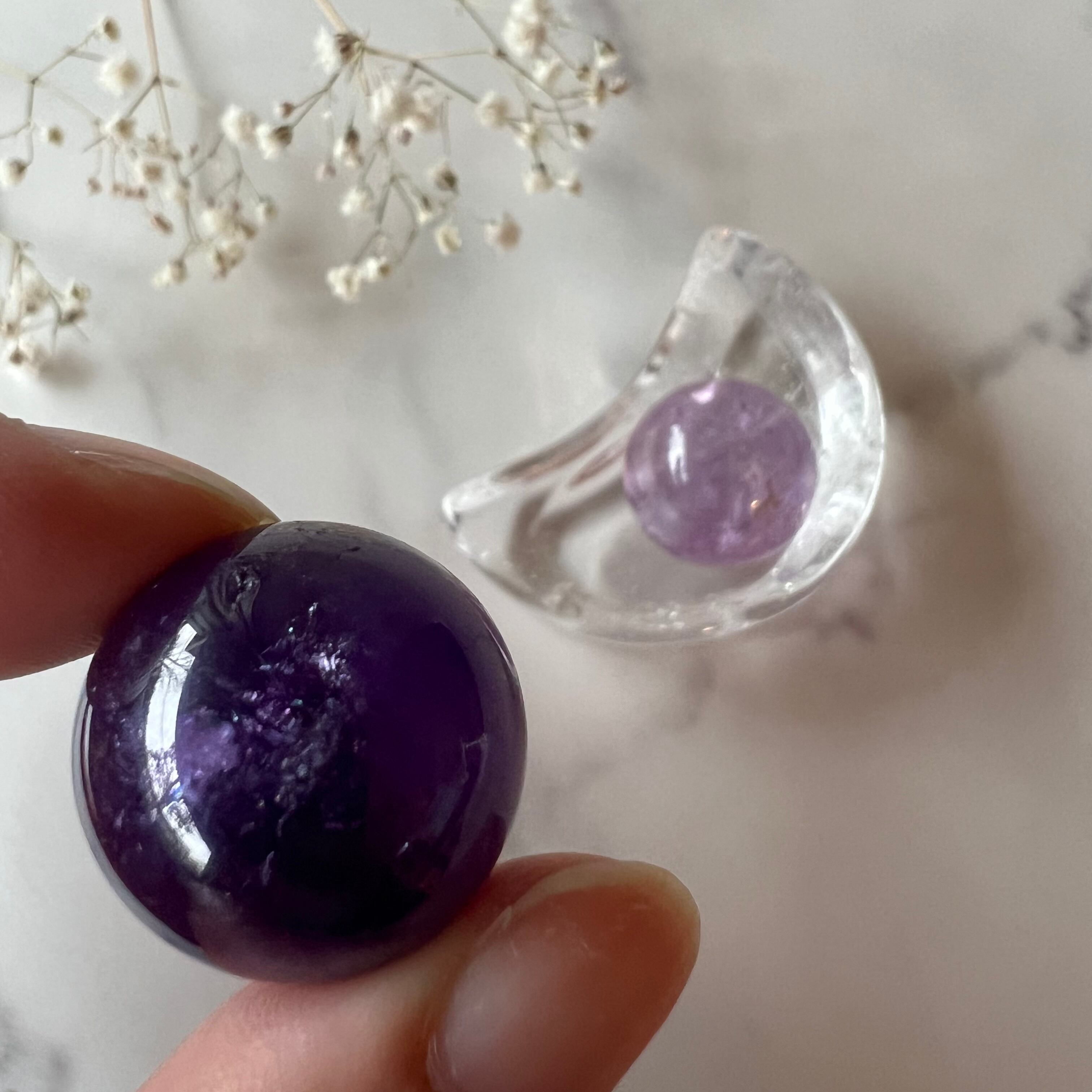 淡いラベンダーとこっくり深い巨峰色のアメジスト2個セットです。それぞれの美しさをお楽しみください。