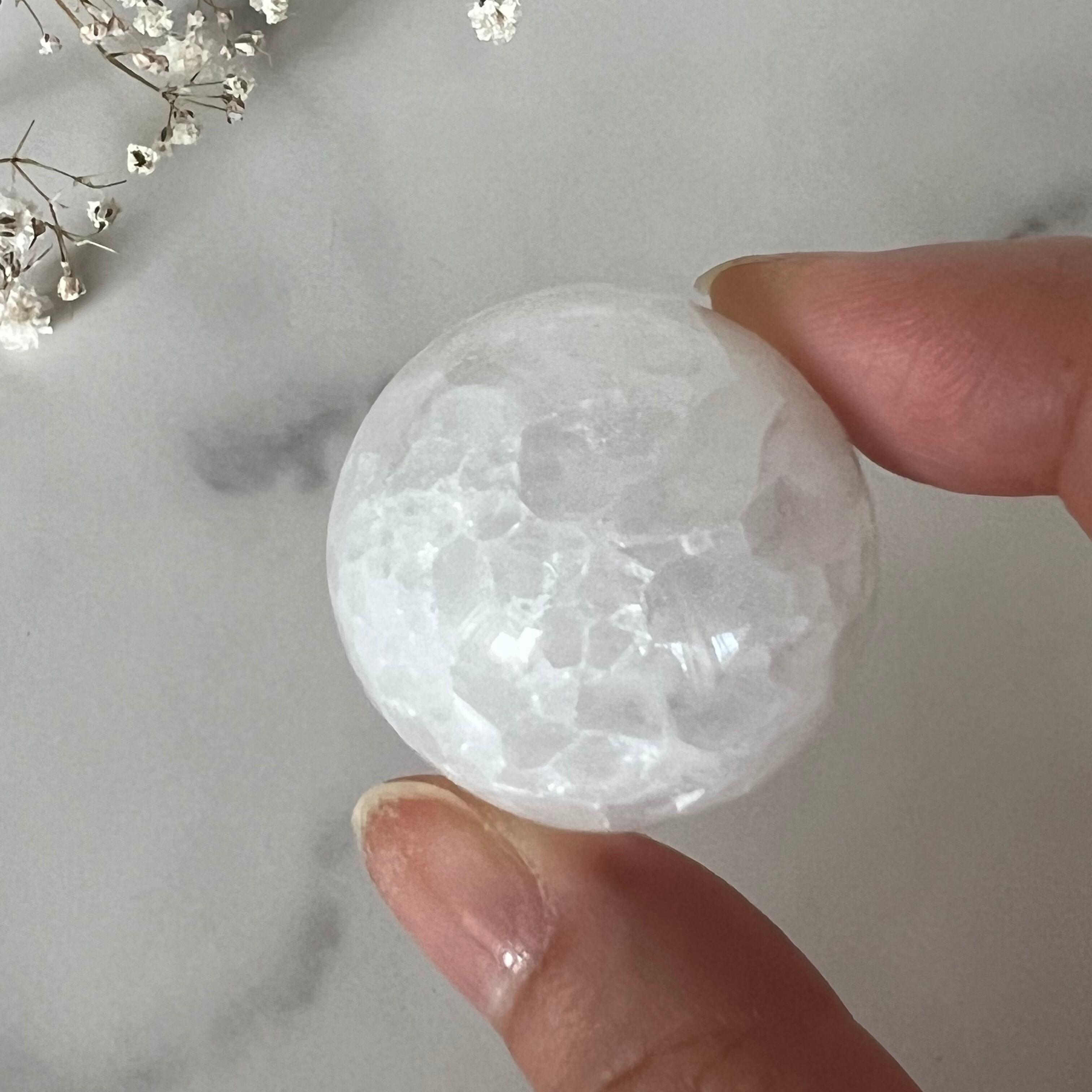 濁りのないピュアなホワイトにキラキラのドゥルージーが綺麗なアゲートのスフィアです。