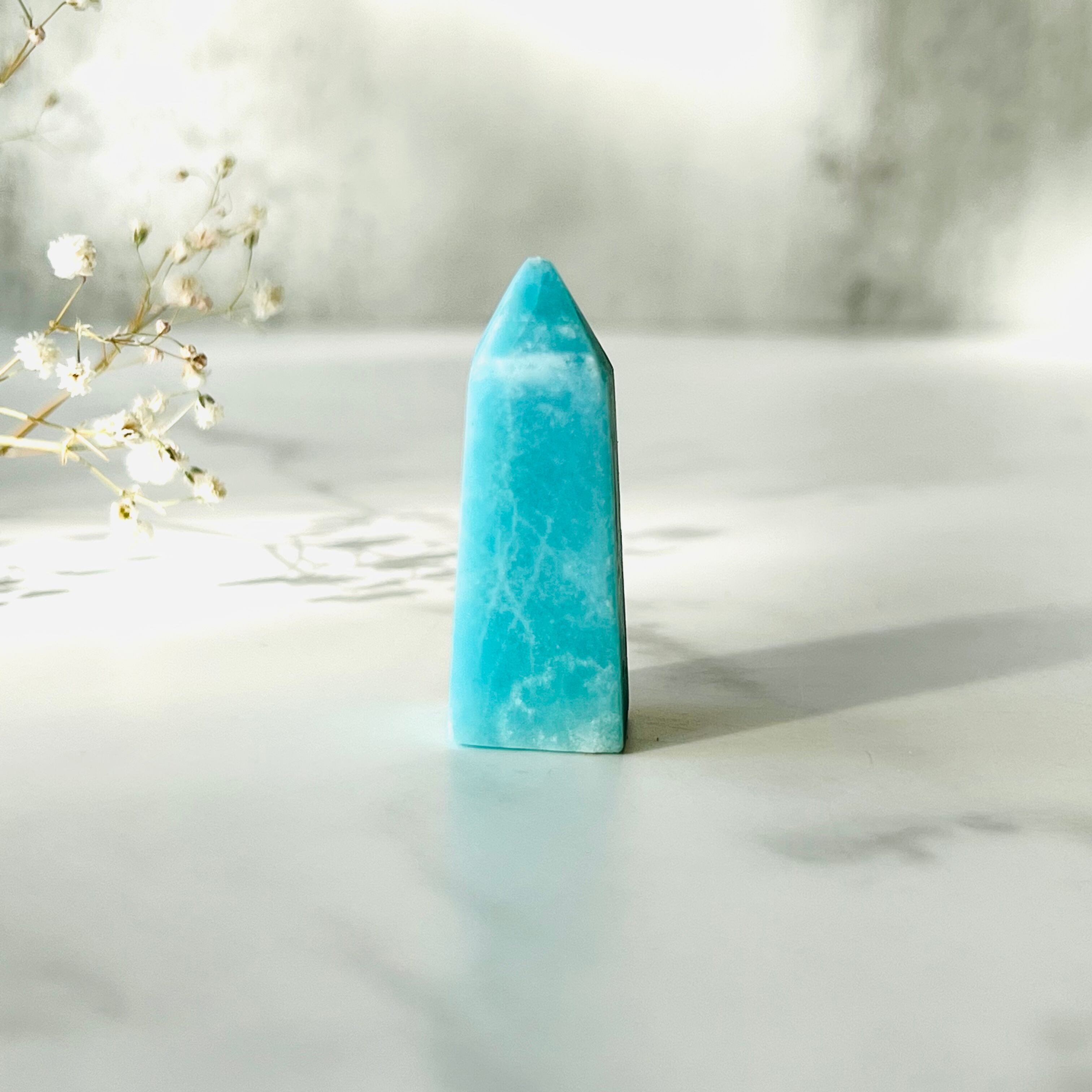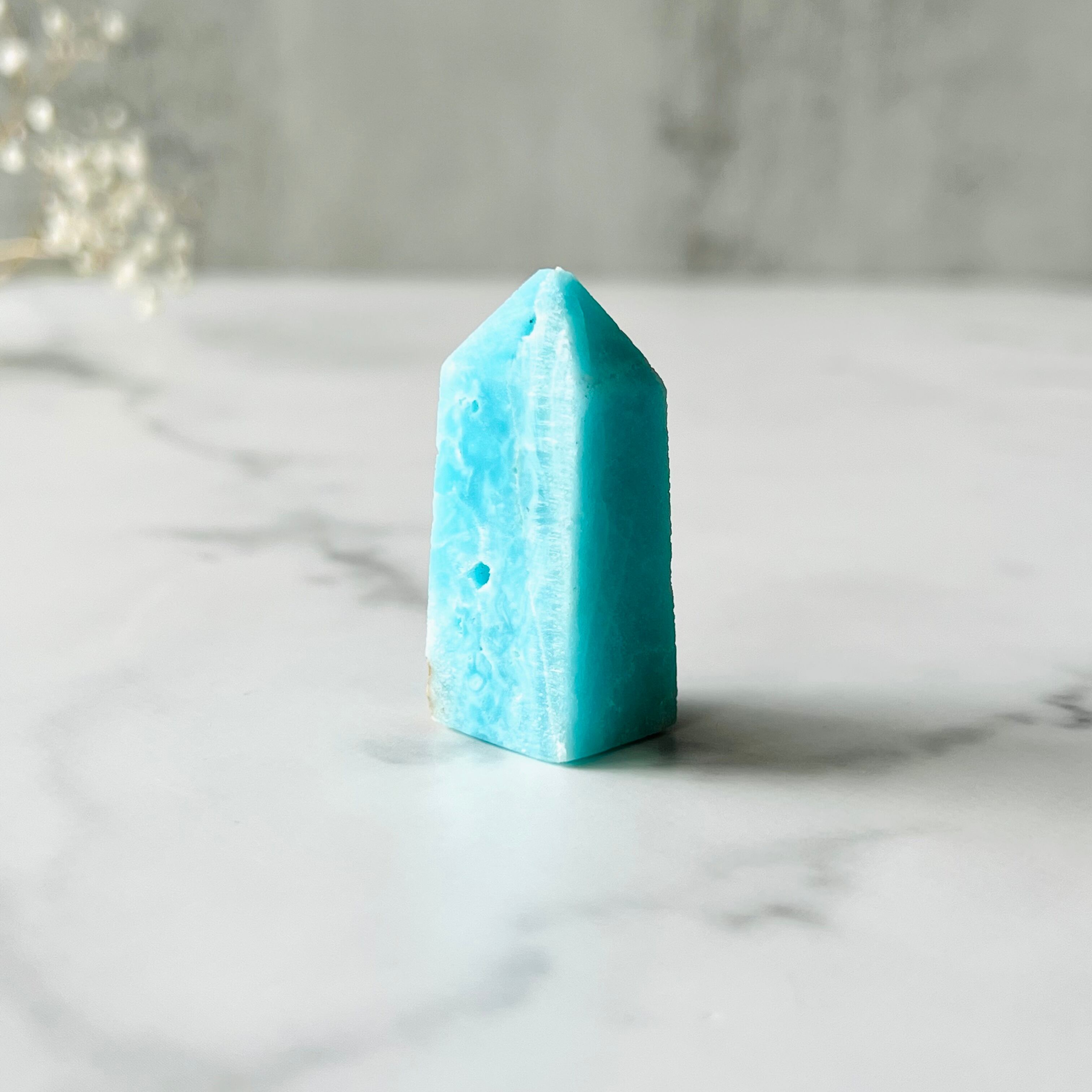カリビアンブルーカルサイトは2019年にパキスタンで発見された新しい鉱石で、爽やかなオーシャンブルーと茶色の層がカリブの美しい海と砂浜を思わせます。