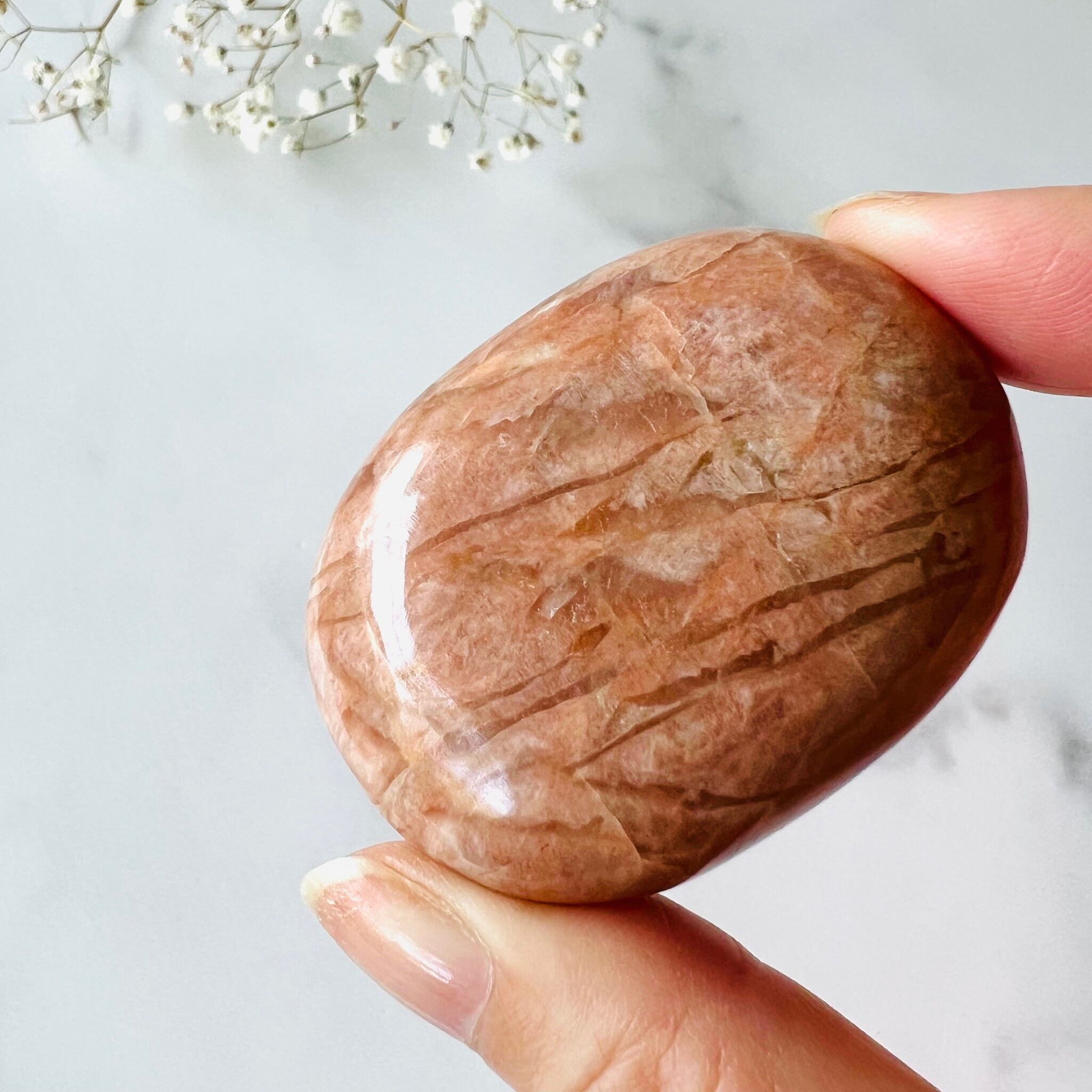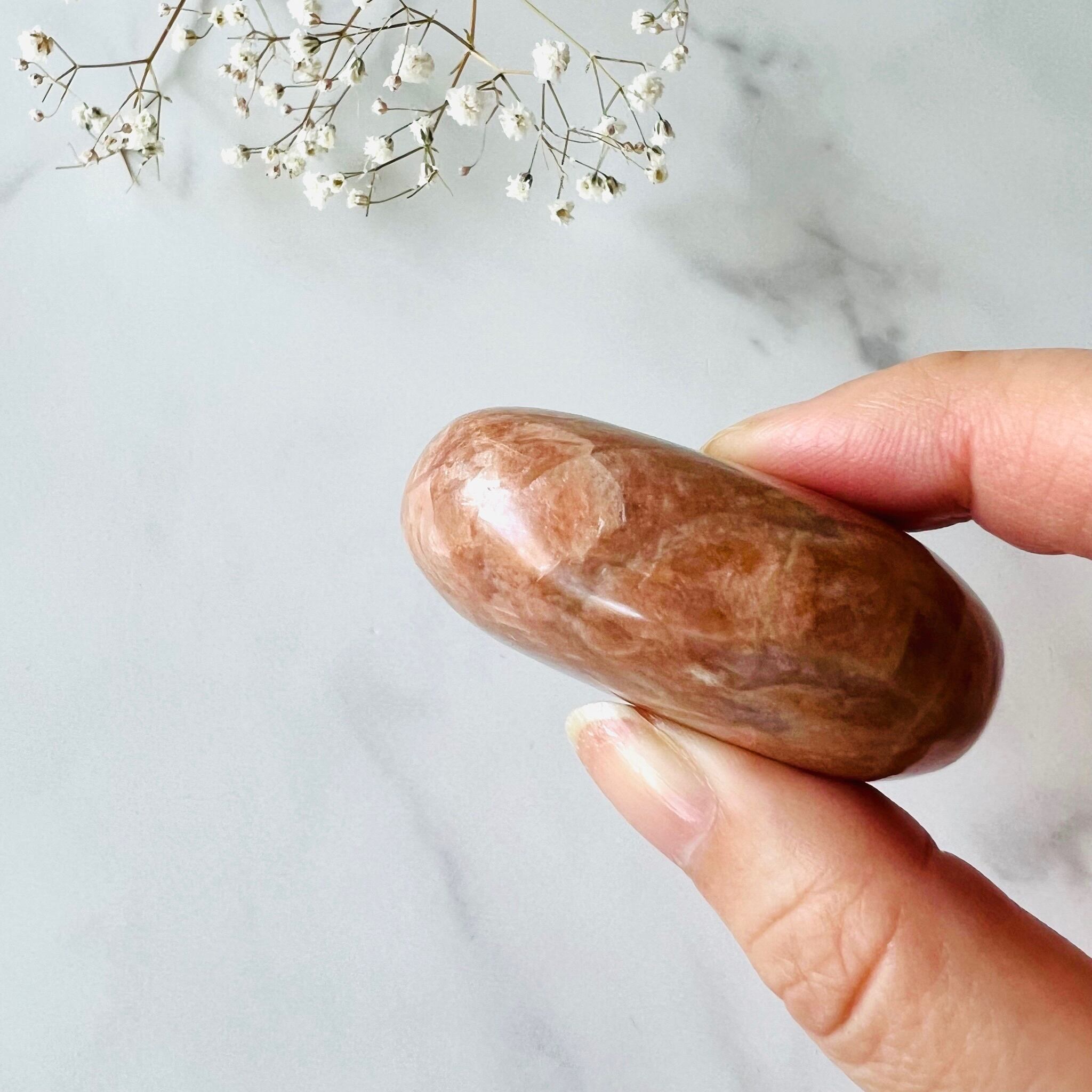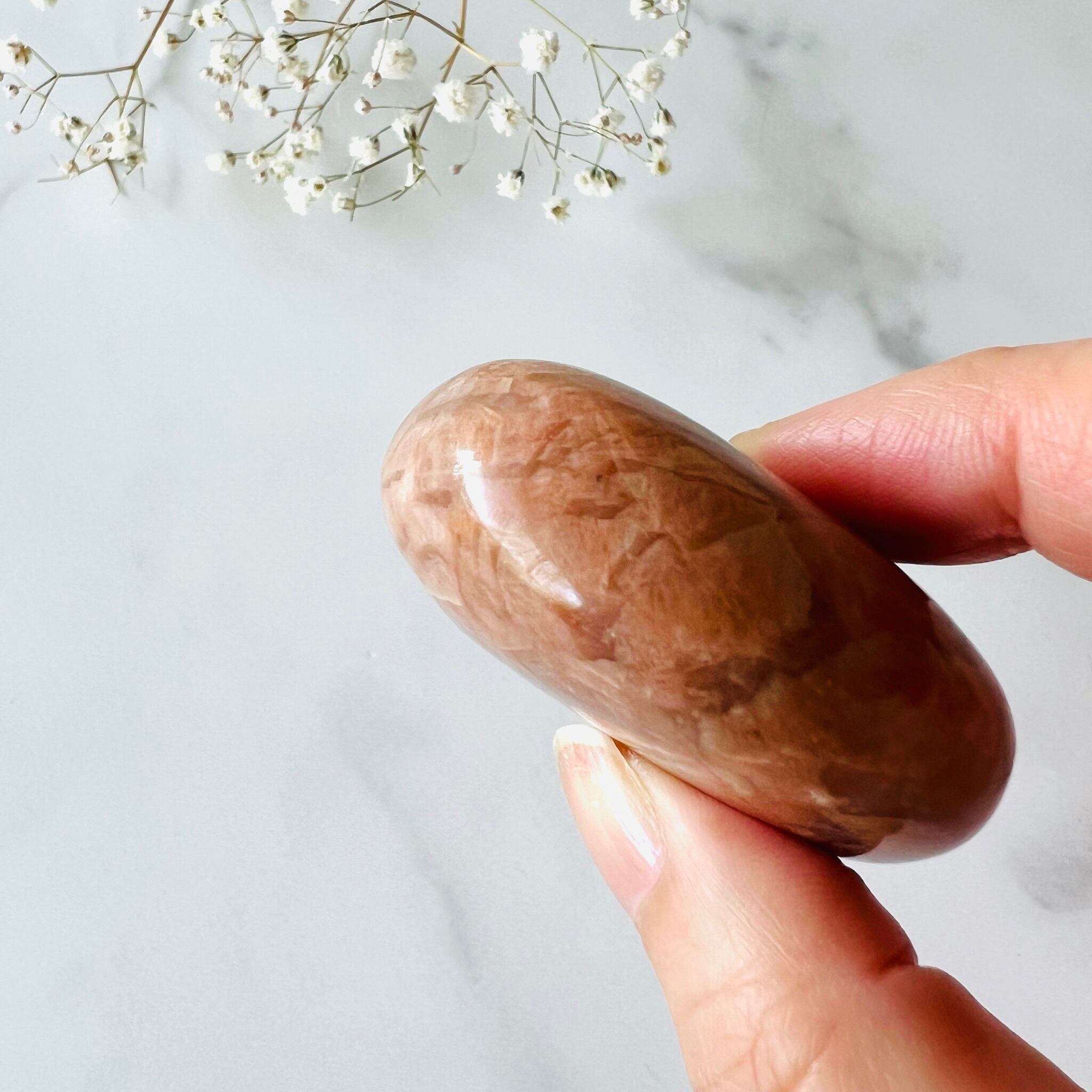 特に妊娠中や産後のお守りとして有名ですが、それに限らず、生理や更年期に伴う女性特有の辛さを感じたら、この石に意識を向けると良いと言われています。滑らかな石の感触は心地よく手のひらに馴染み、心と体の緊張が緩んで解けていくような安らぎと癒しを感じることができます。