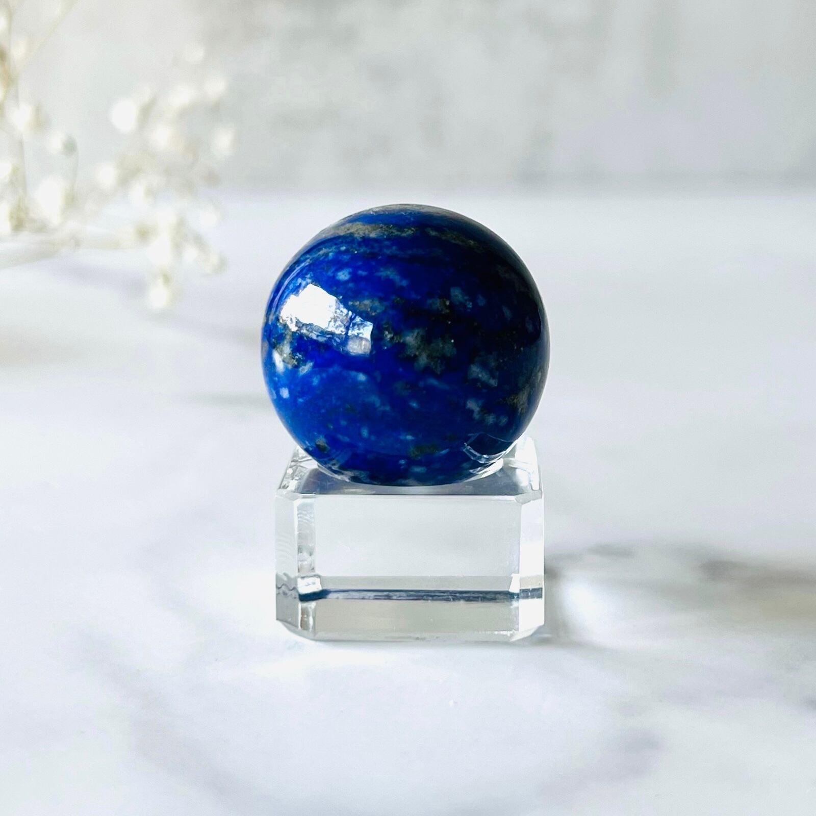 夜空や地球を思わせる深い群青色が綺麗なラピスラズリのスフィアです。