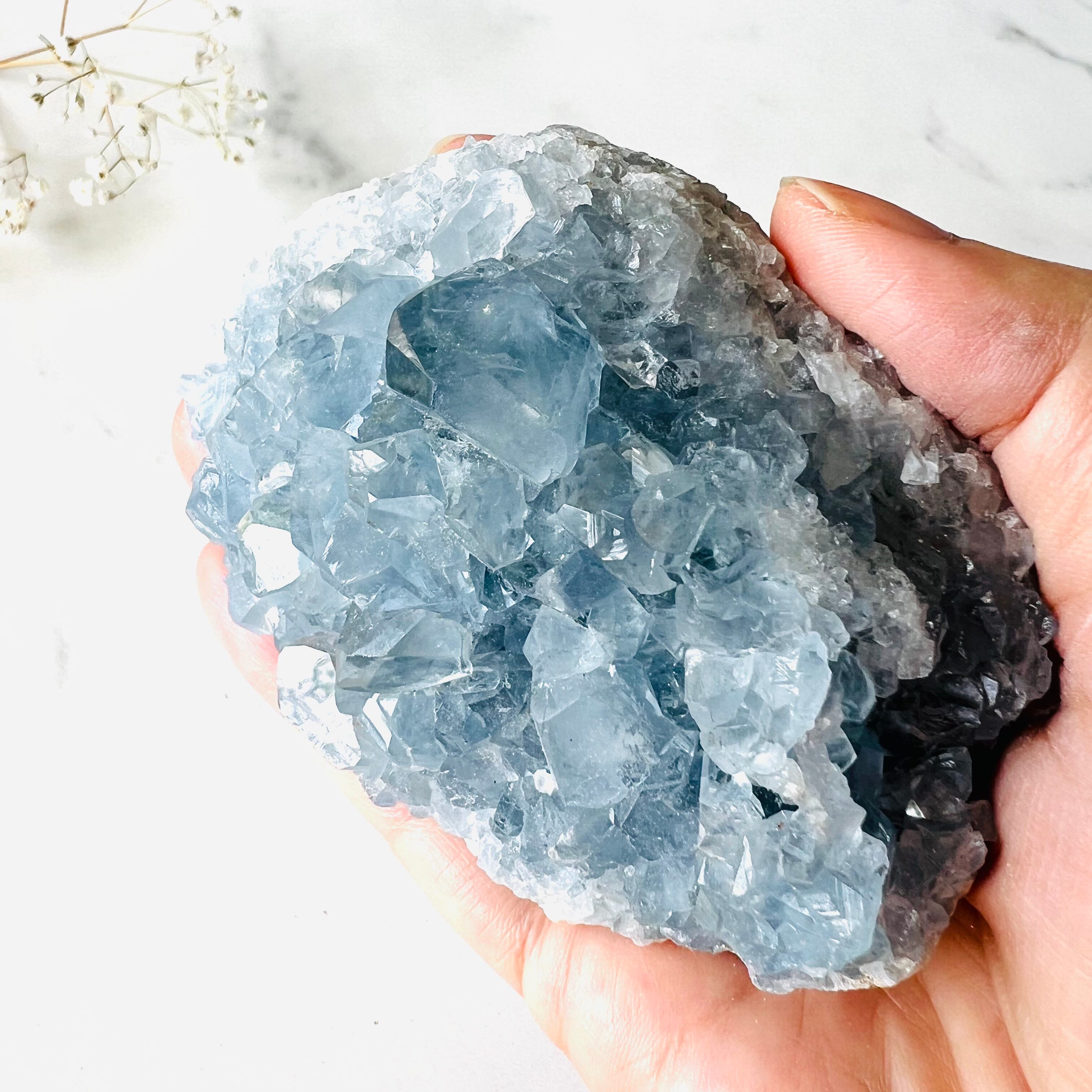 冷たく美しい氷の結晶をギュッと詰め込んだようなアイスブルーのセレスタイト。